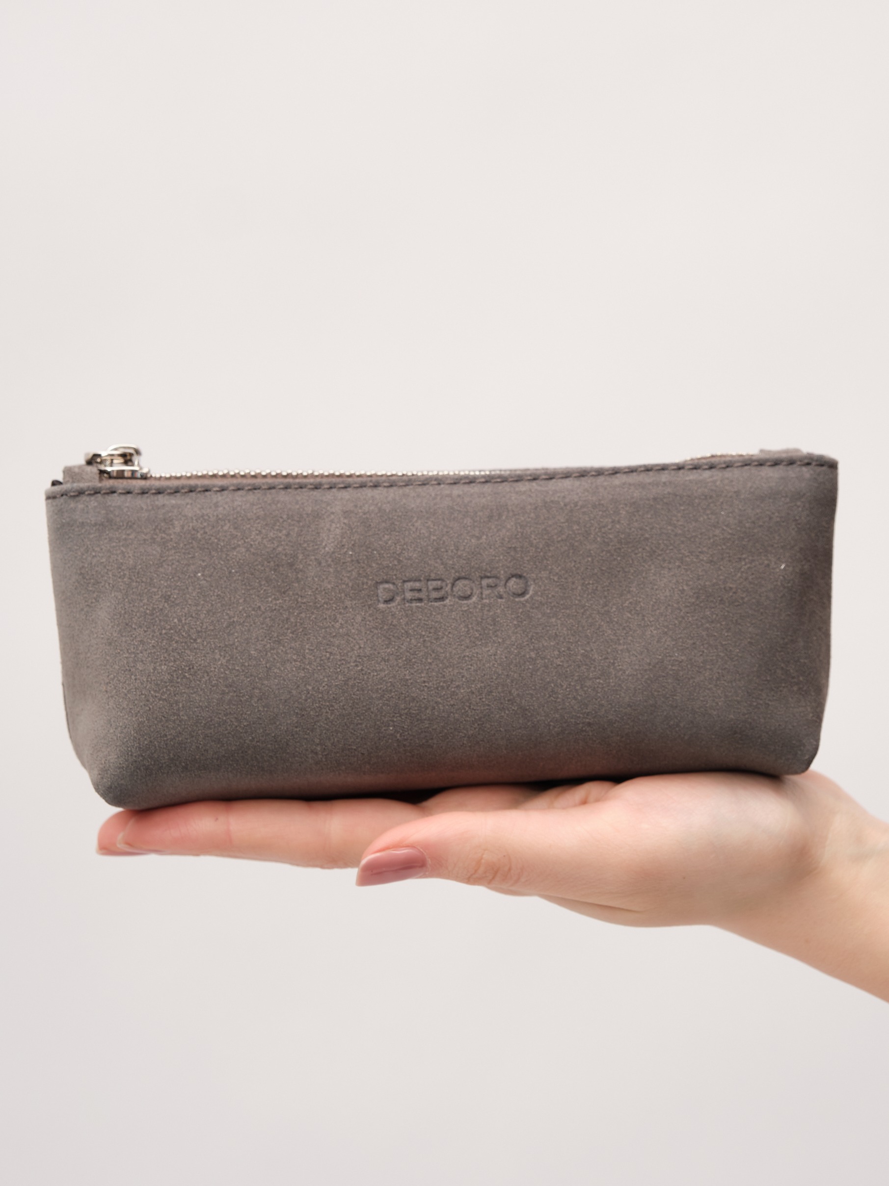 Стильная женская косметичка Deboro 17-96 серый замок из натуральной замши.