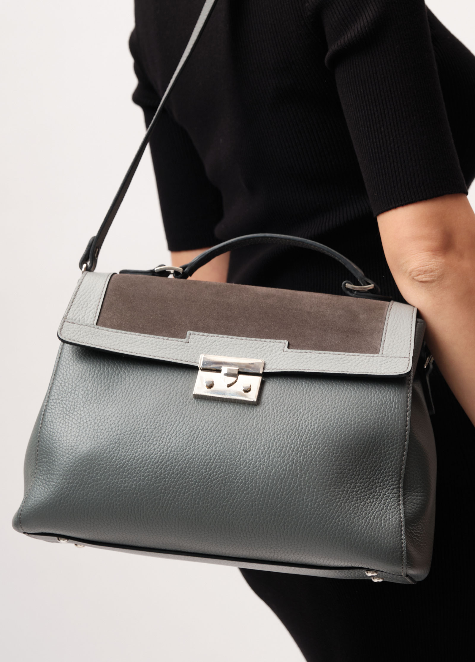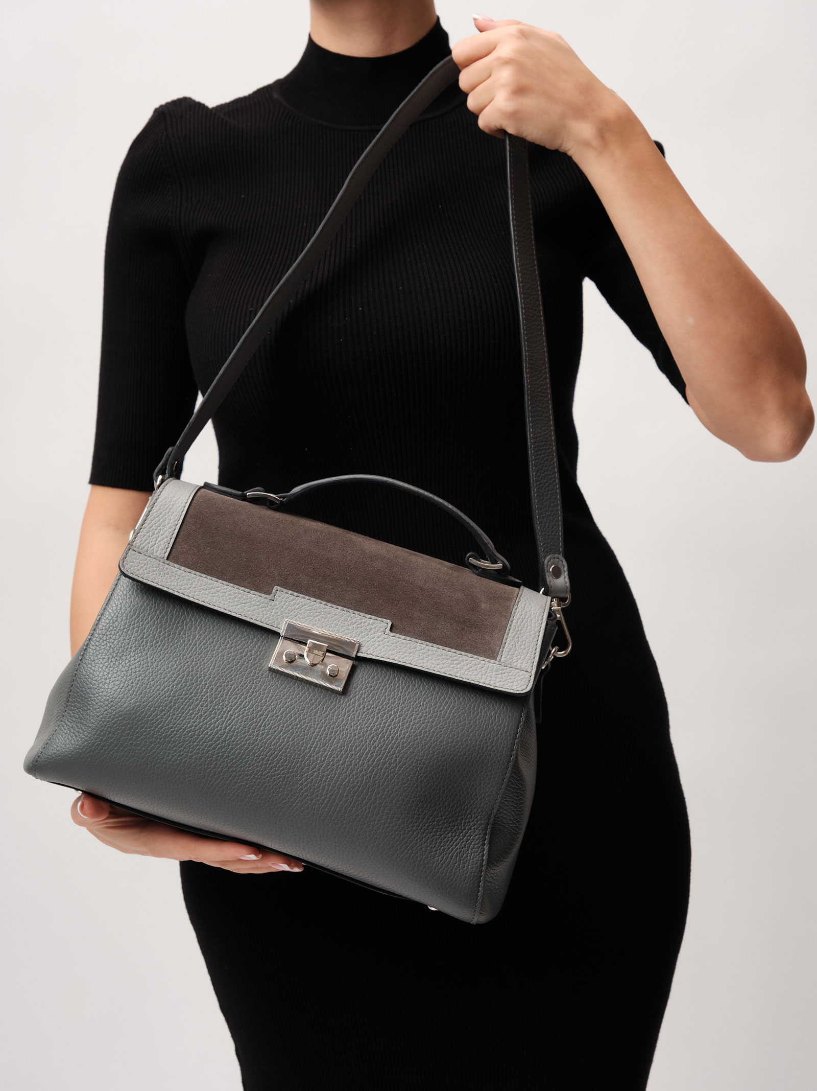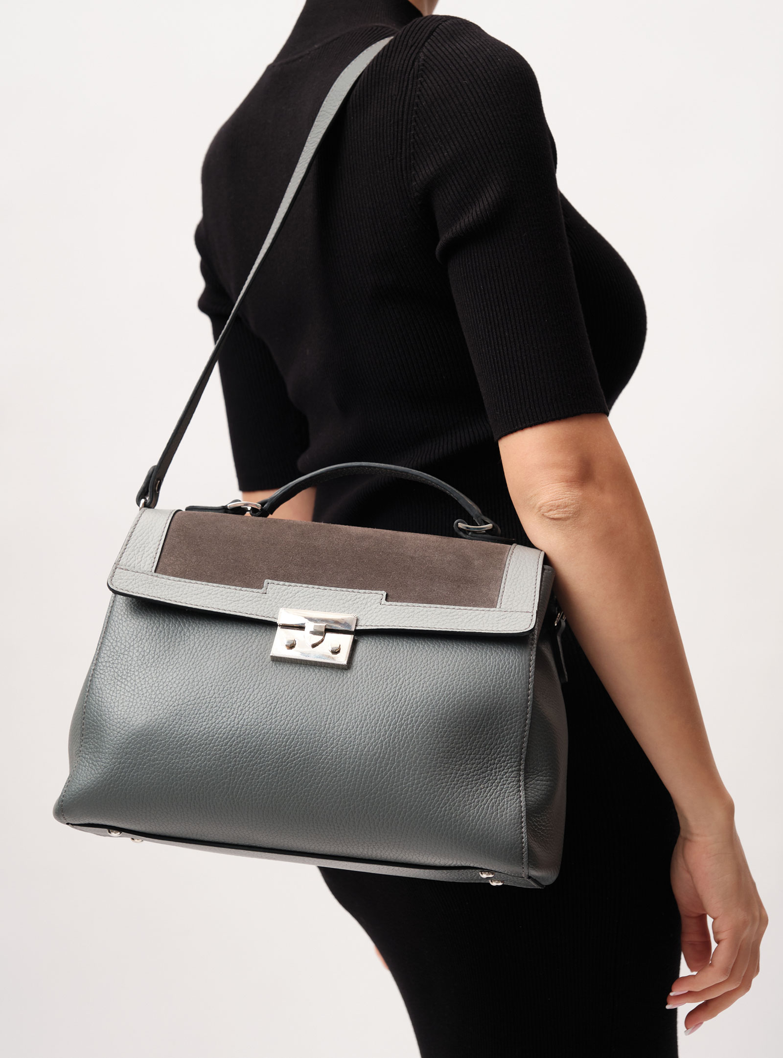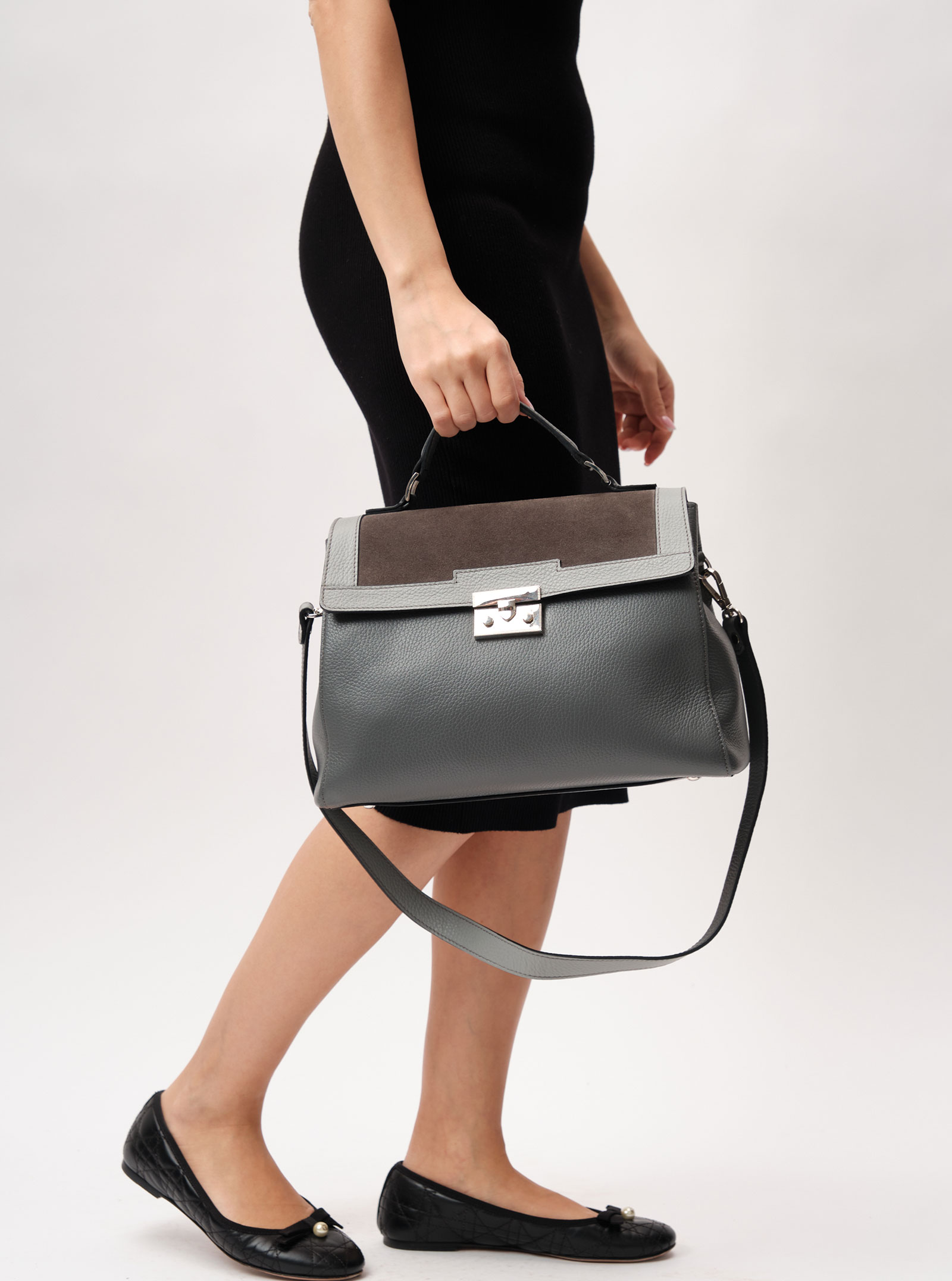 Женская кожаная сумка Deboro 30139 хром из натуральной кожи и замши.