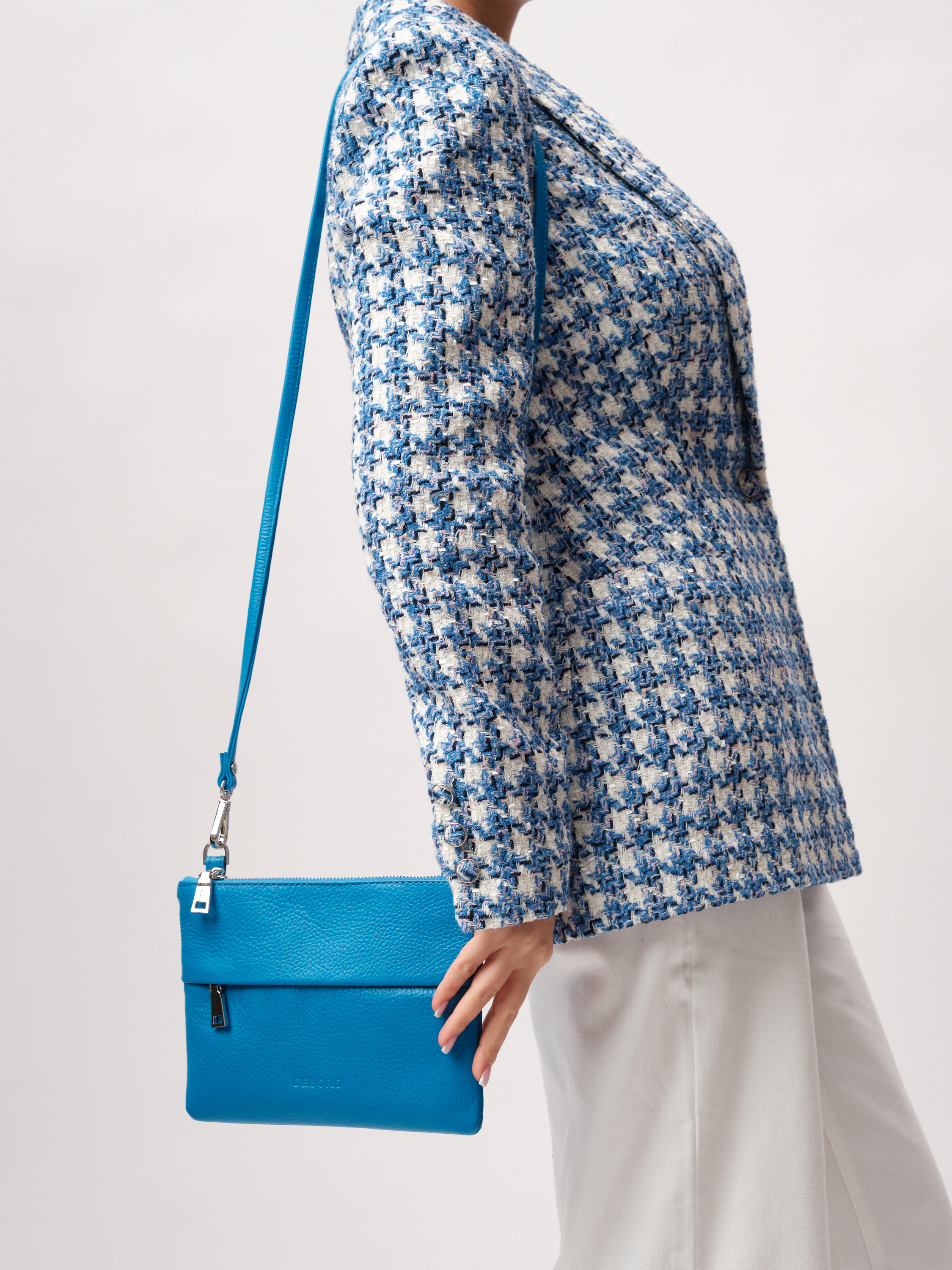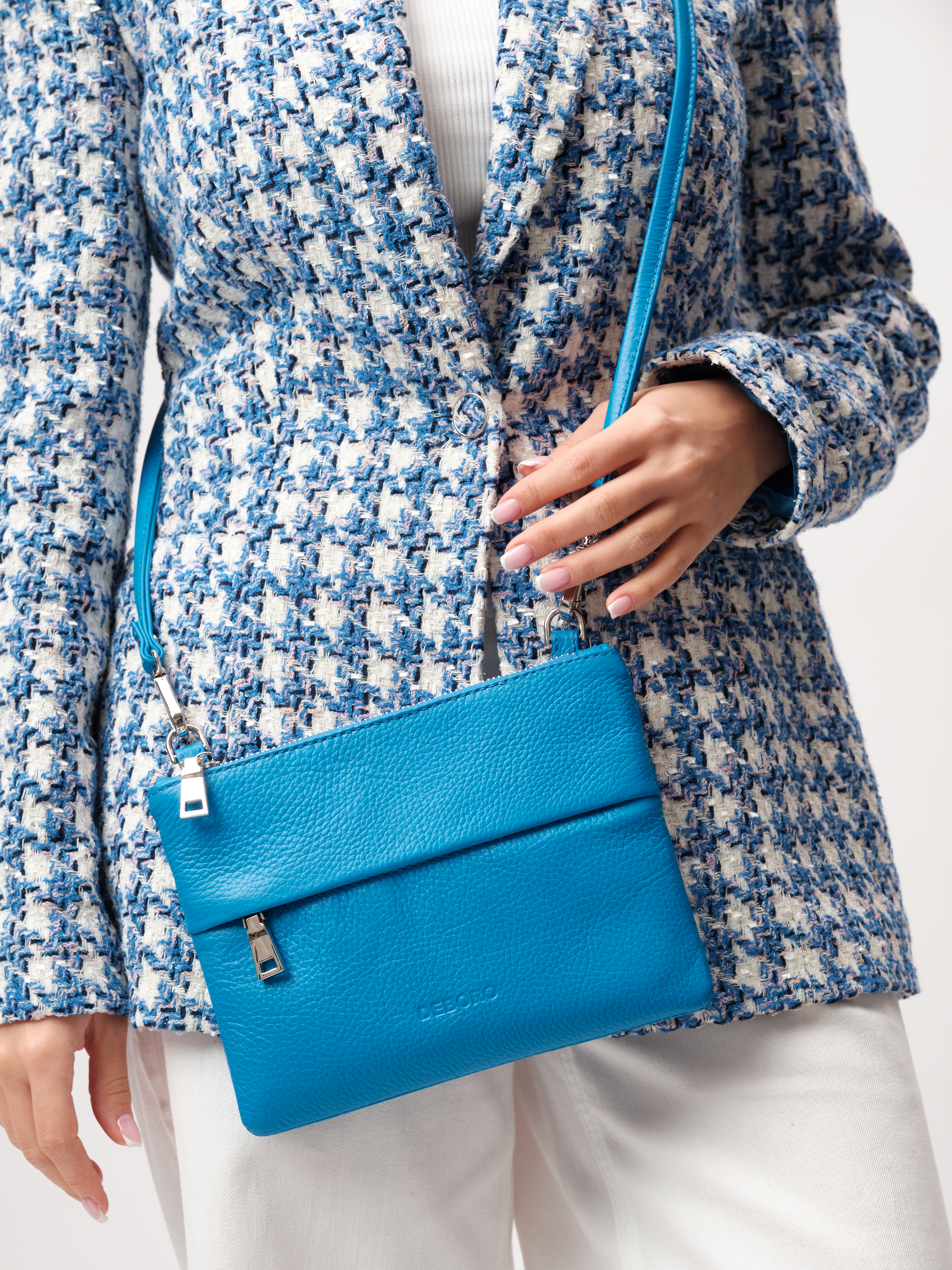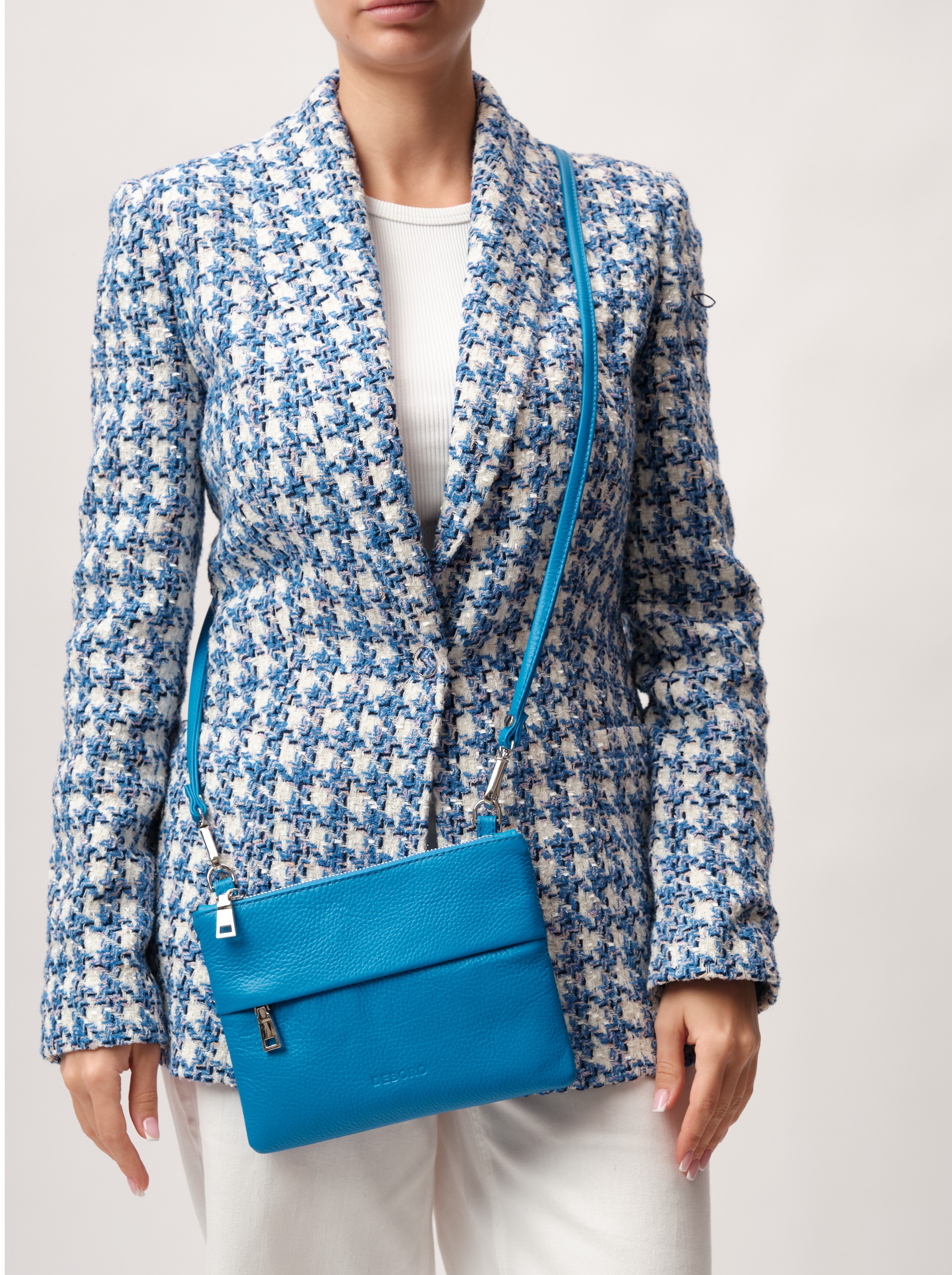 Кожаная сумка кросс-боди Deboro 3017 голубая река станет не только практичным аксессуаром, но и стильным дополнением к вашему гардеробу.