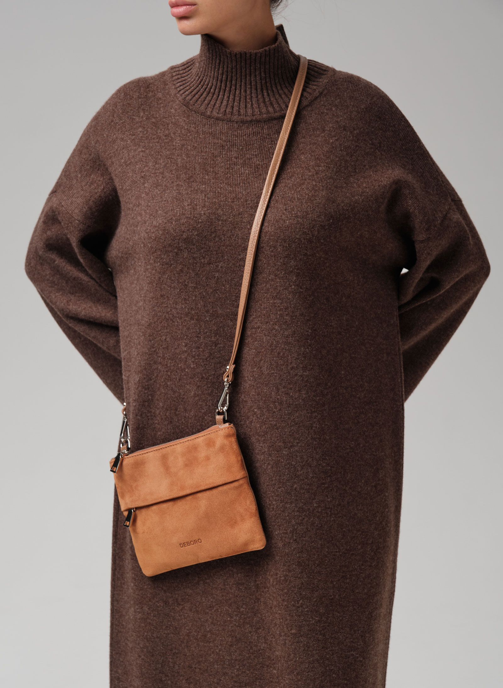 Женская замшевая сумка Deboro 3017 вуд велюр из натуральной замши теплого карамельно-коричневого оттенка.