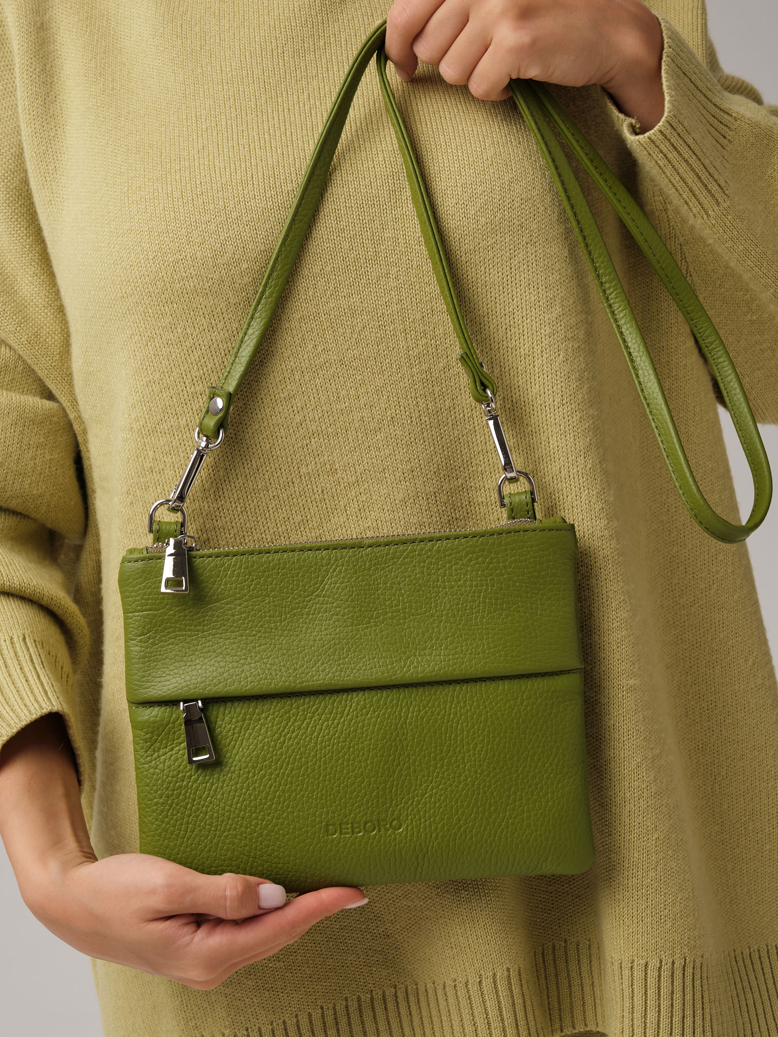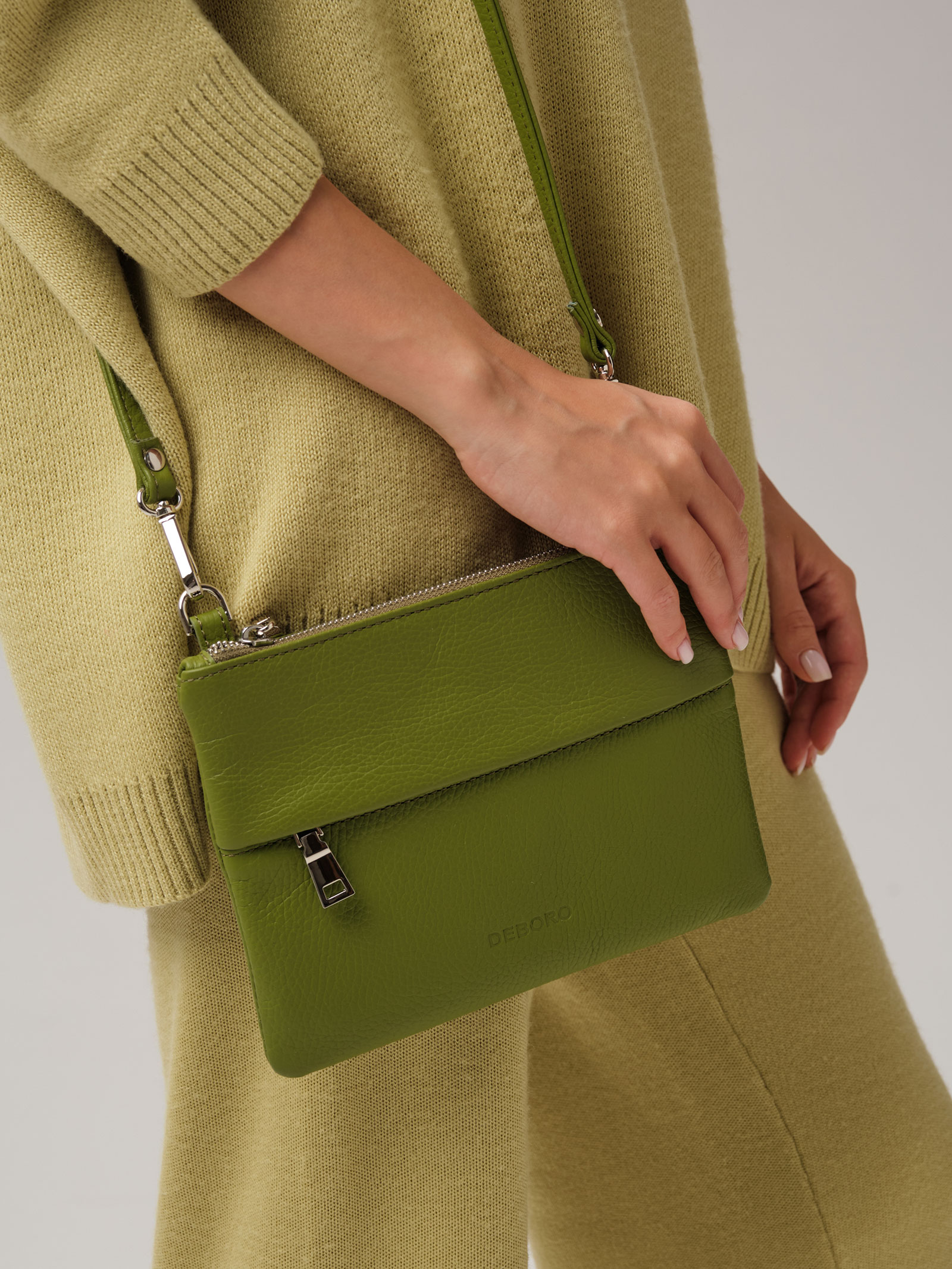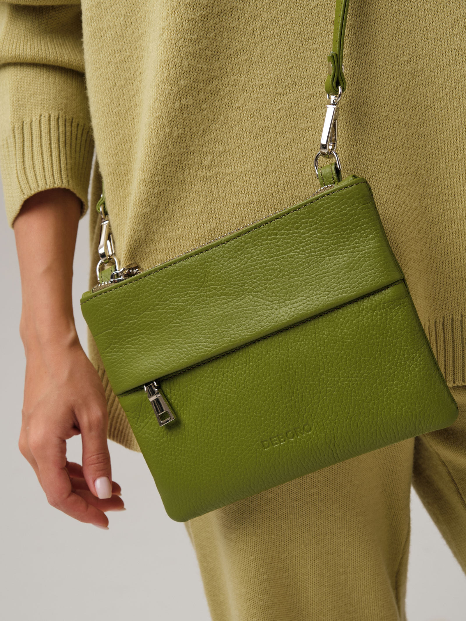 Женская кожаная сумка Deboro 3017 зеленый бамбук из натуральной кожи приглушенного зеленого оттенка.