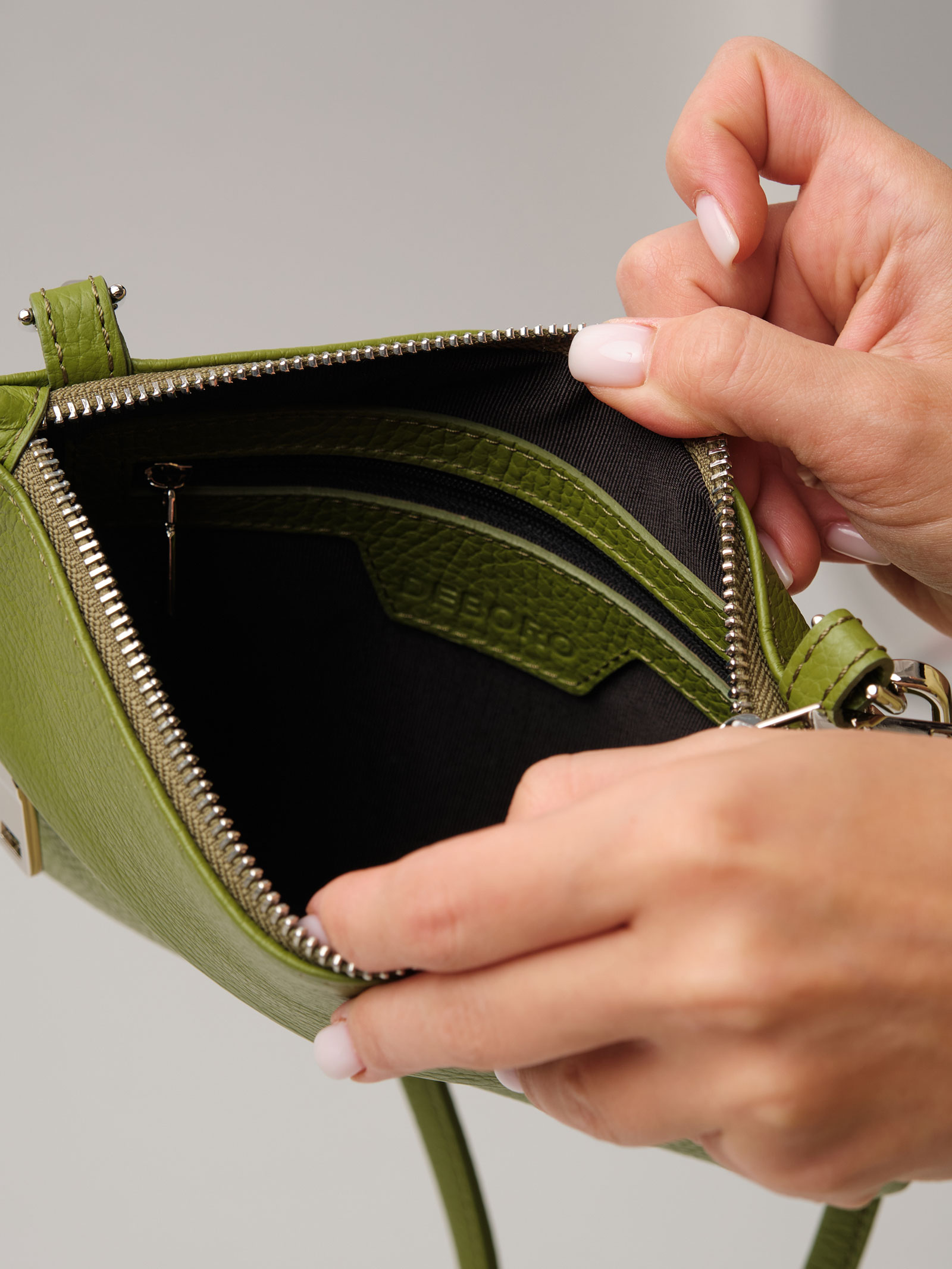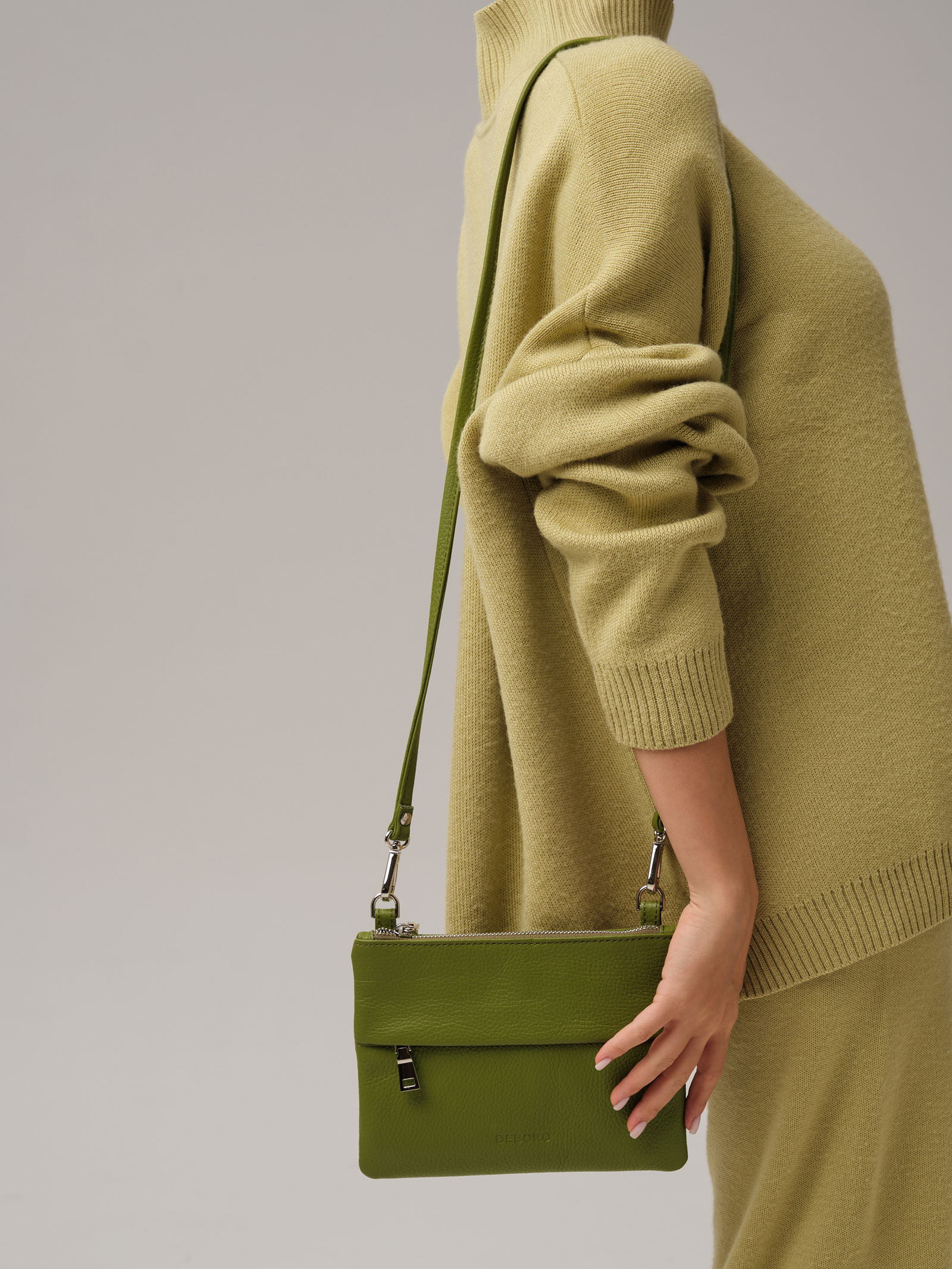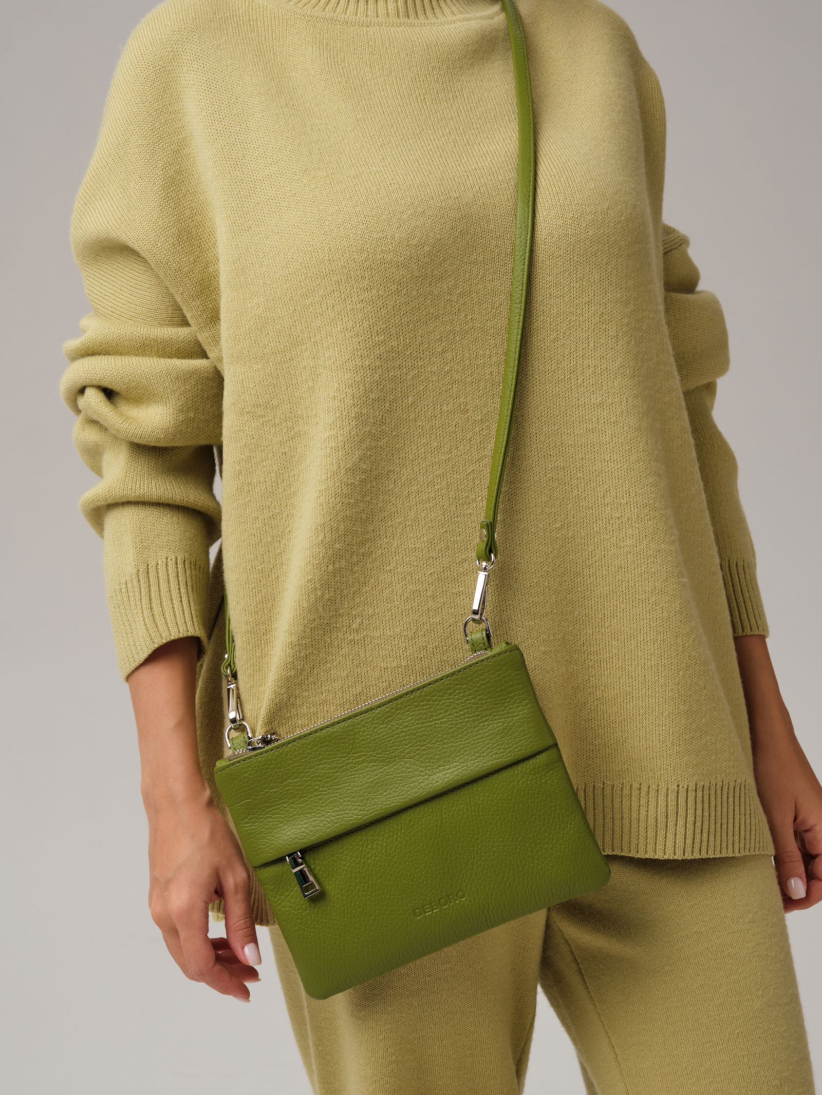 Женская кожаная сумка Deboro 3017 зеленый бамбук из натуральной кожи приглушенного зеленого оттенка.