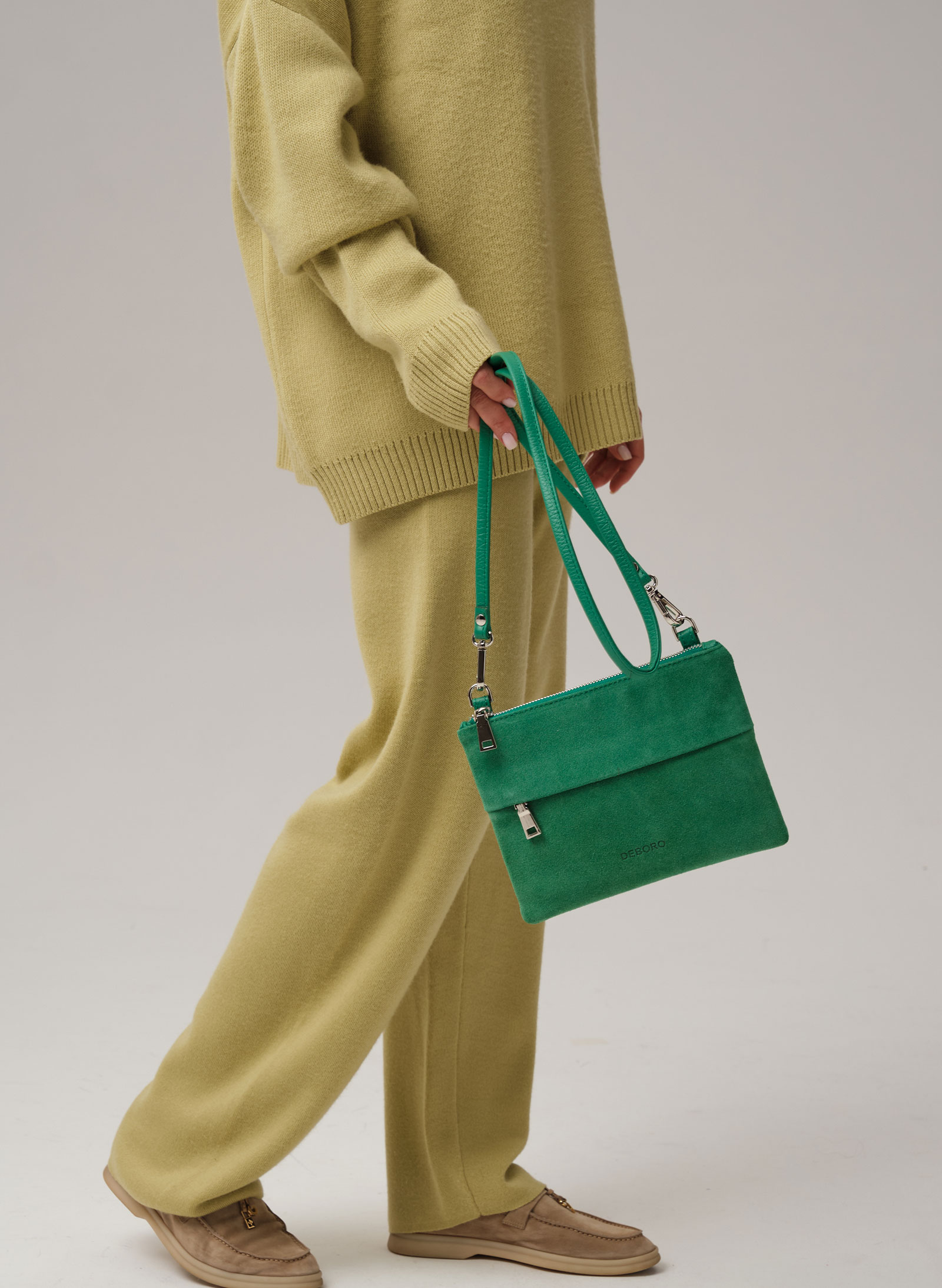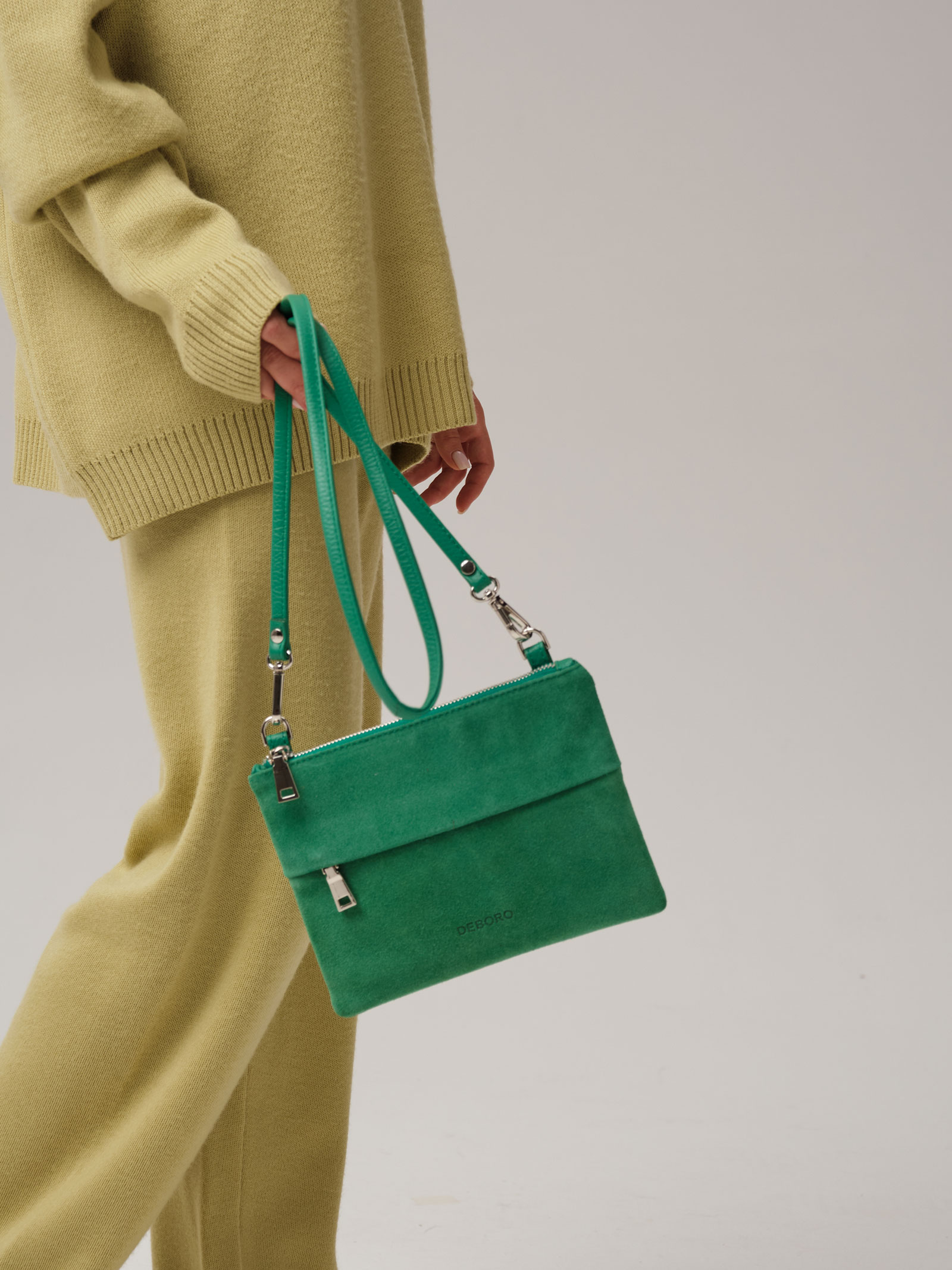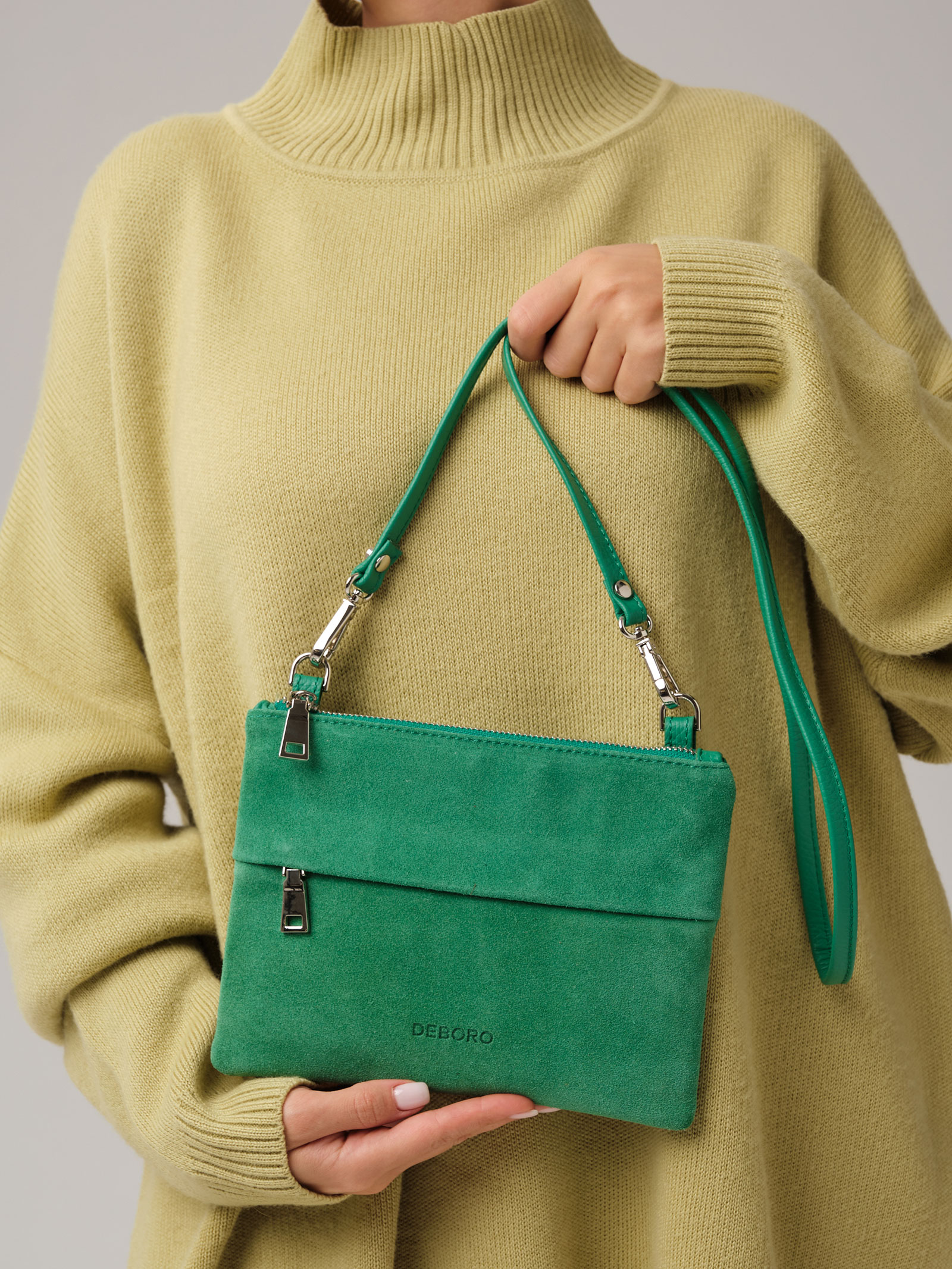 Женская сумка Deboro 3017 зеленый изумруд велюр из натуральной замши и кожи яркого зеленого оттенка.