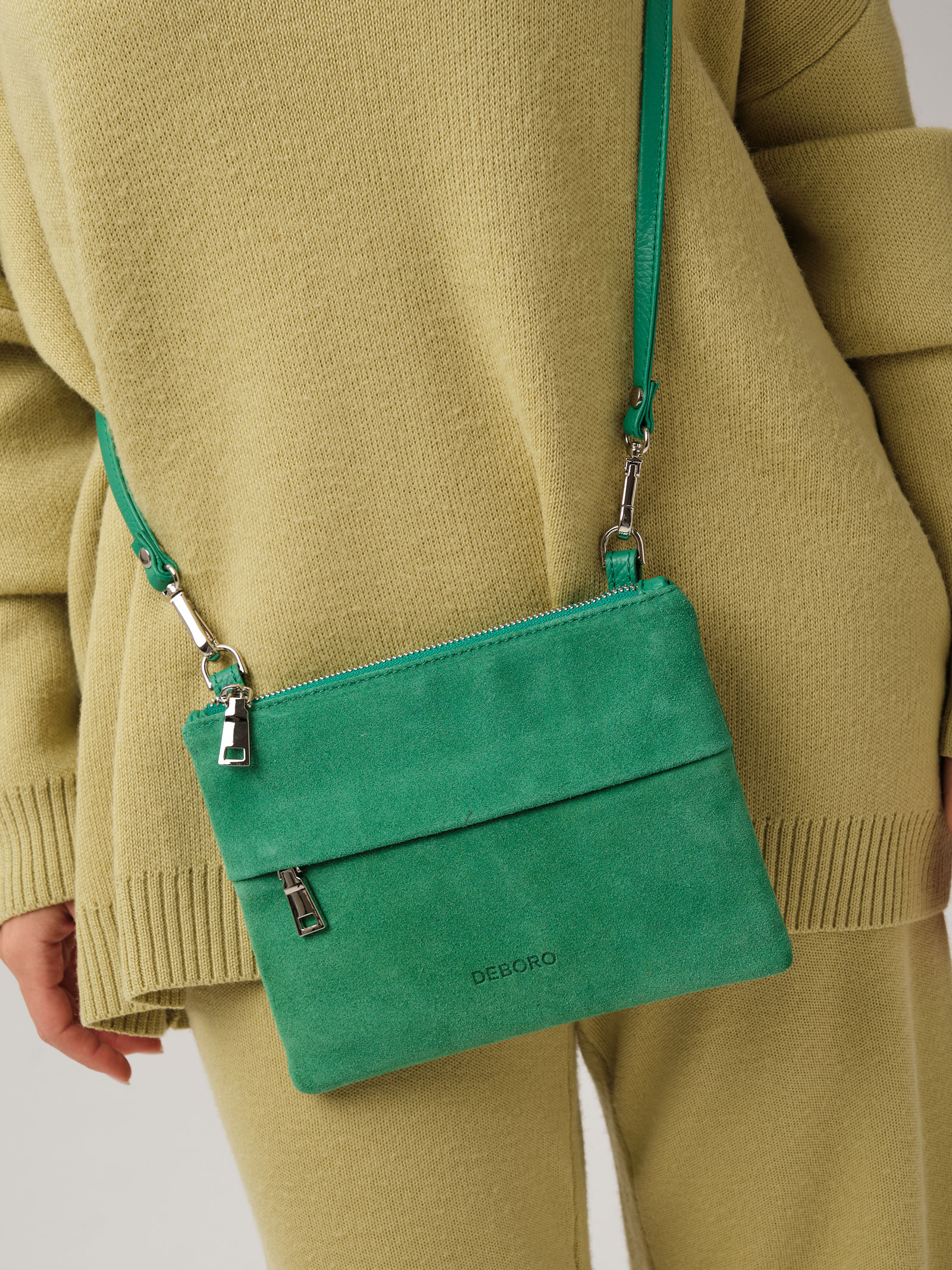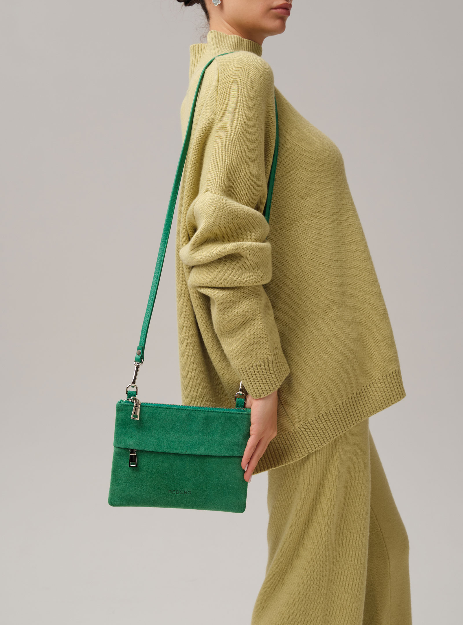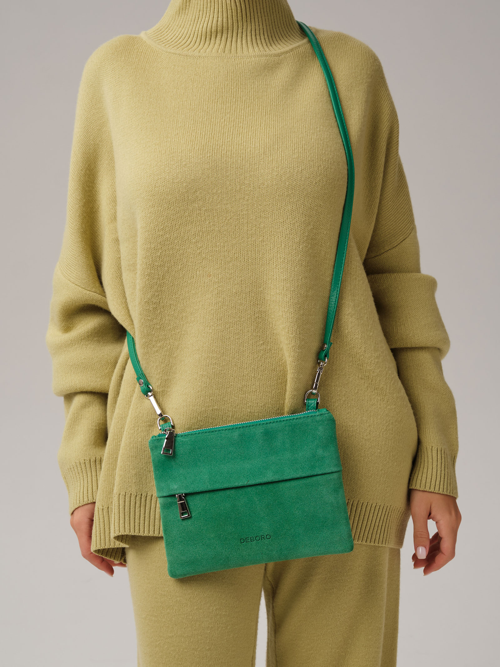 Женская сумка Deboro 3017 зеленый изумруд велюр из натуральной замши и кожи яркого зеленого оттенка.