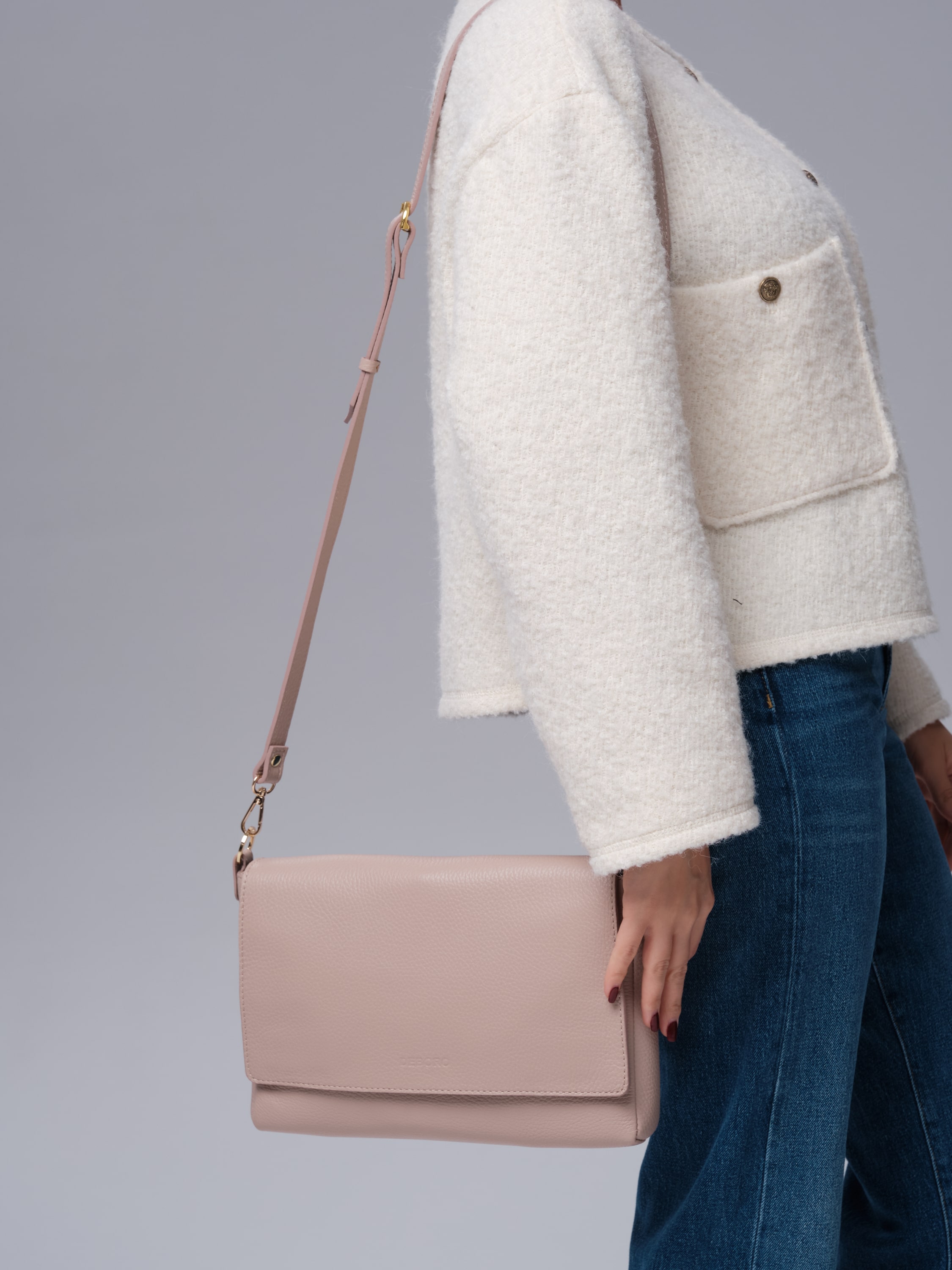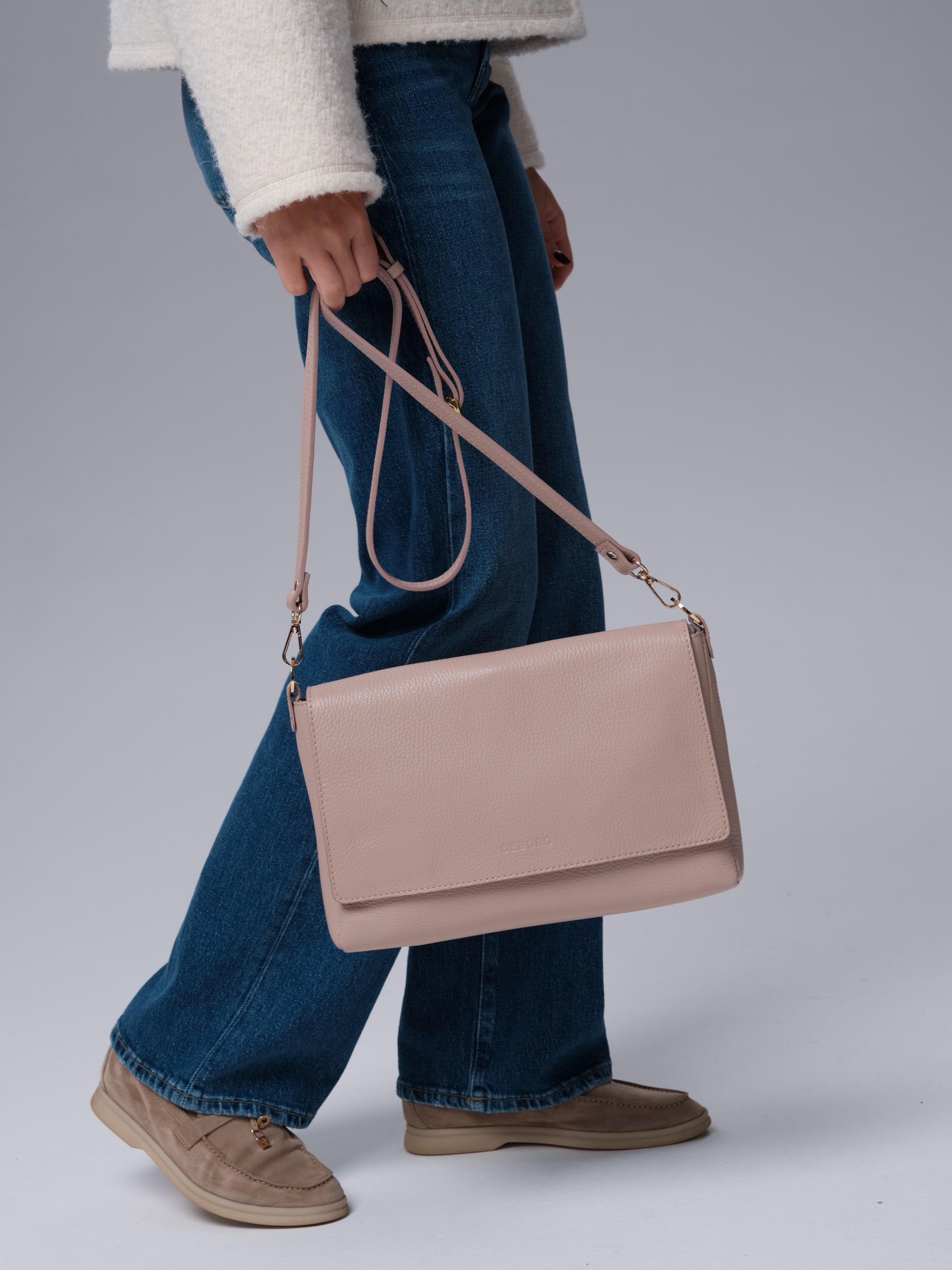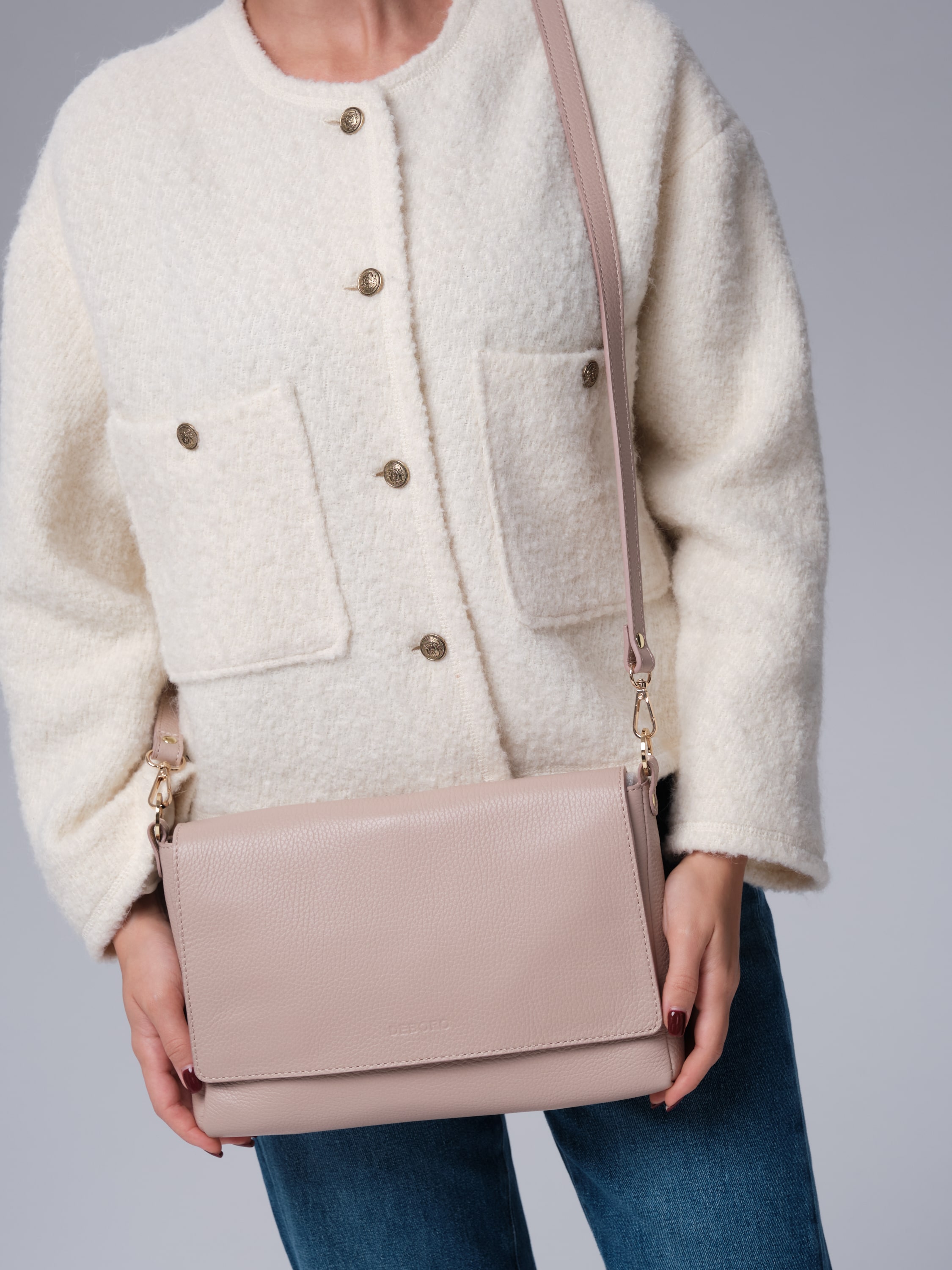 Женская сумка Deboro 30181 розово-бежевый/суприм - это идеальный аксессуар для тех, кто ценит элегантность и удобство. Универсальность и функциональность делают эту женскую сумку незаменимой в гардеробе. Продуманный дизайн позволяет использовать ее как клатч без плечевого ремня или со съемным регулируемым ремнем как кросс-боди, освобождая руки для важных дел.