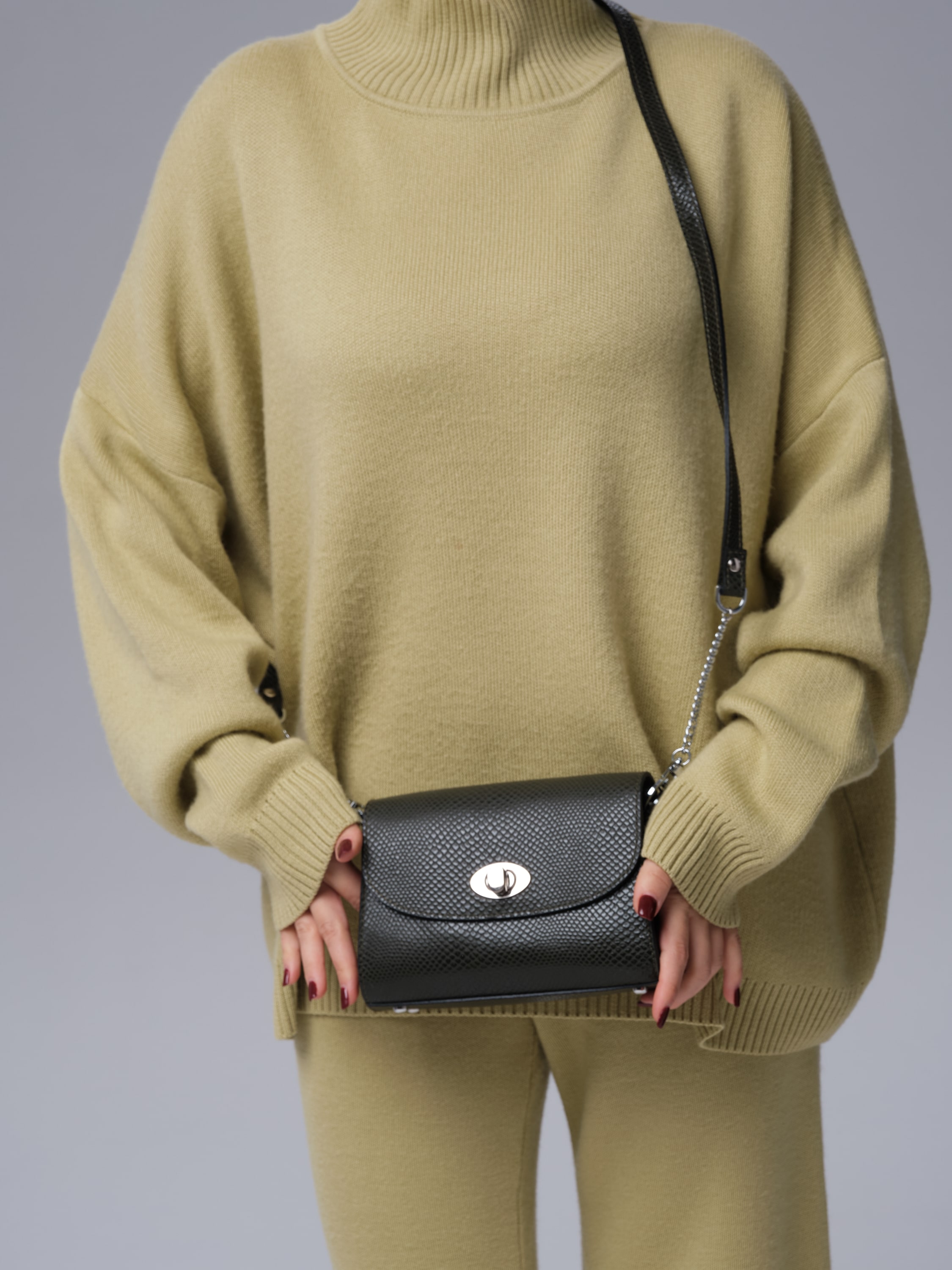 Длинный нерегулируемый съемный ремень позволяет носить сумку как кросс-боди, освобождая руки. Без плечевого ремня сумку можно носить в руках как клатч.
