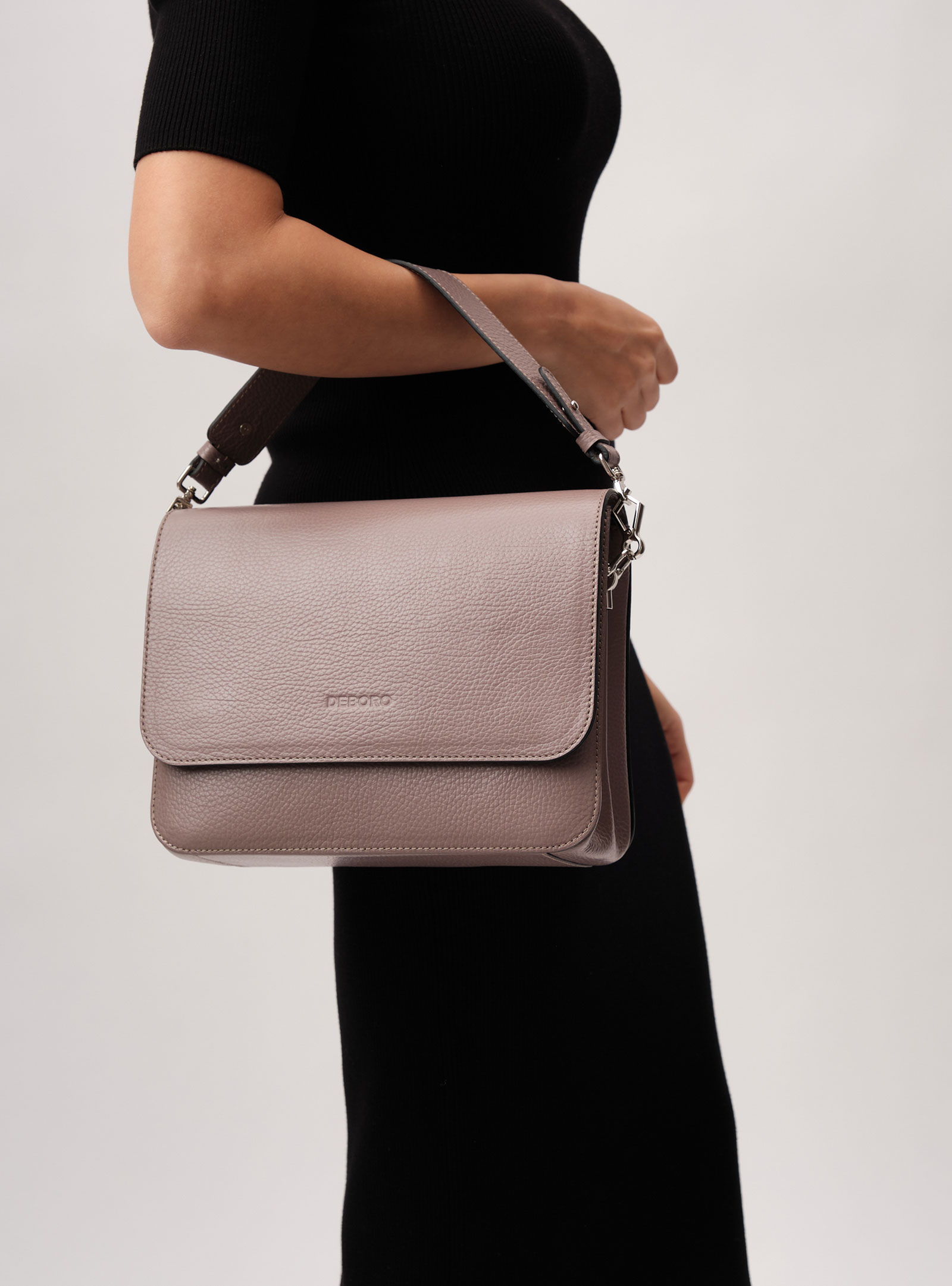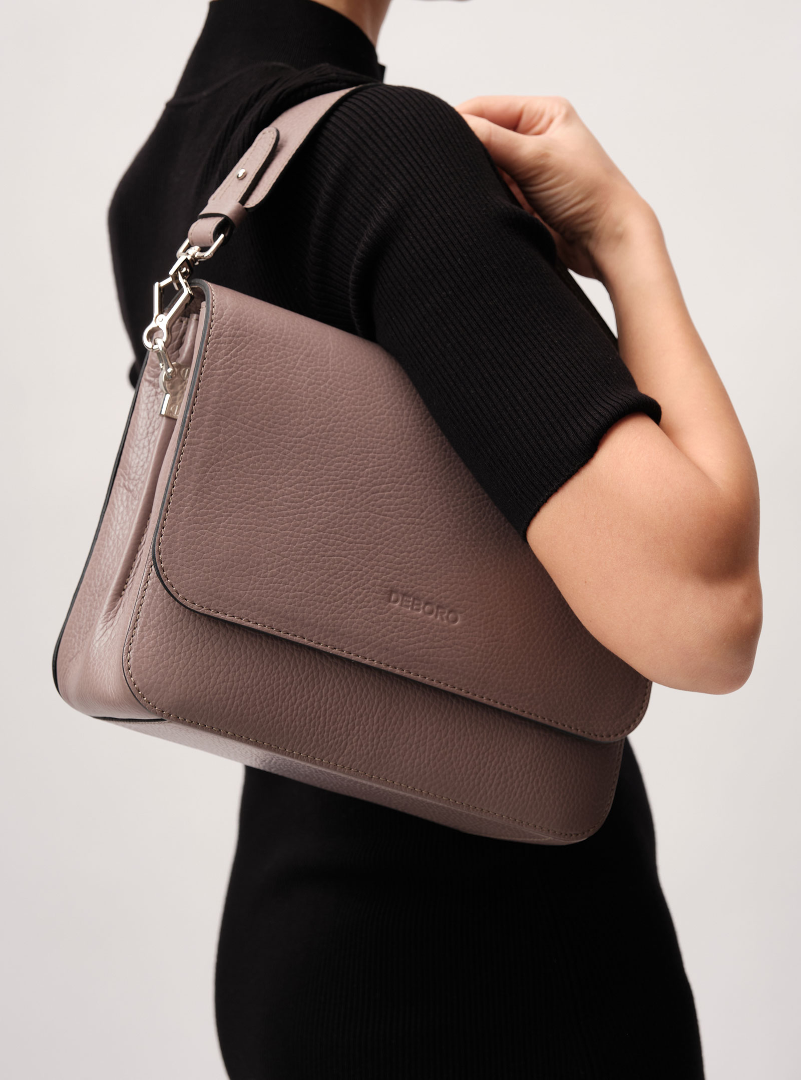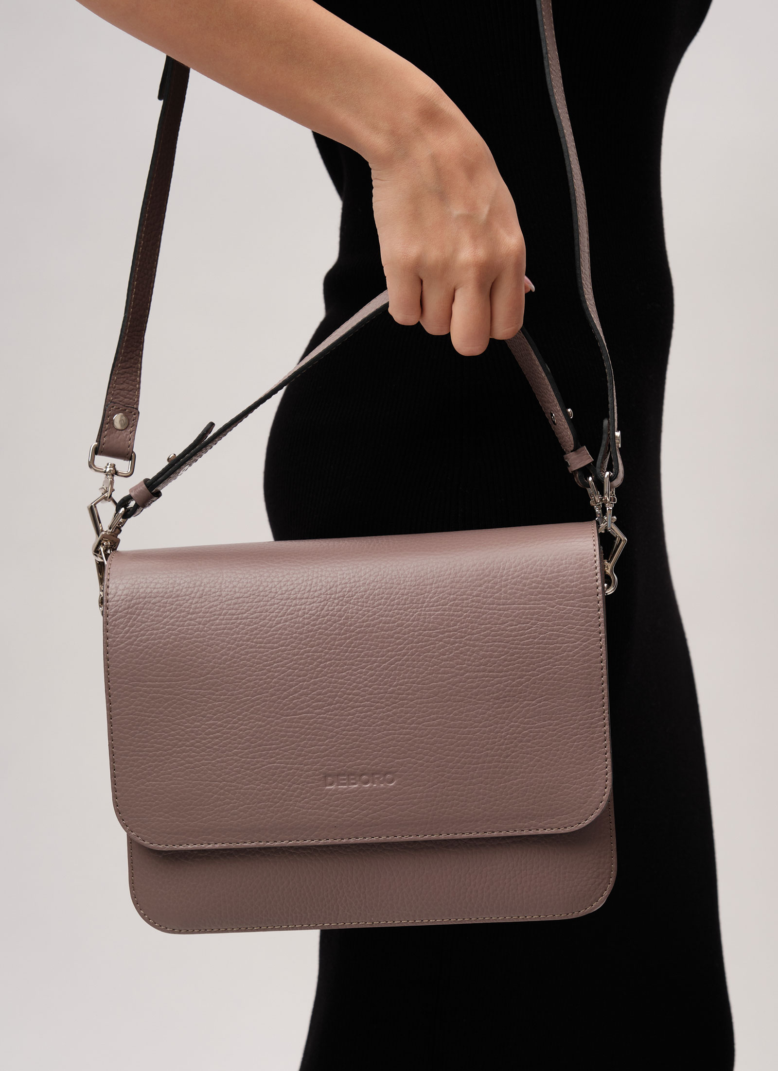 Женская кожаная сумка Deboro 30494 розово-серый из натуральной кожи.