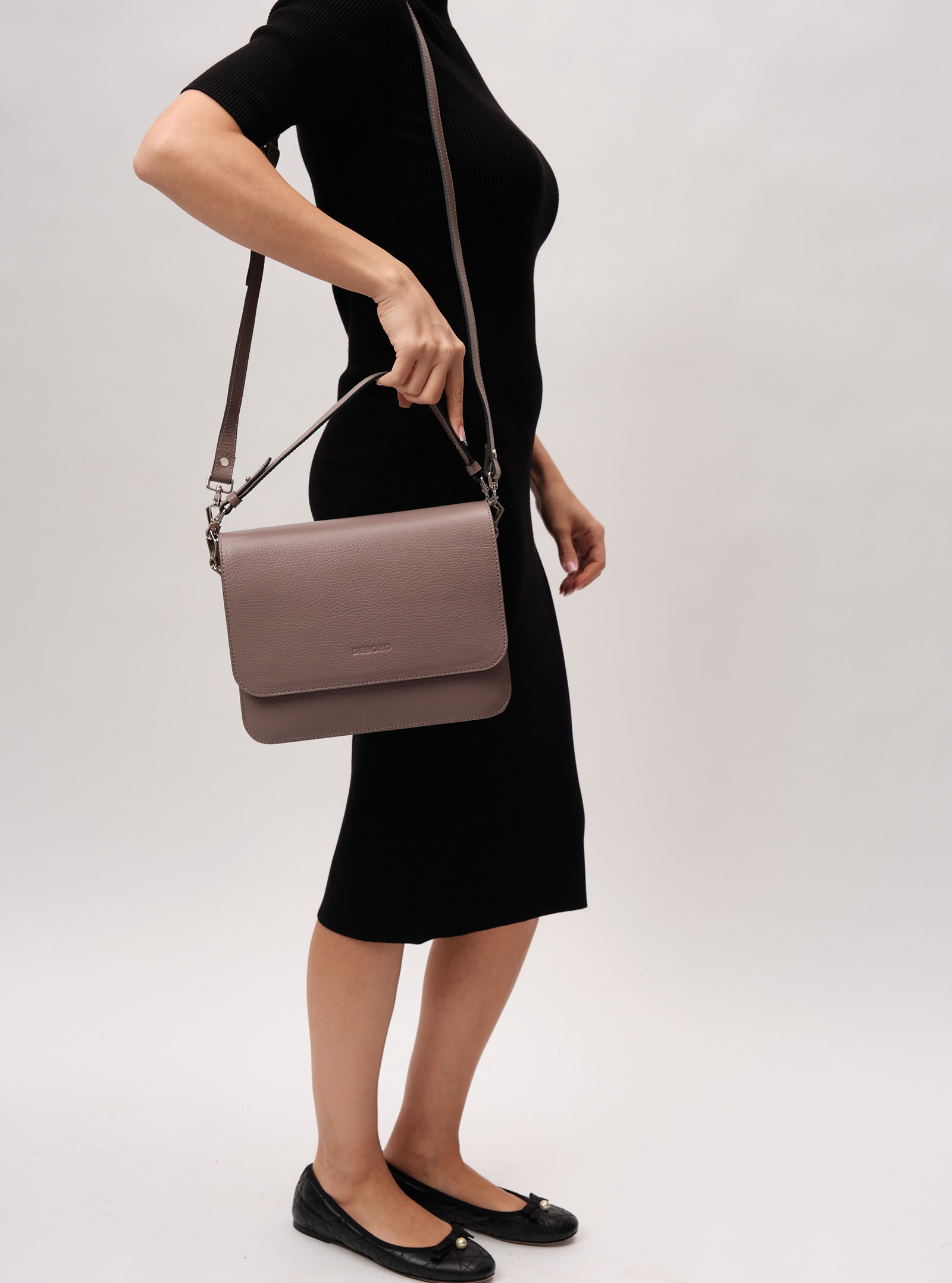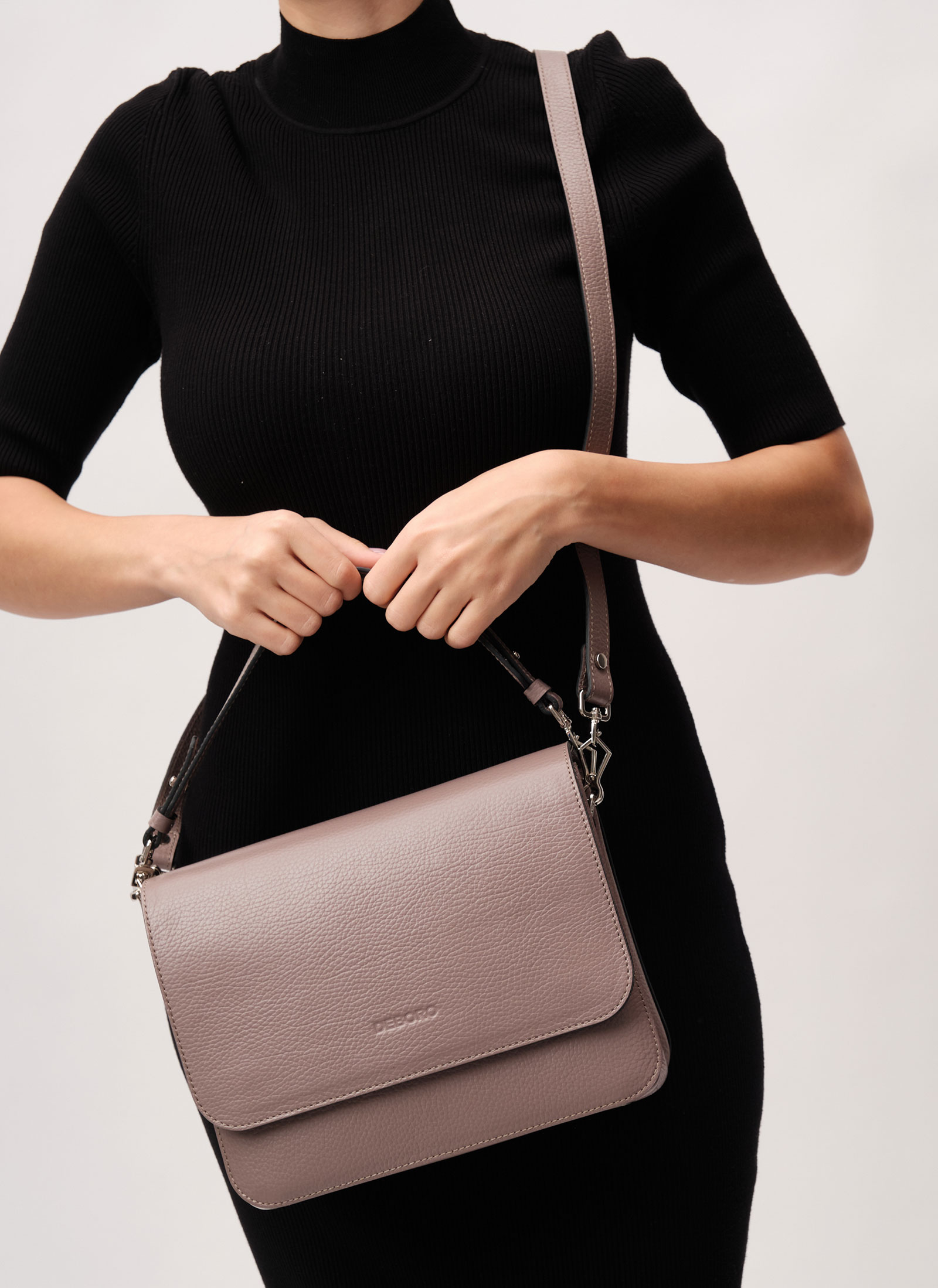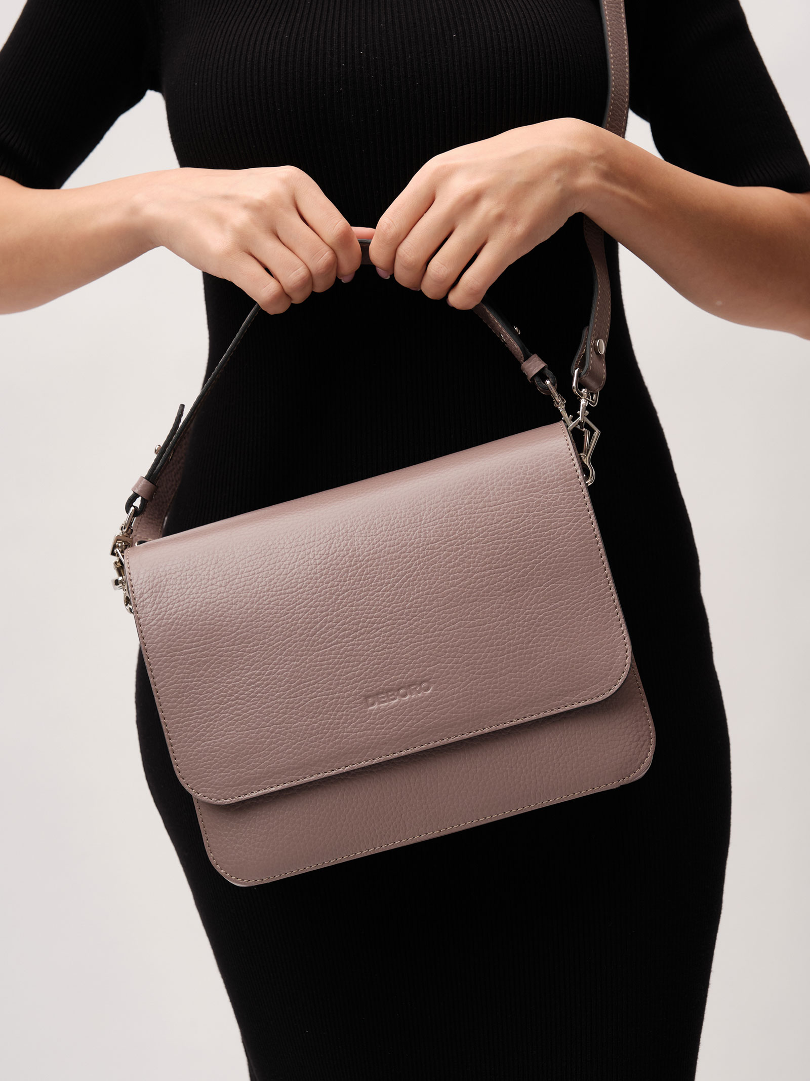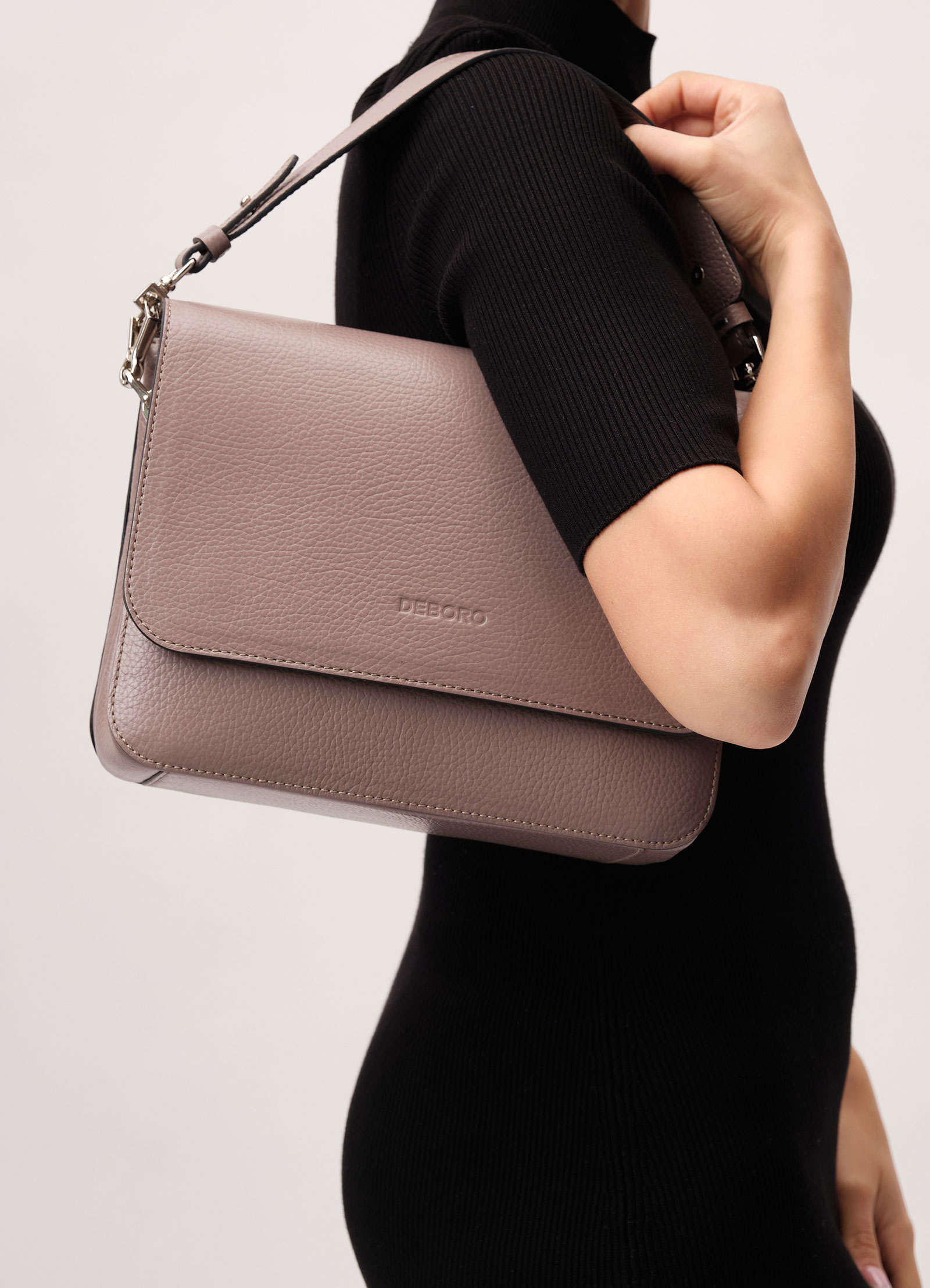 Женская кожаная сумка Deboro 30494 розово-серый из натуральной кожи.