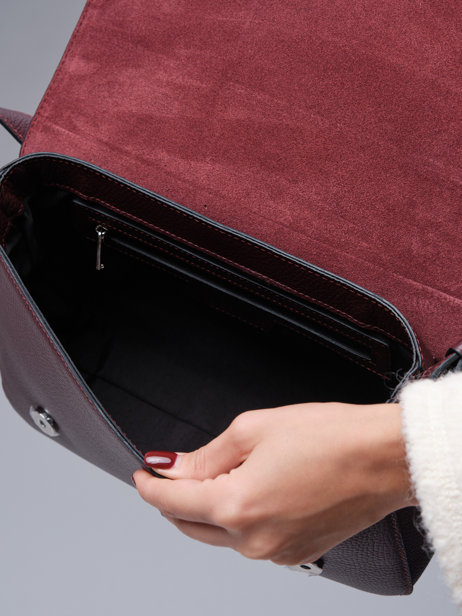 Водонепроницаемая подкладка сбережет изделие от повреждений. На внутренней стенке клапана отделка из натуральной замши, которая прекрасно оттеняет общий стиль и придает особый шарм. Клапан на магнитах обеспечивает быстрый доступ к нужным вещам. Внутренний карман на молнии позволит разместить ценные вещи.
