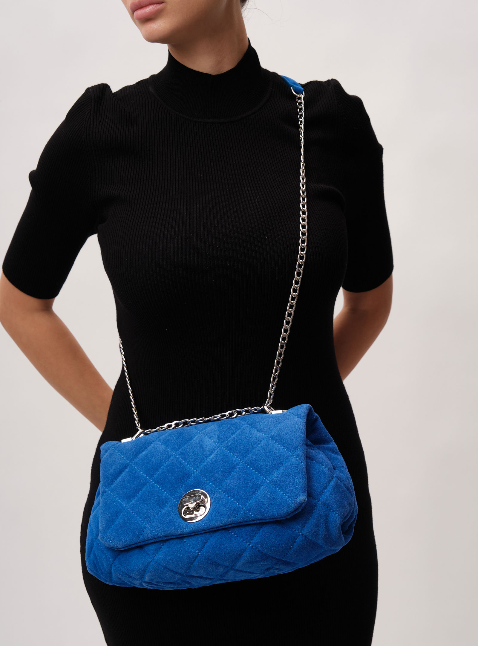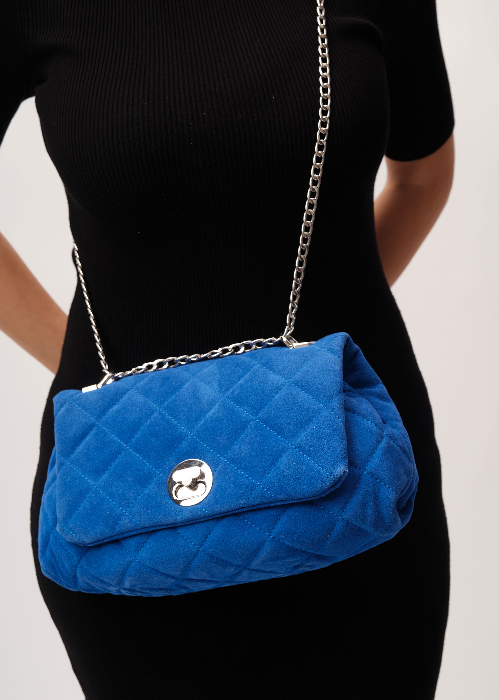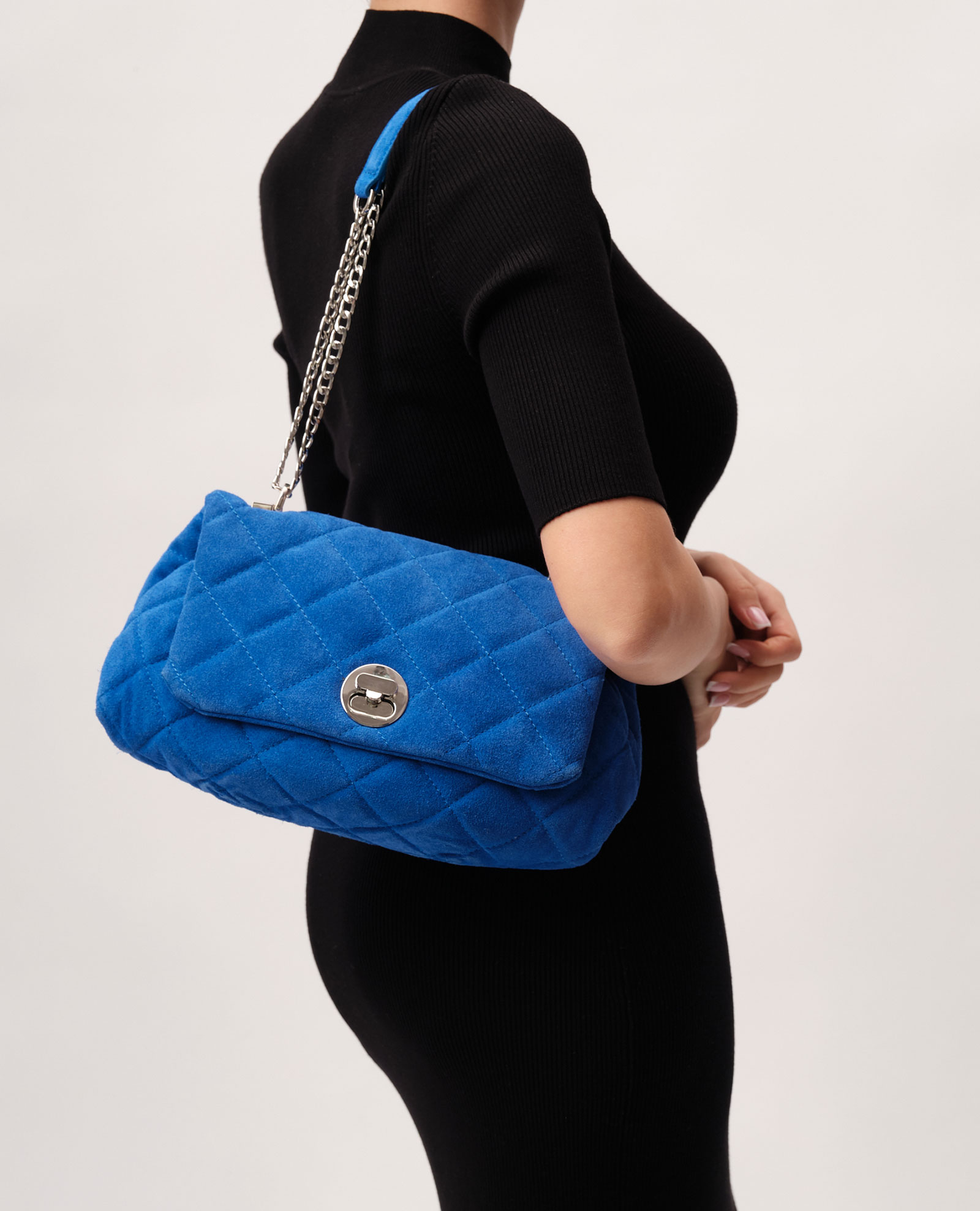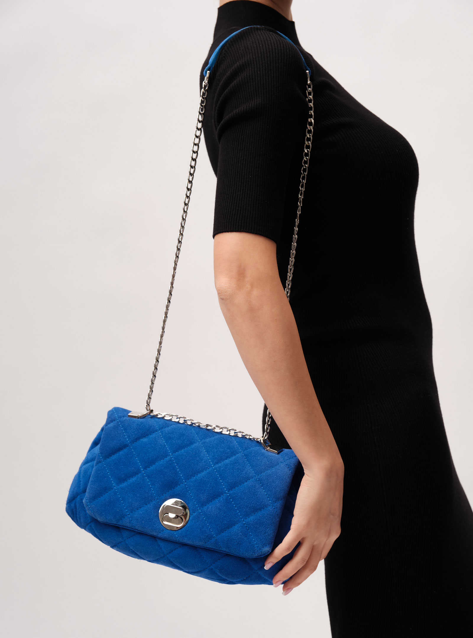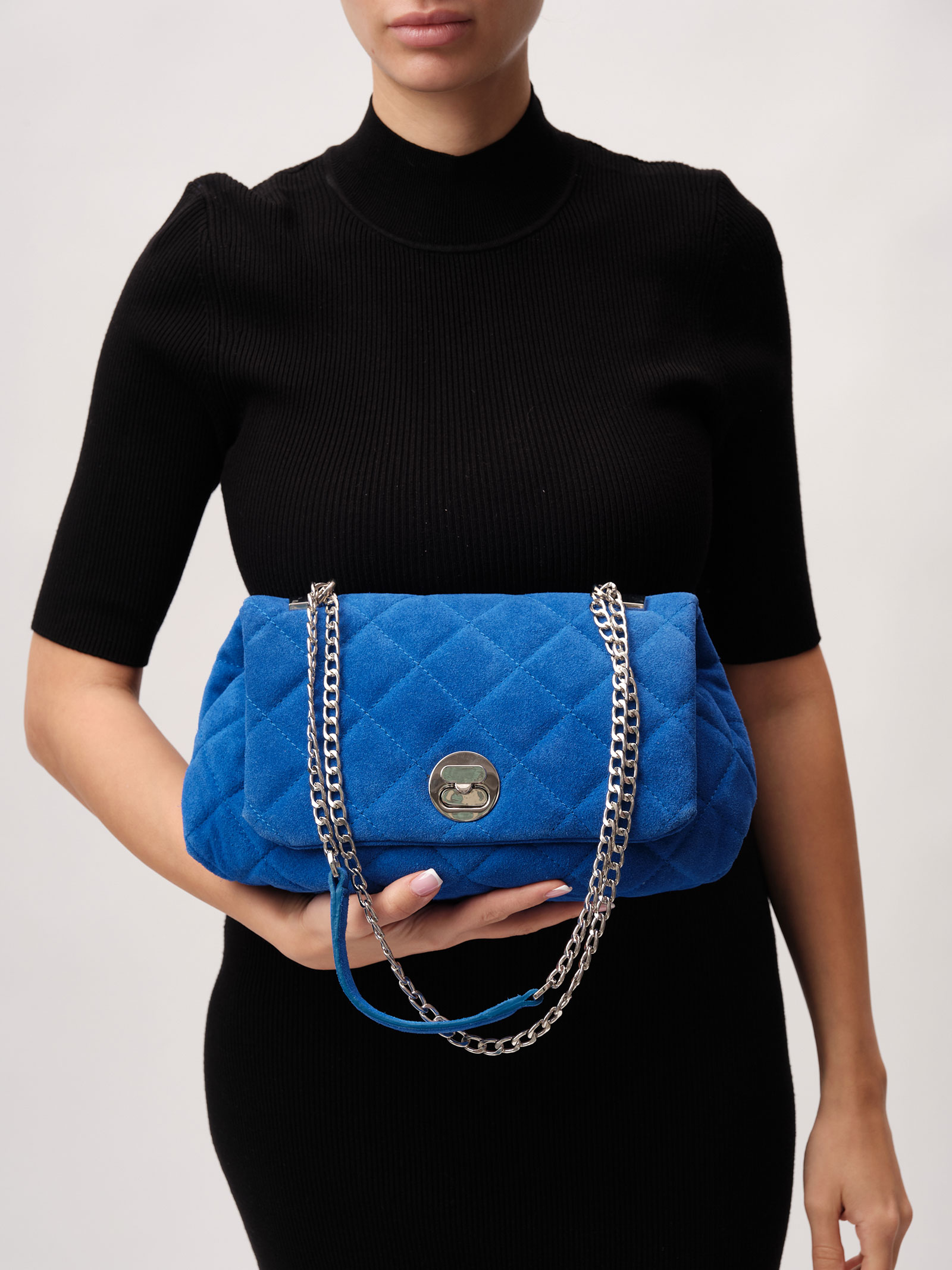 Женская замшевая сумка с ремешком-цепочкой Deboro 30560 синий сапфир из натуральной замши.