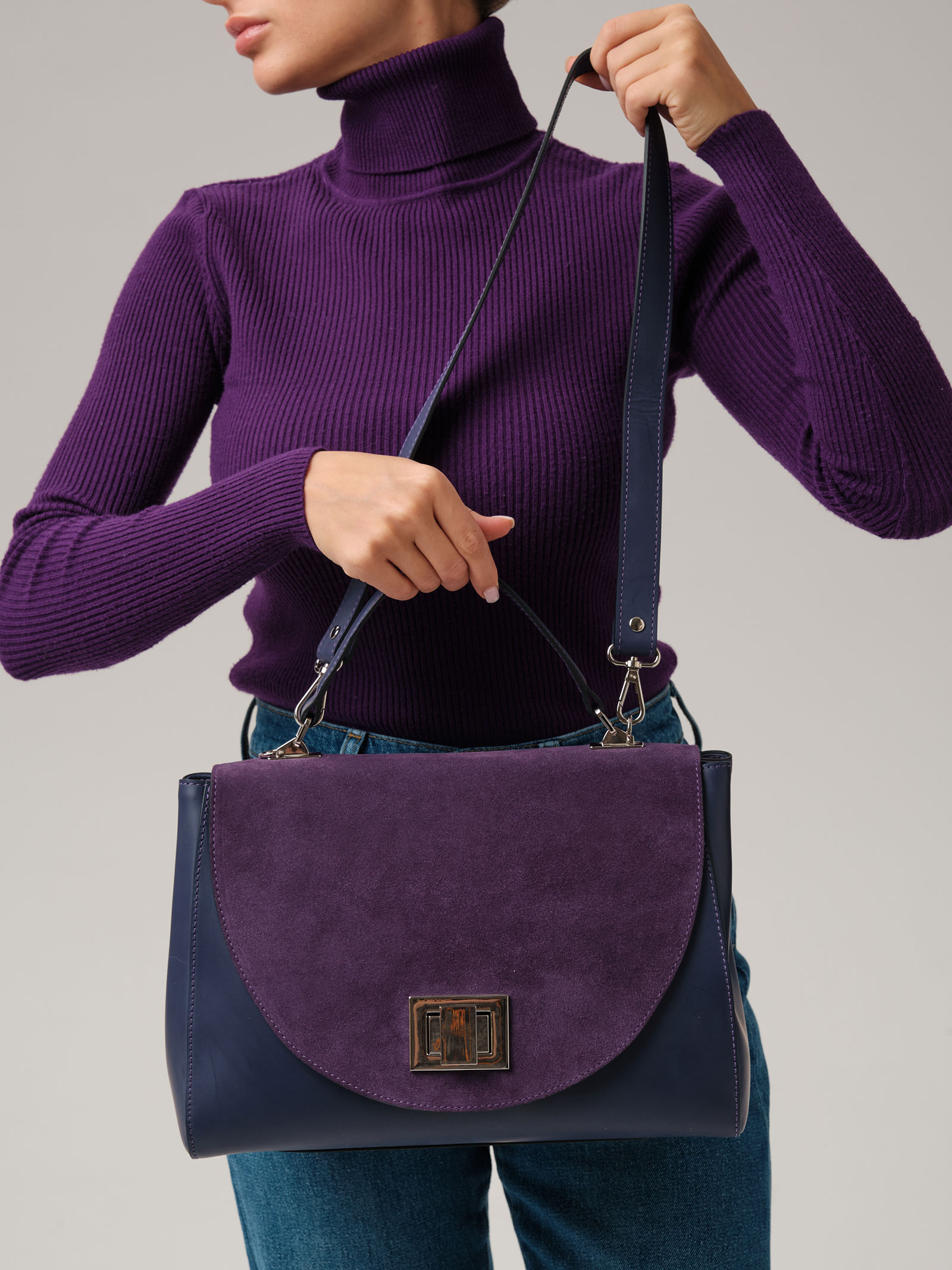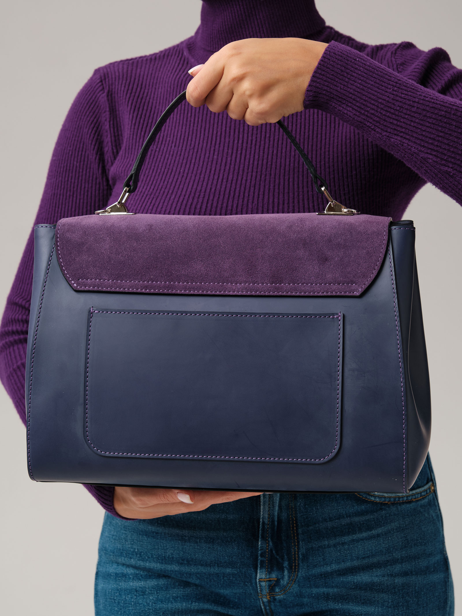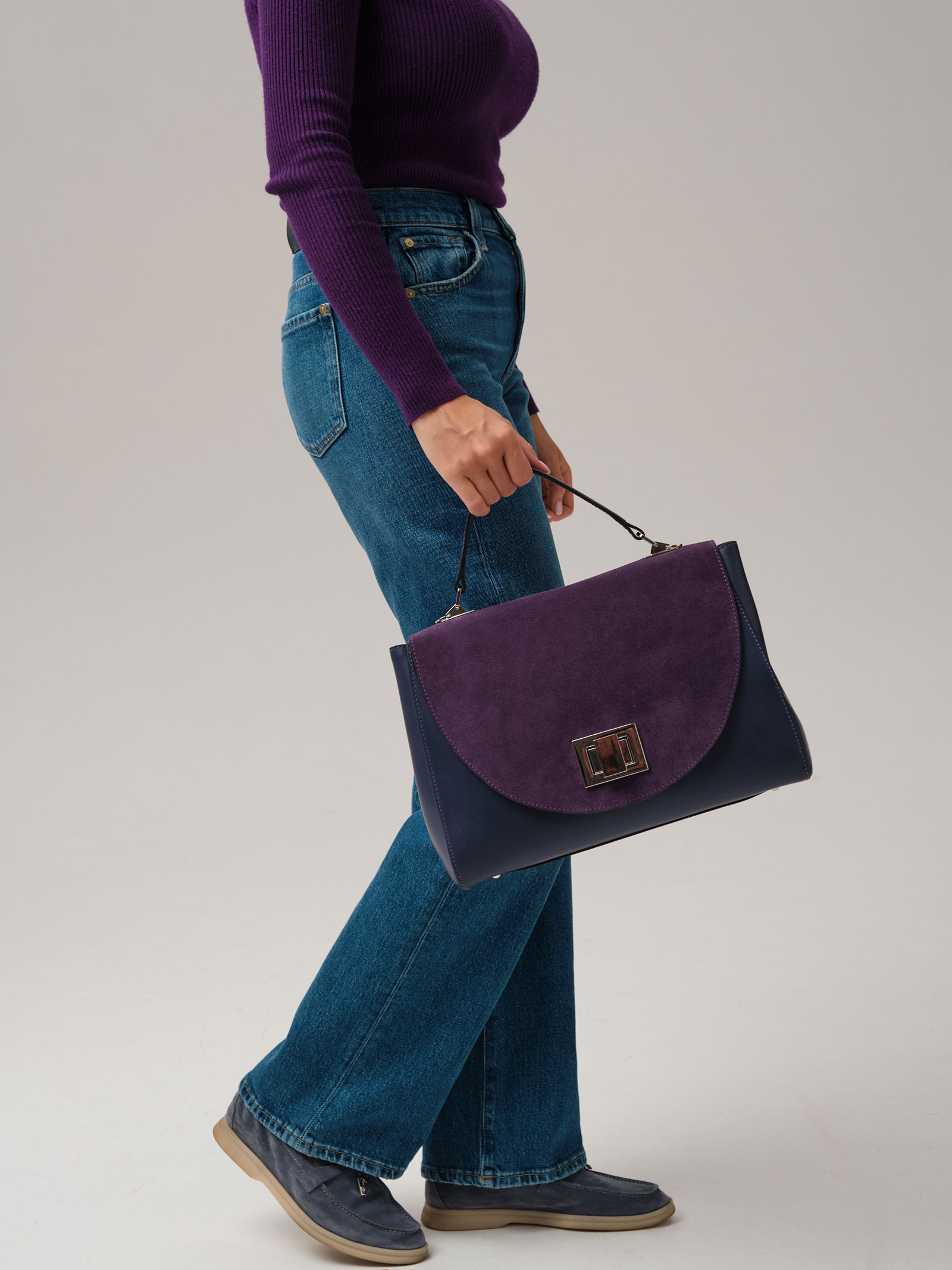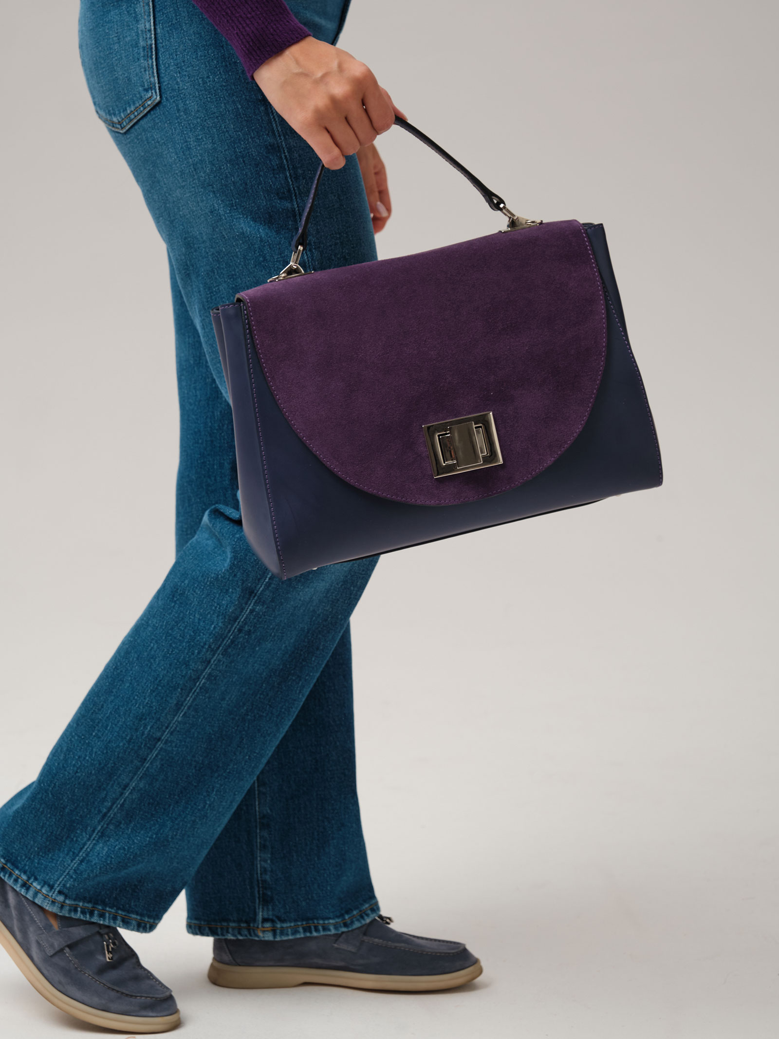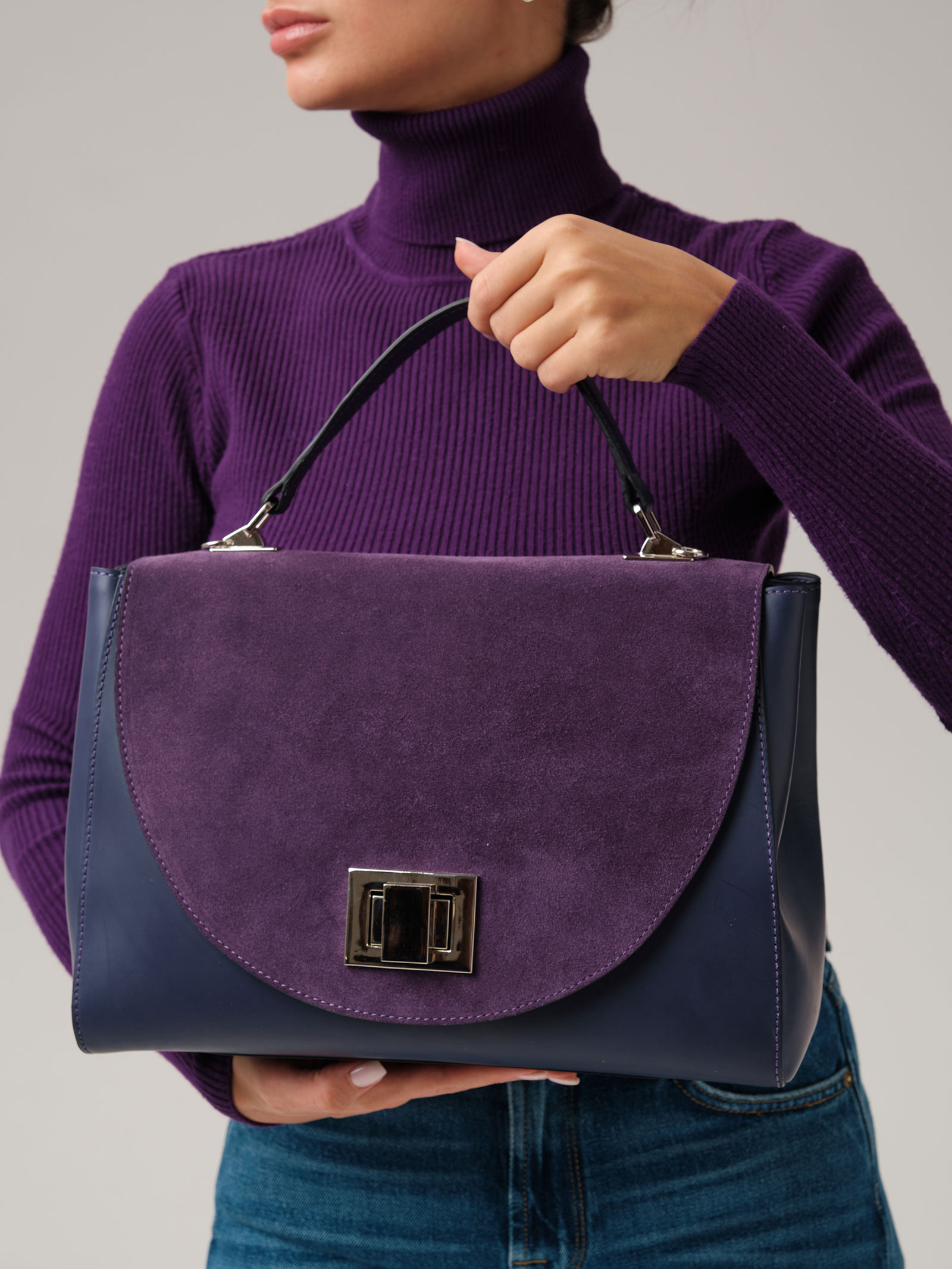 Женская деловая сумка Azaro 30608 фиолетовый цветок из натуральной кожи и замши.
