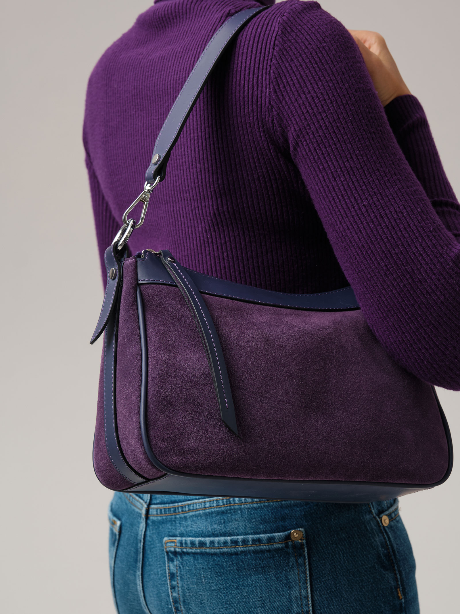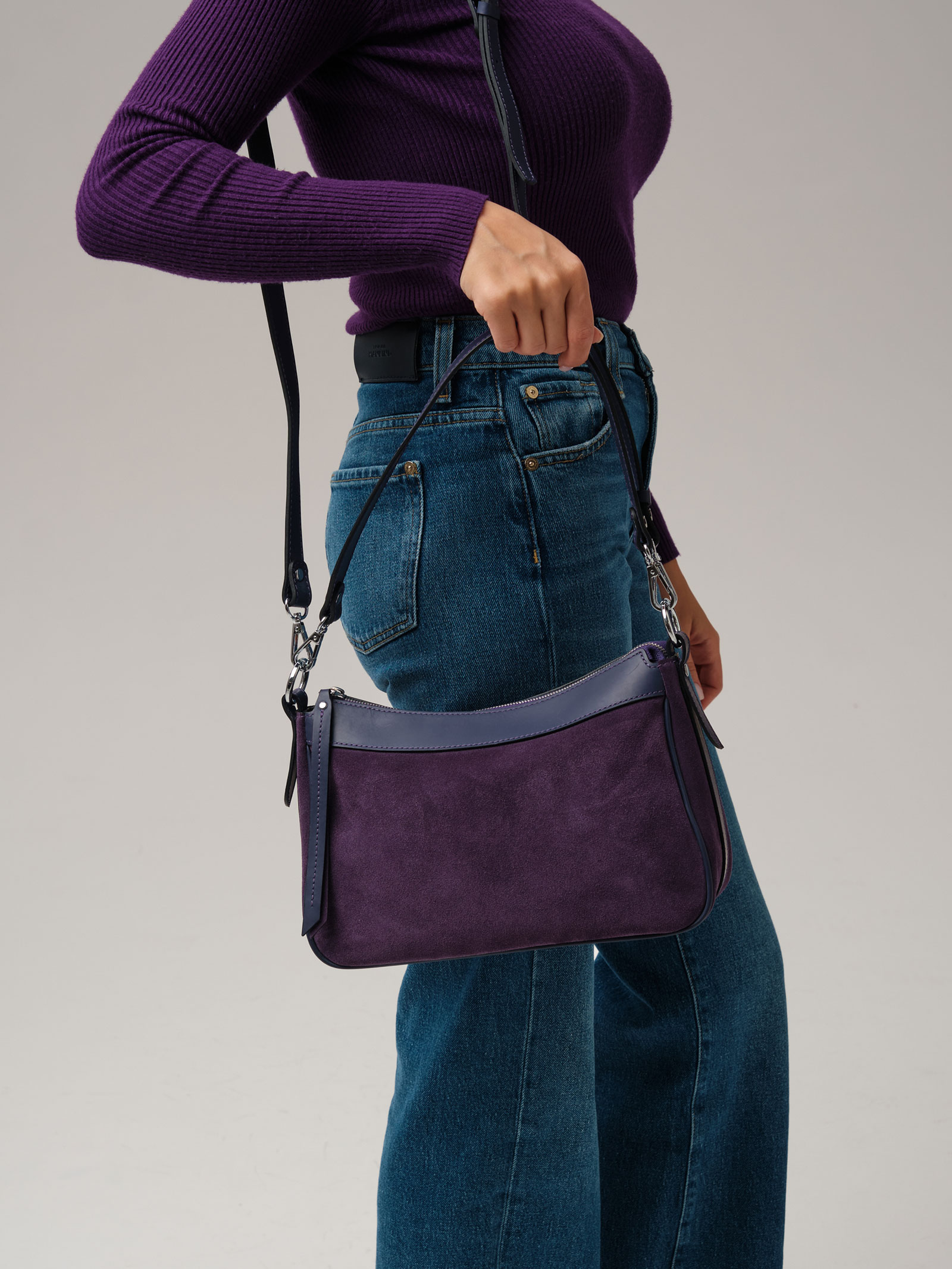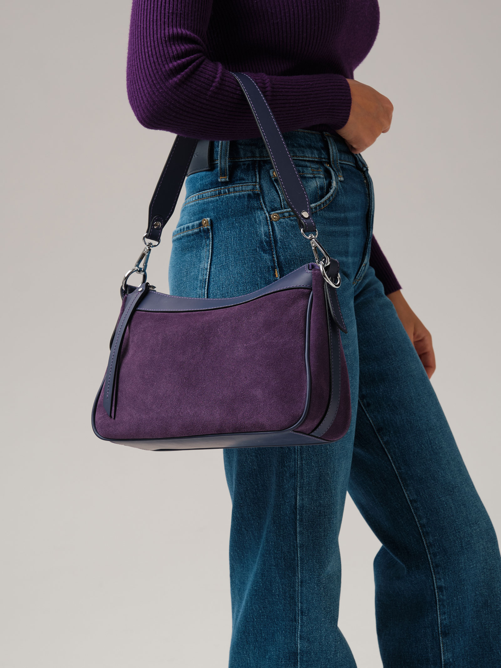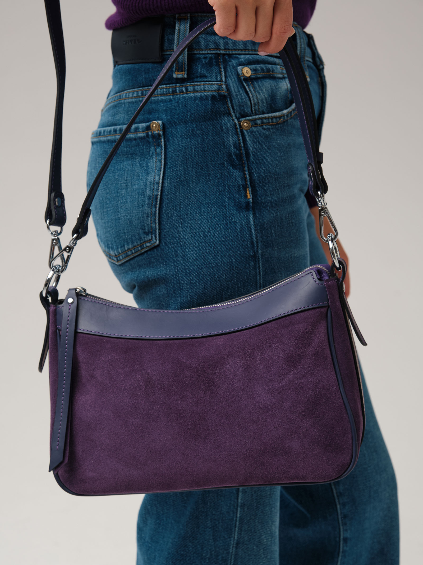 Детали: натуральная кожа, натуральная замша, 2 съемных ремня в комплекте - нерегулируемый короткий ремень, регулируемый длинный ремень, застежка на металлическую молнию с пуллером из натуральной кожи, 1 внутреннее отделение на хлопковой водонепроницаемой подкладке, 1 внутренний закрытый карман на молнии, металлические ножки.