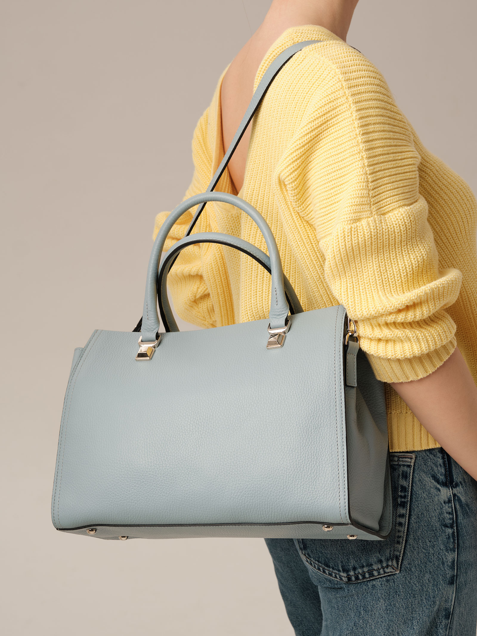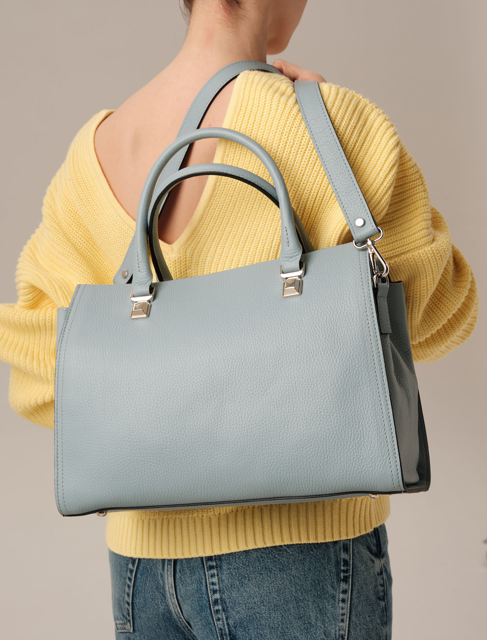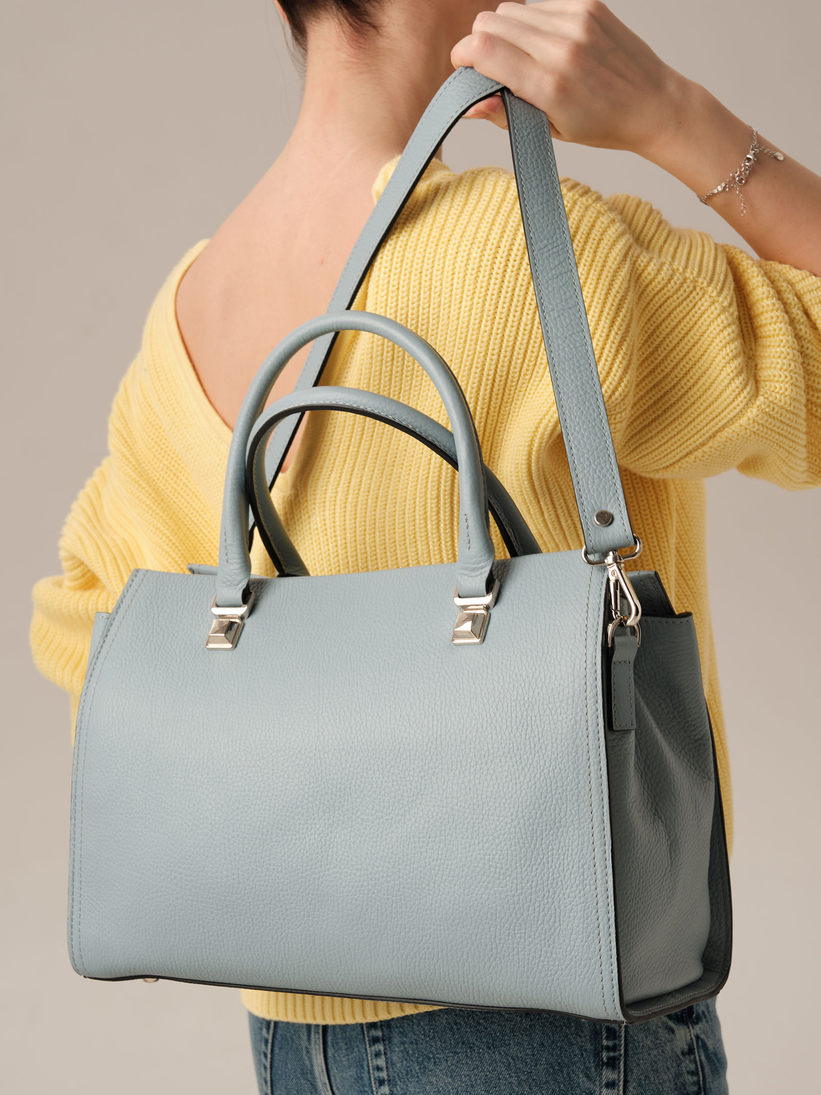Женская кожаная сумка Azaro 30724 серое небо из натуральной кожи.