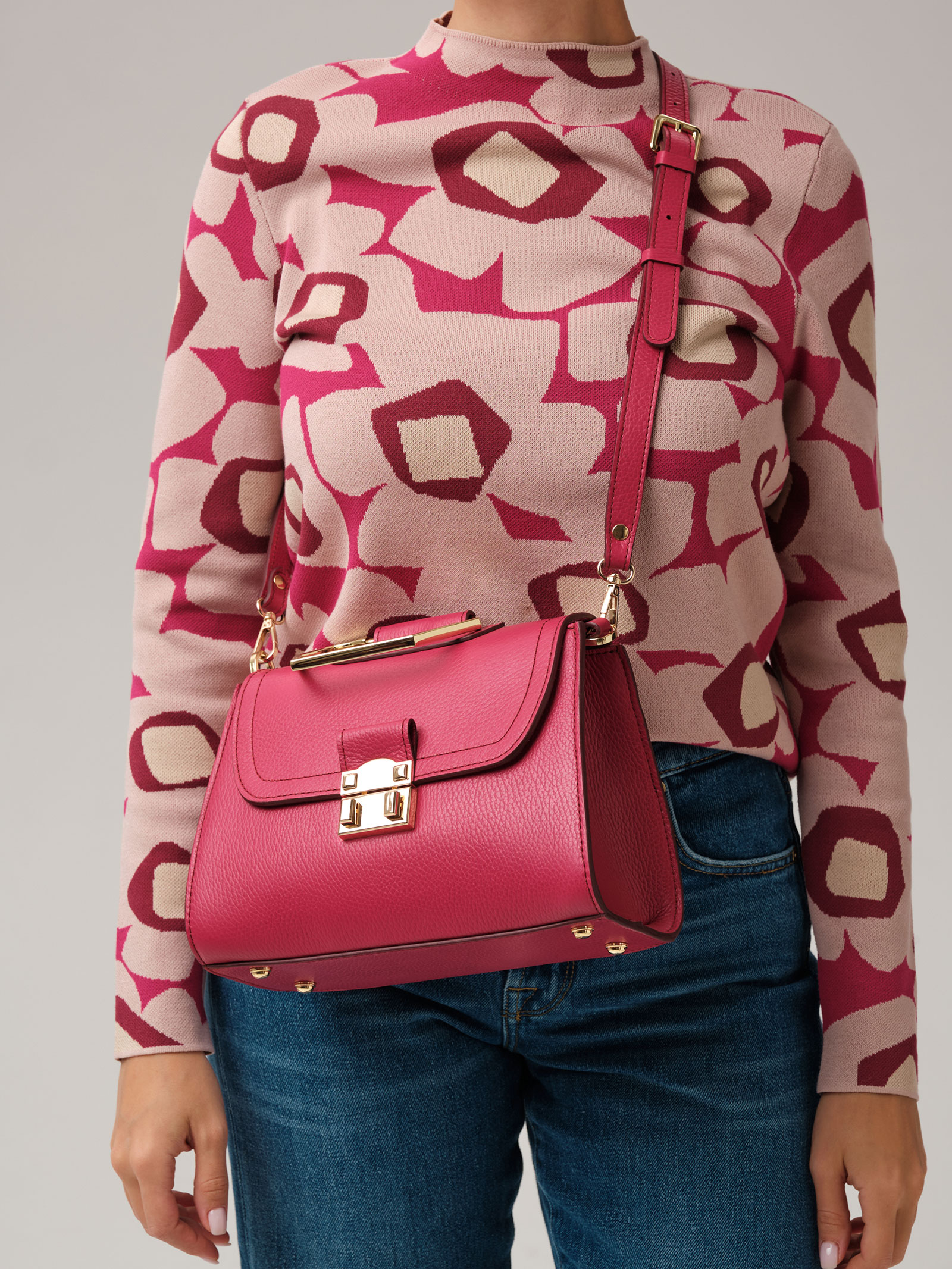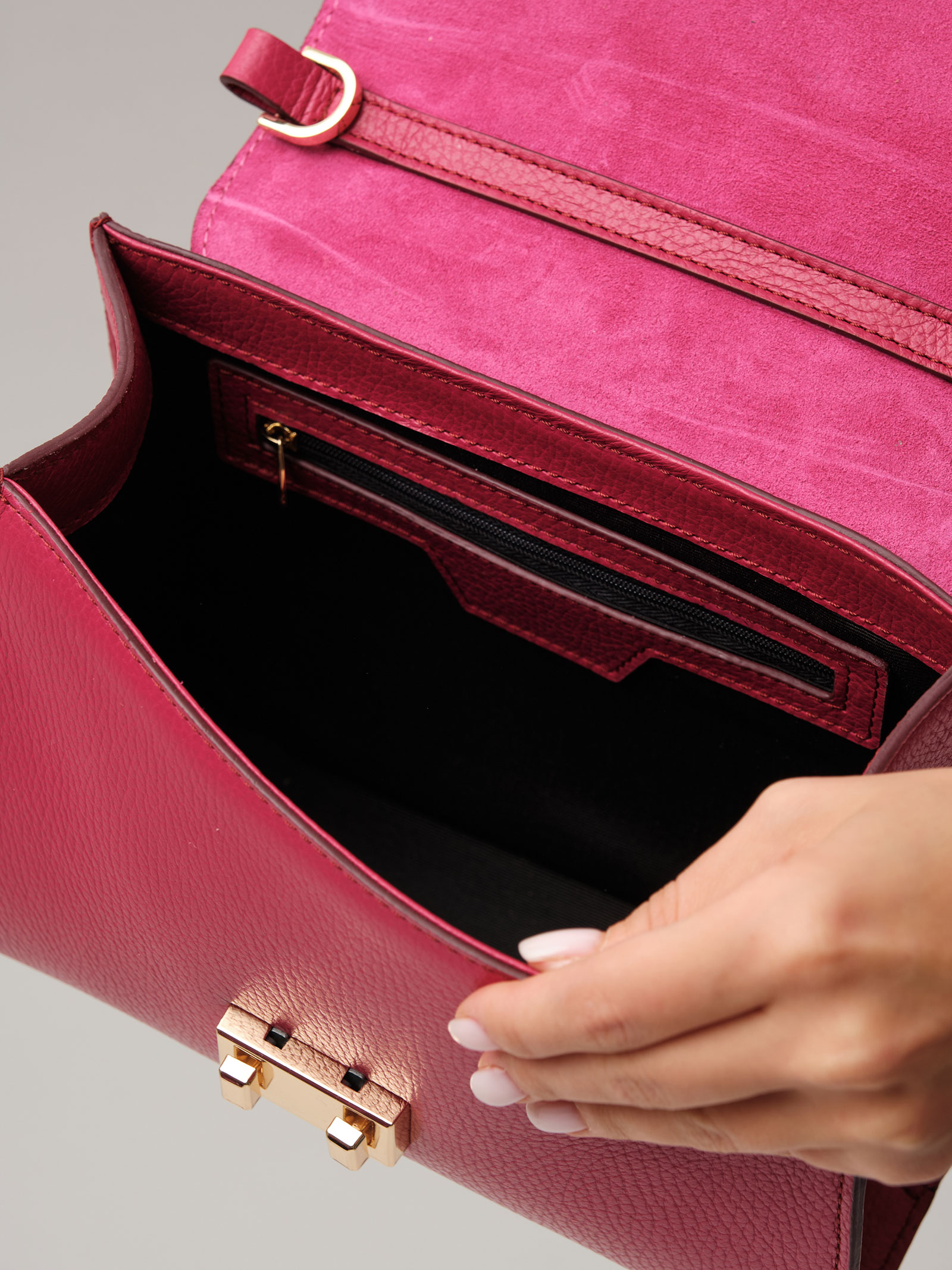Женская кожаная сумка Azaro 30802 розовая ягода из натуральной кожи и замши.