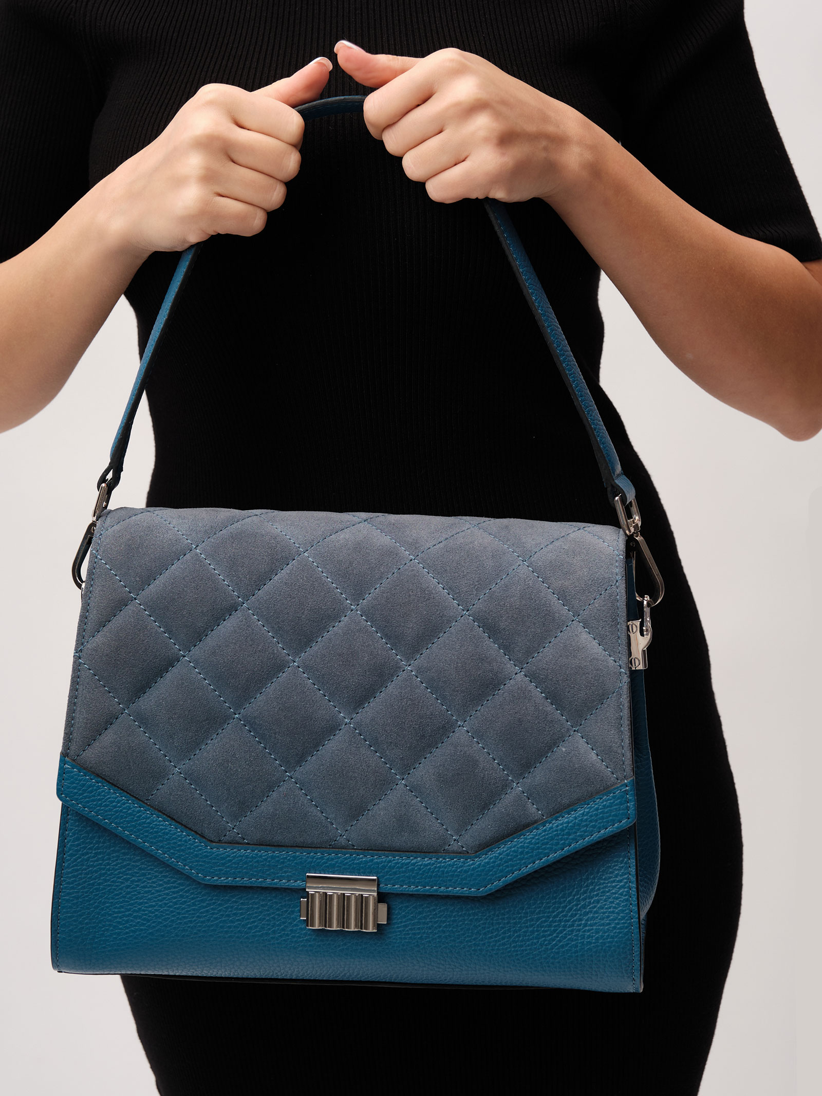 Женская сумка из комбинации натуральной кожи и замши Azaro 30803 синий горизонт.