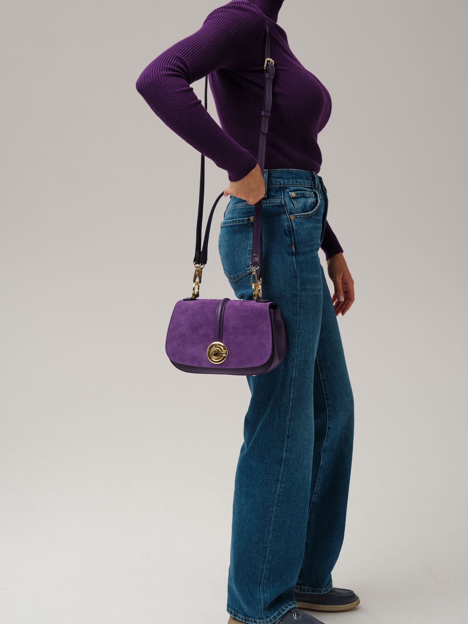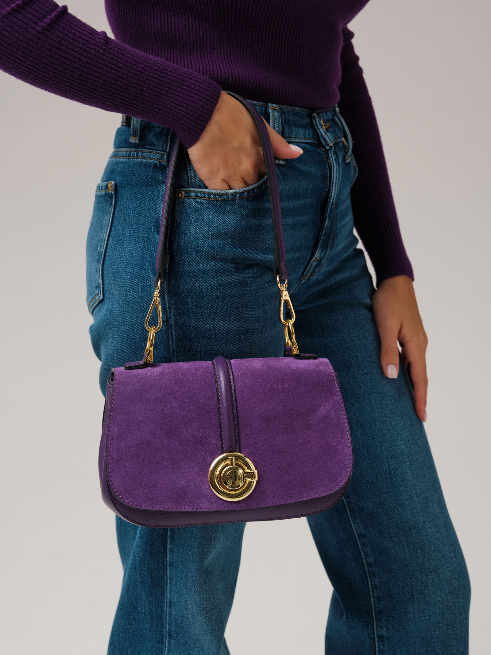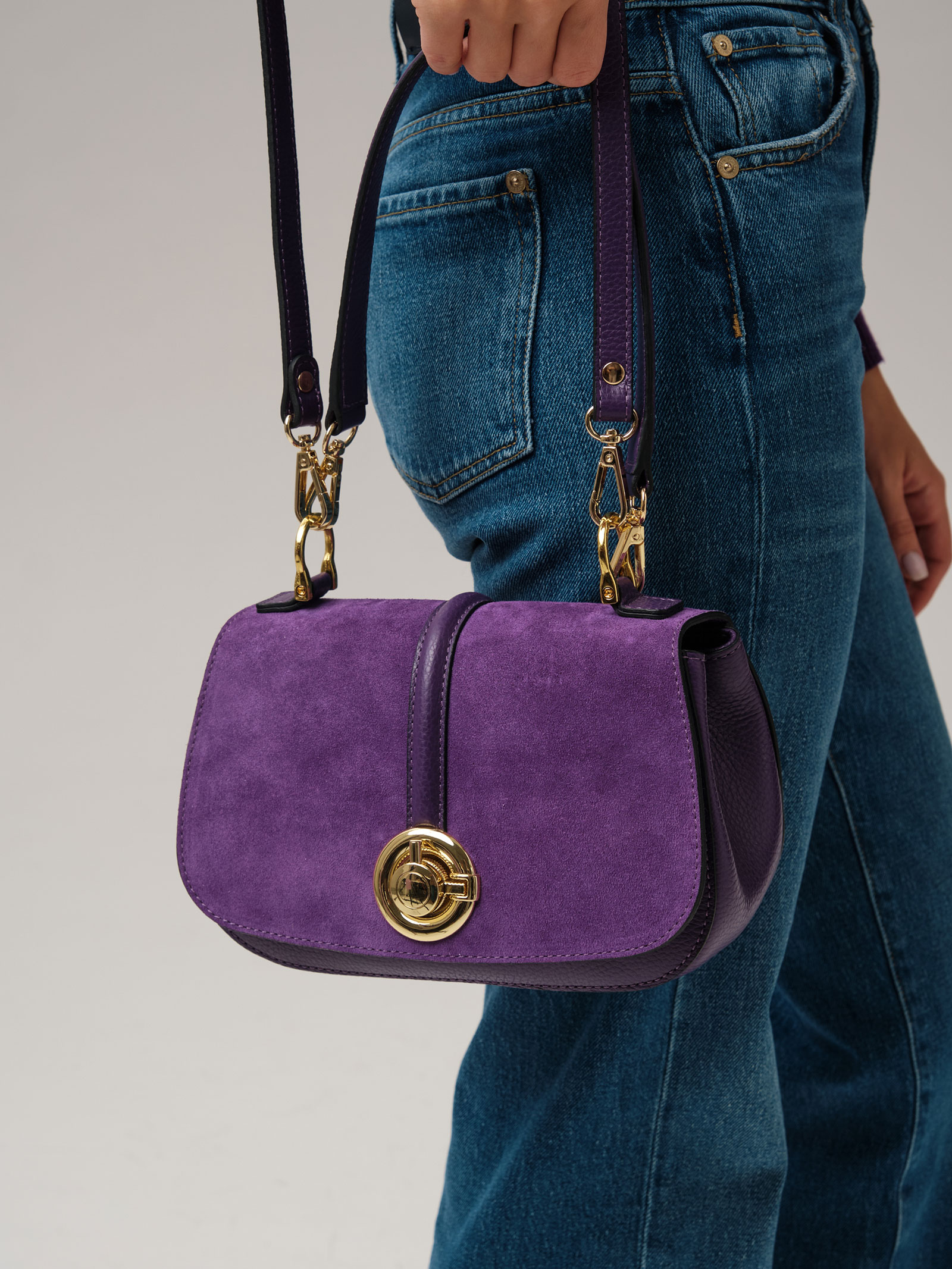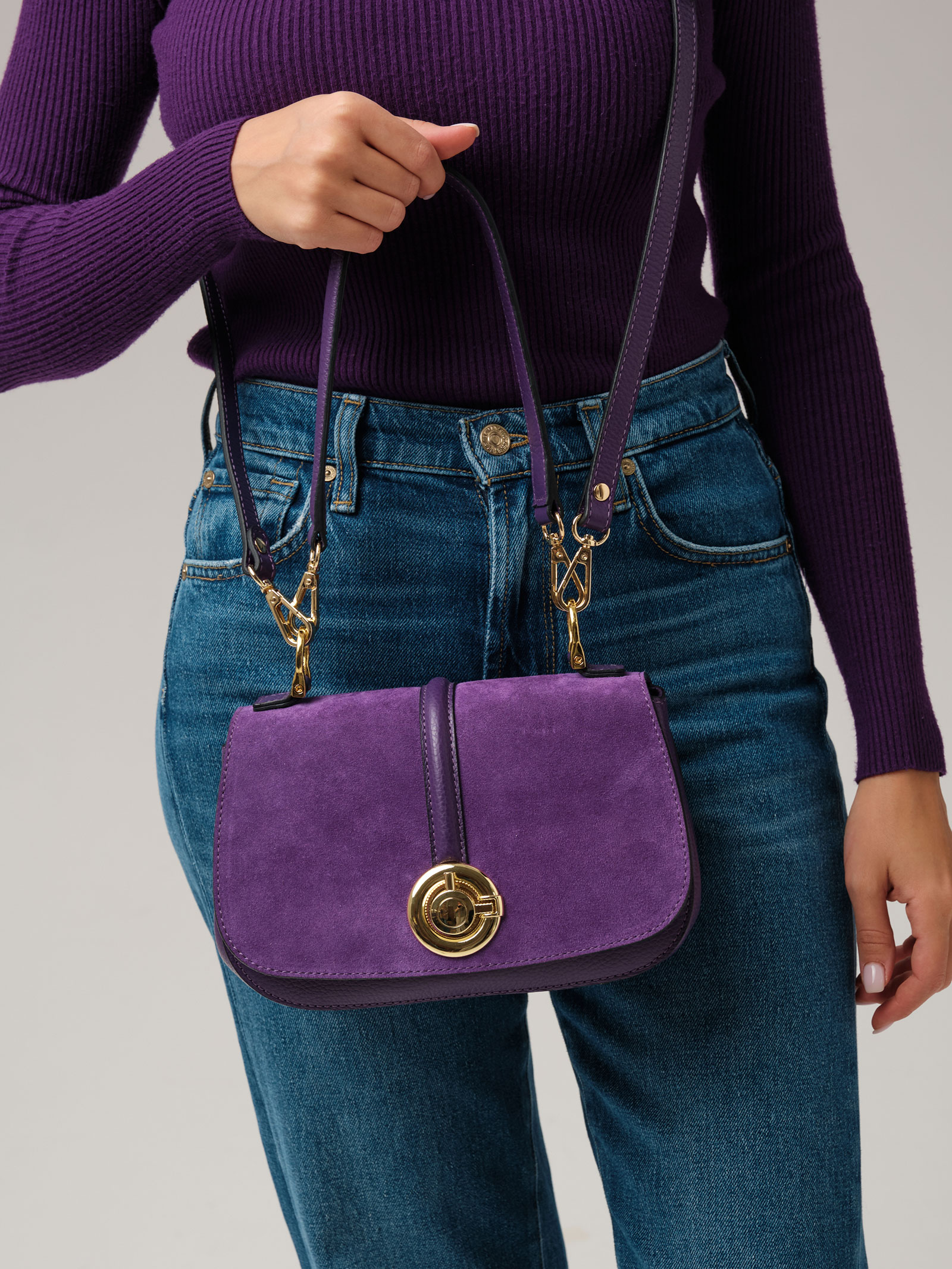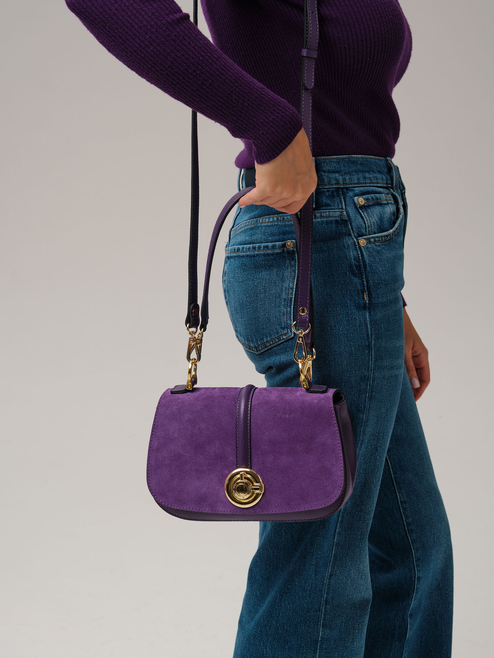 Женская сумка кросс-боди Azaro 30805 в цвете Фиолетовая орхидея из натуральной кожи и замши.