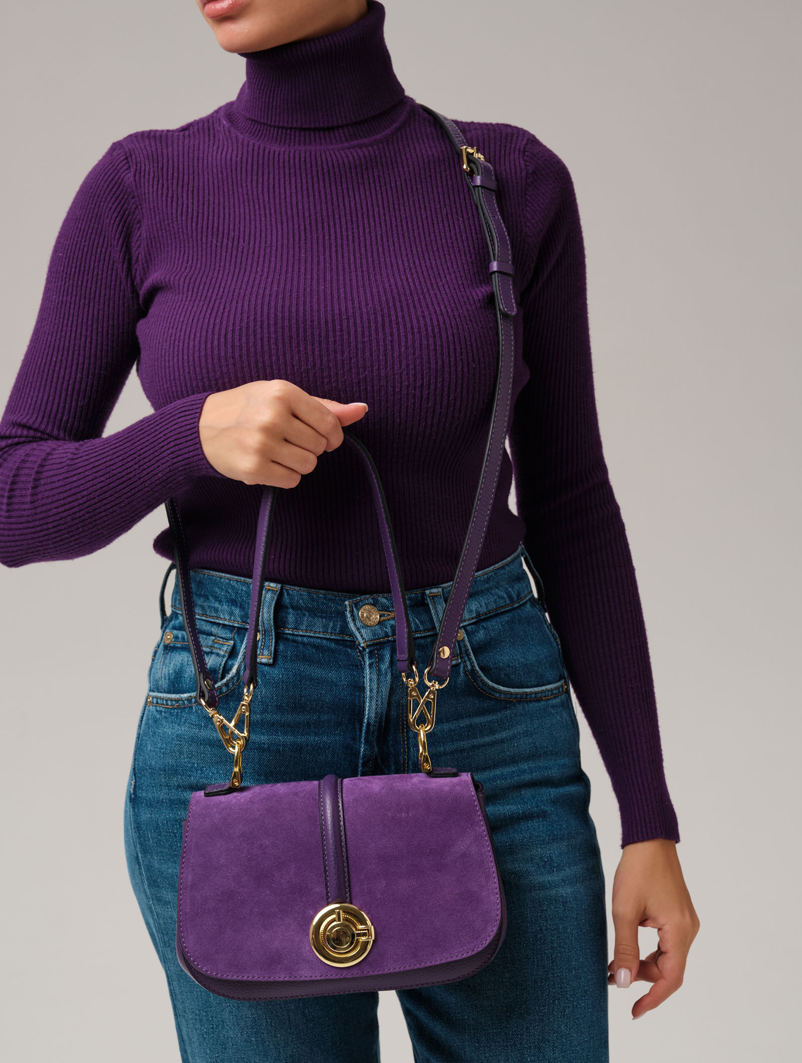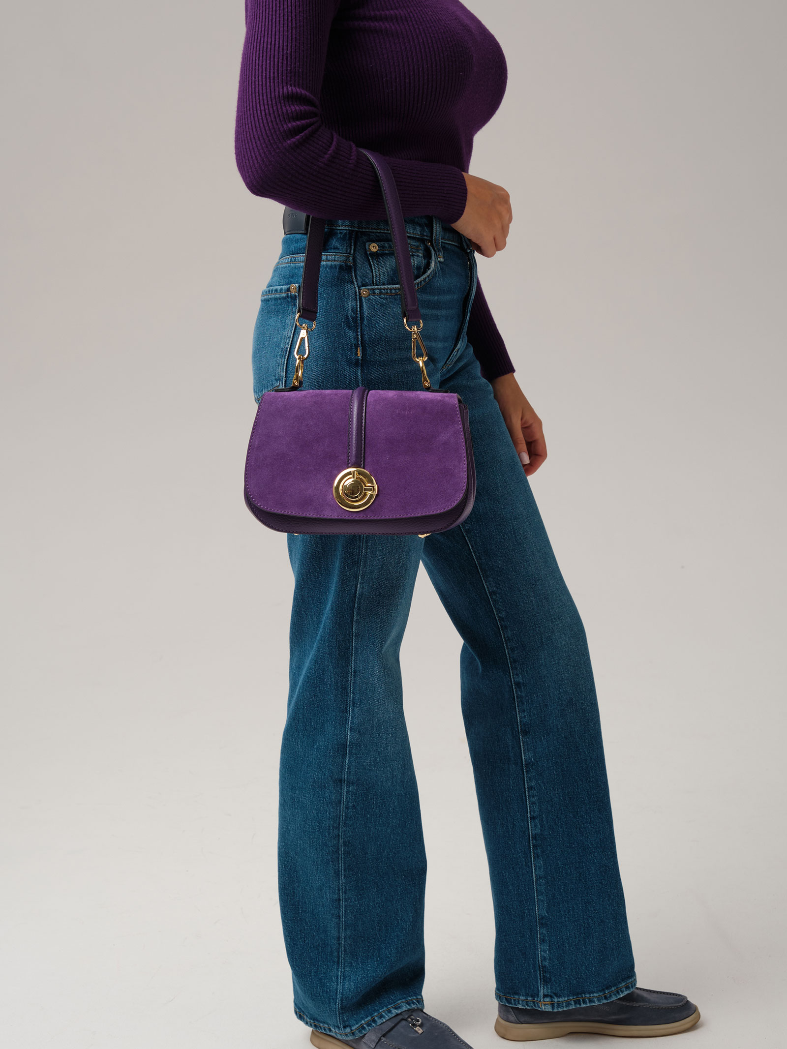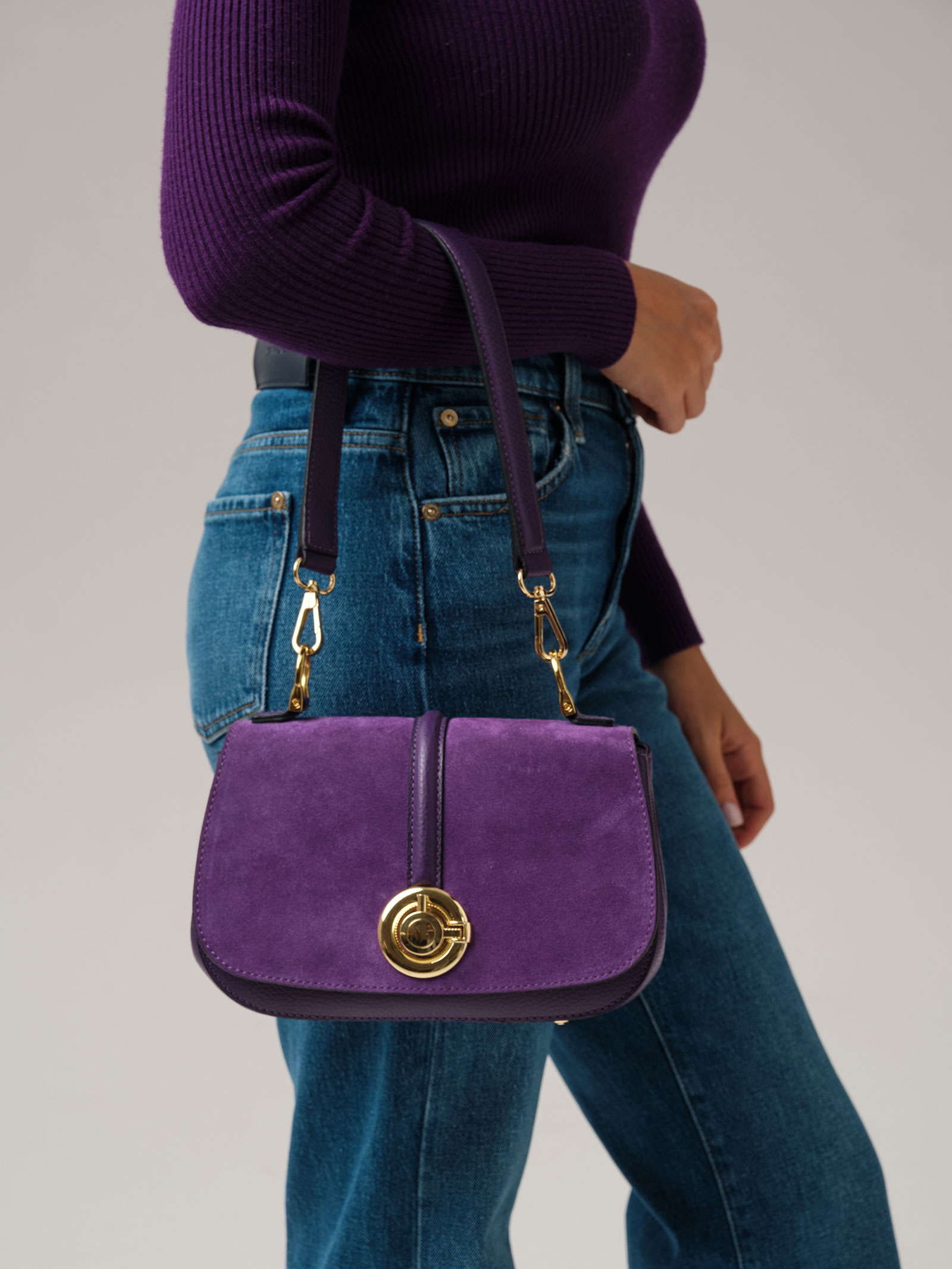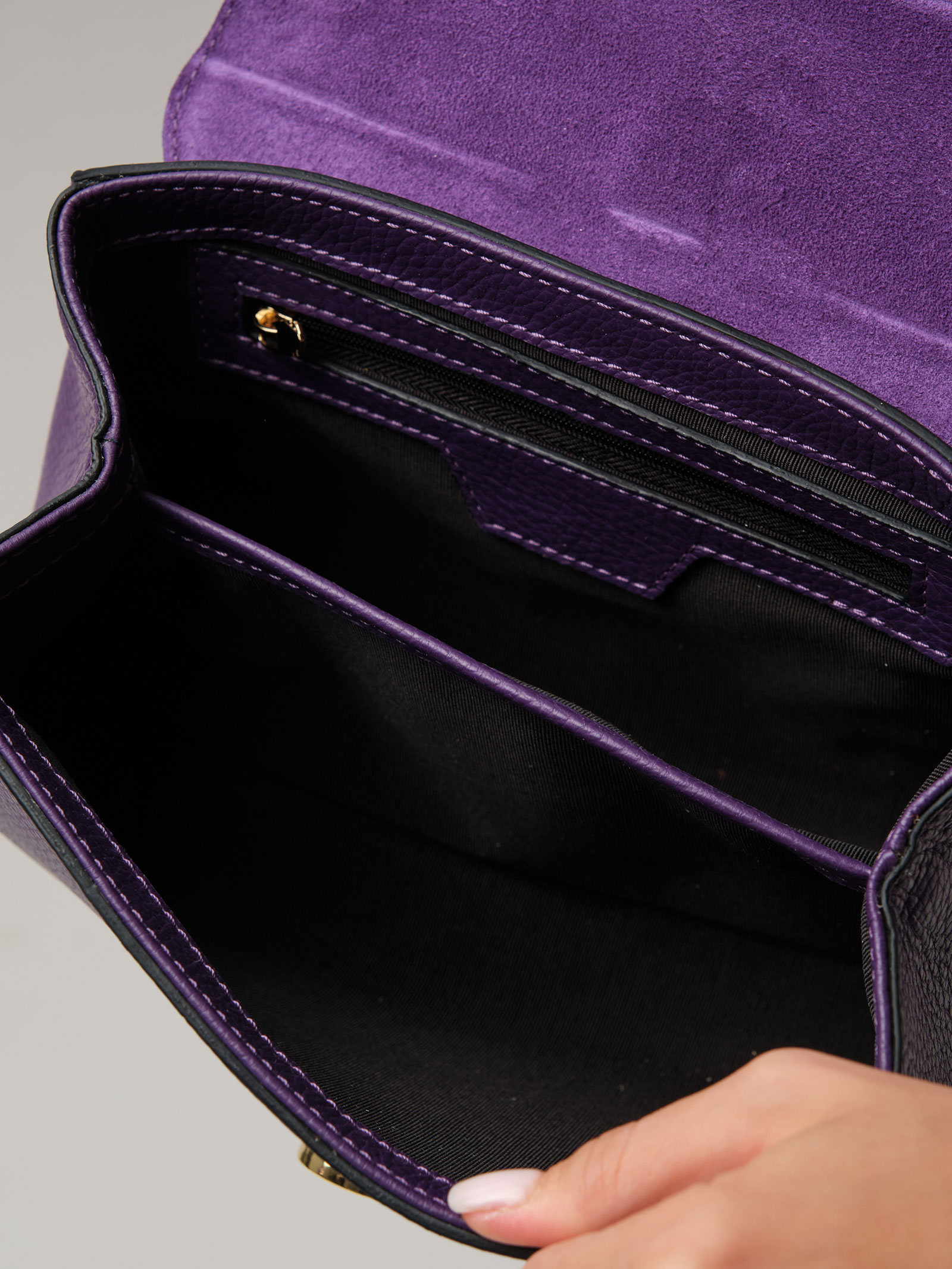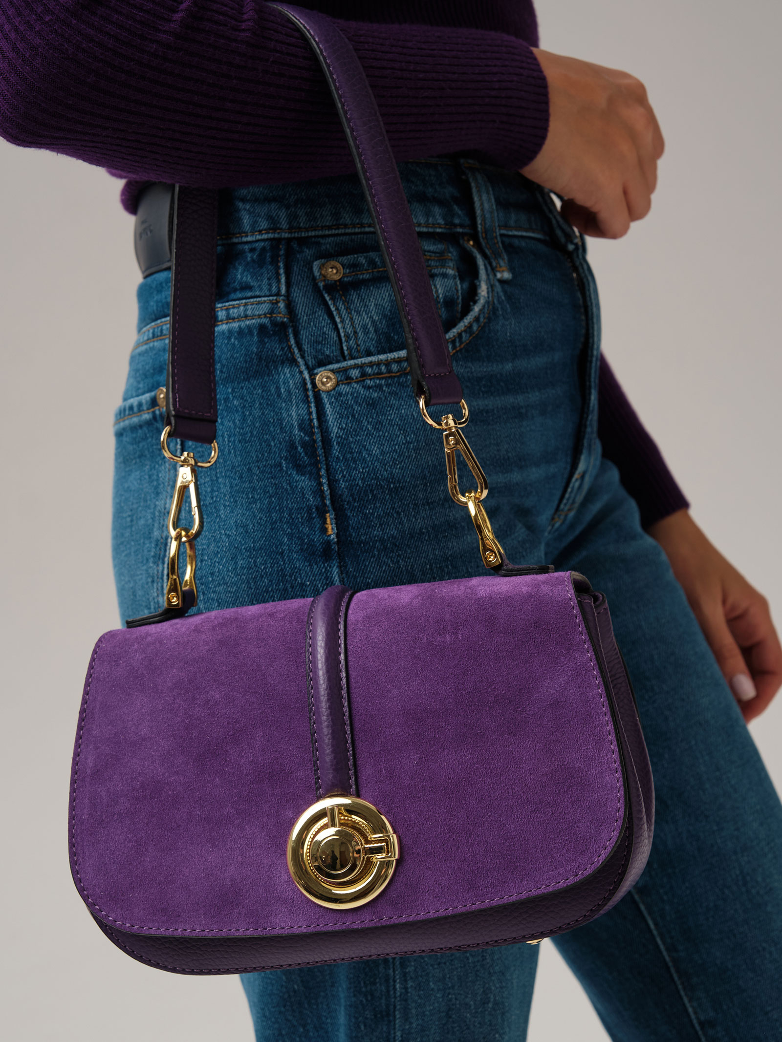 Женская сумка кросс-боди Azaro 30805 в цвете Фиолетовая орхидея из натуральной кожи и замши.