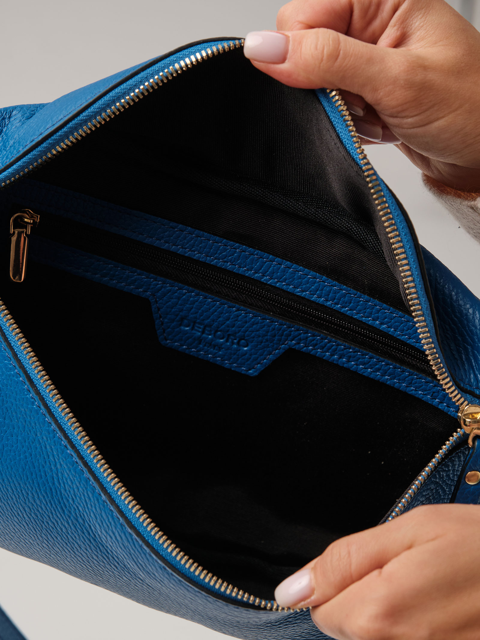 Детали: натуральная кожа, съемный регулируемый кожаный ремень, 1 внутреннее отделение на хлопковой водонепроницаемой подкладке, 1 внутренний закрытый карман на молнии, застежка на металлическую молнию с кожаным пуллером.