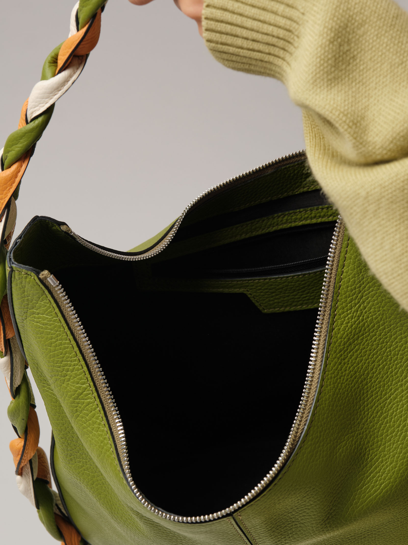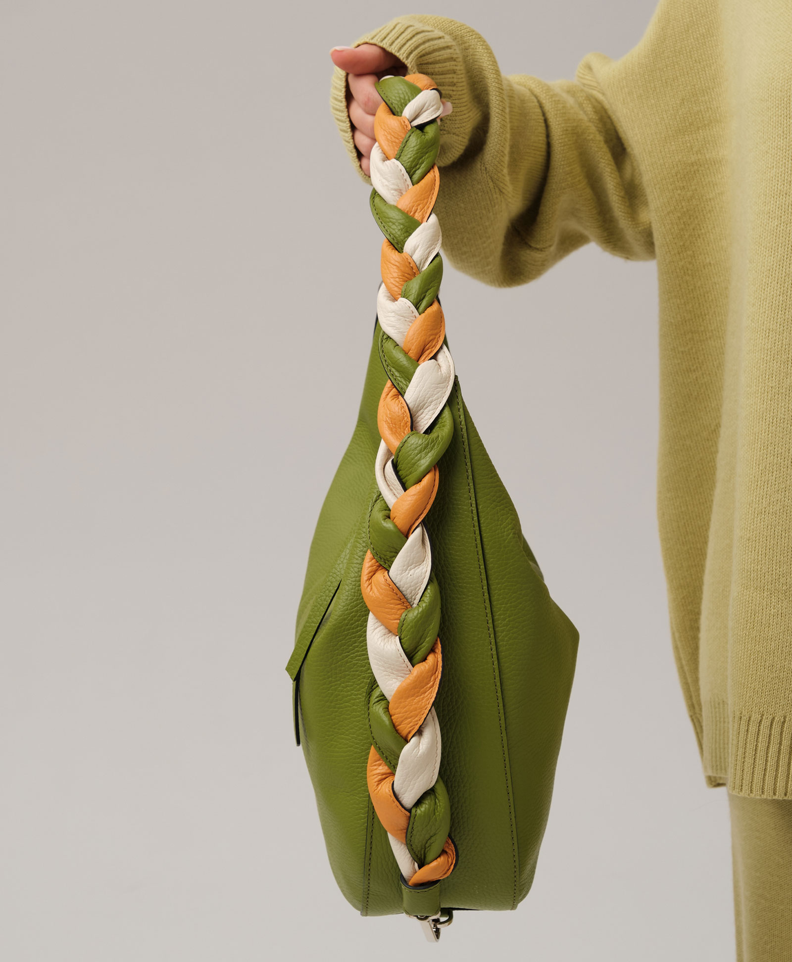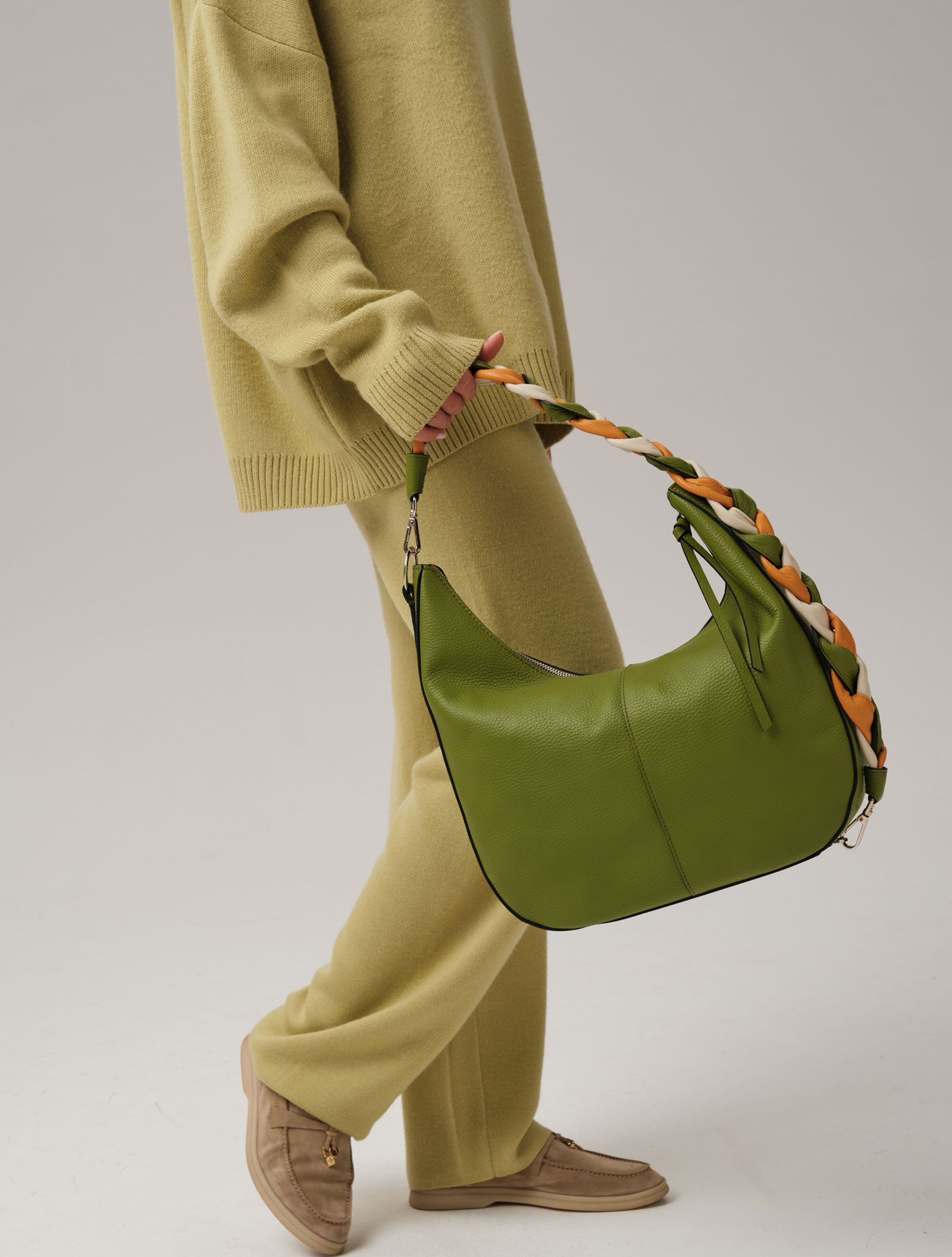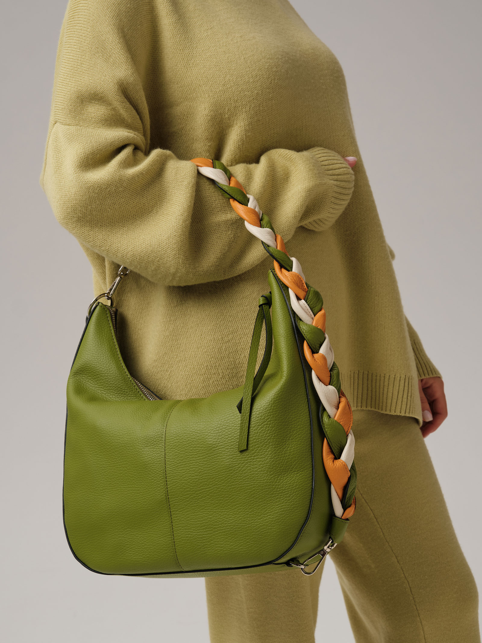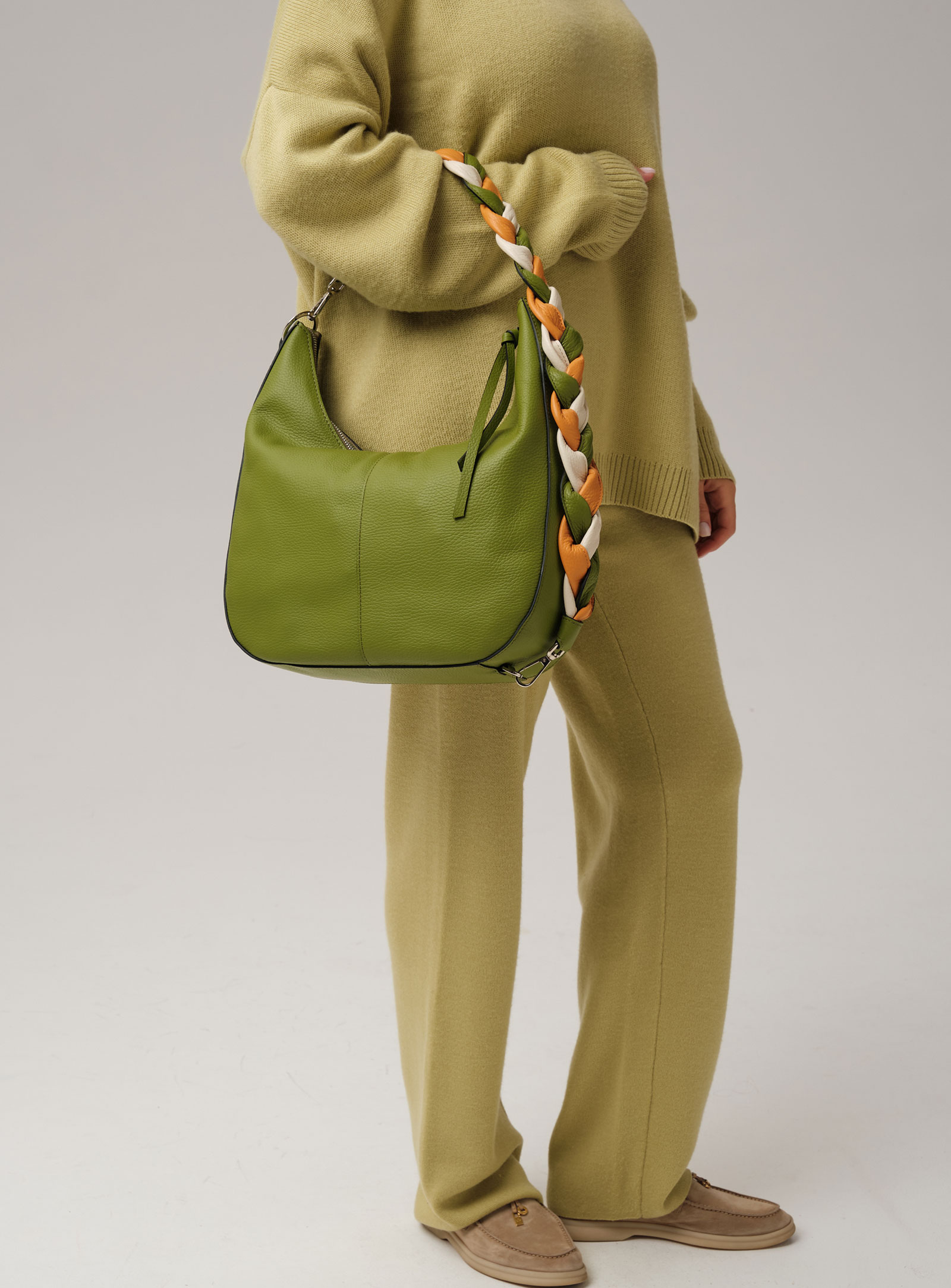 Женская кожаная сумка хобо Azaro 30840 зеленый бамбук из натуральной кожи.