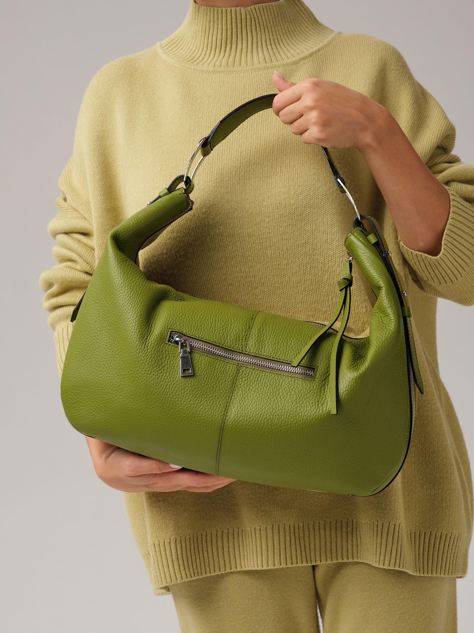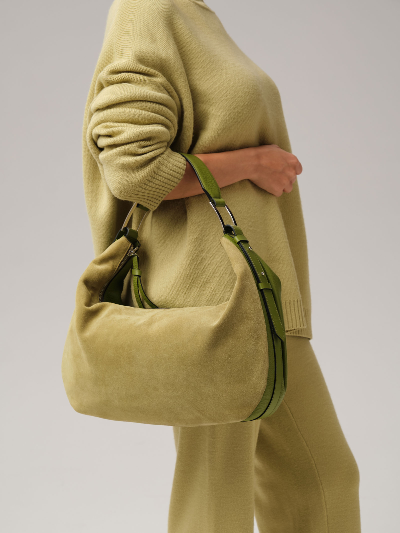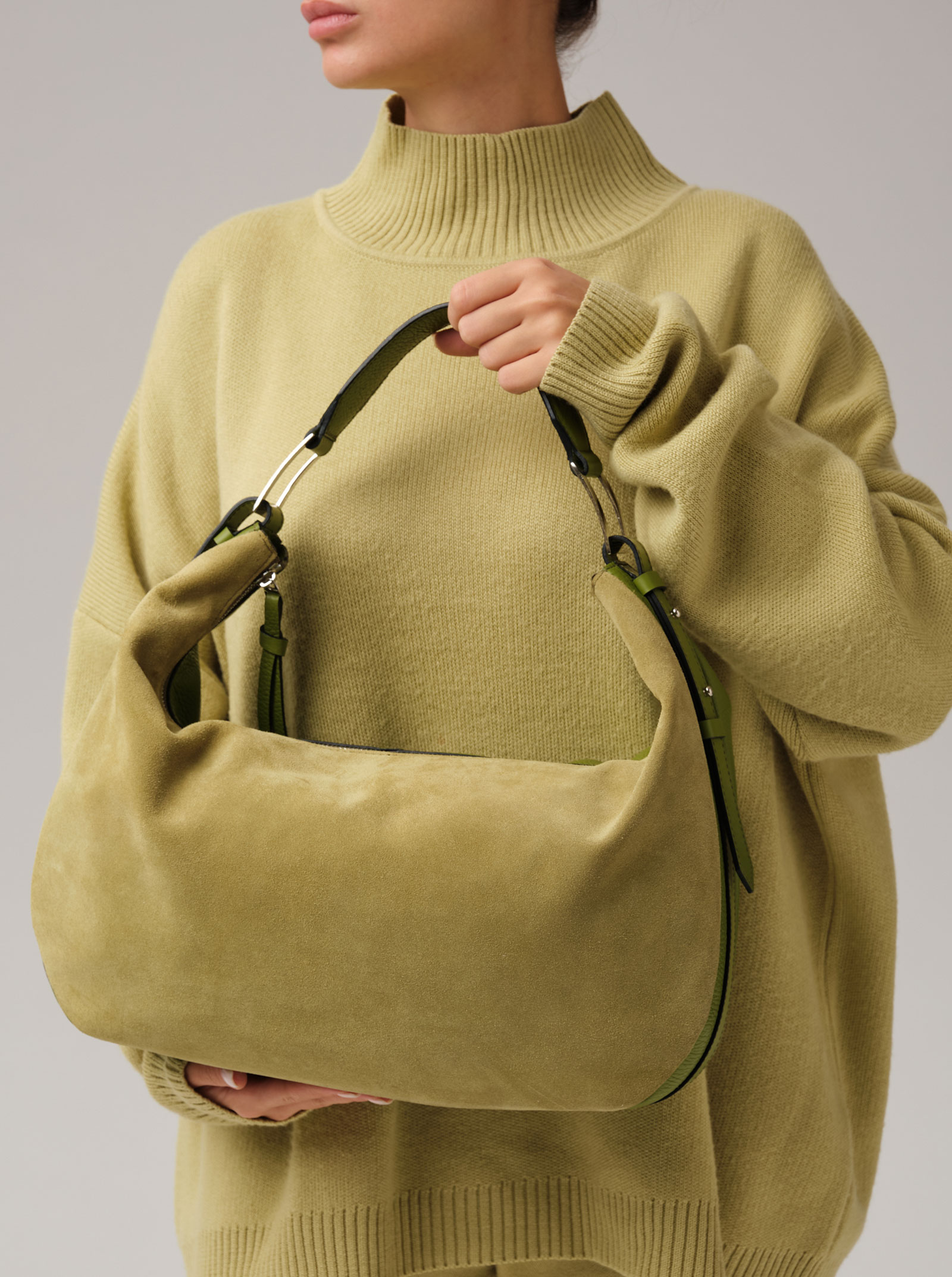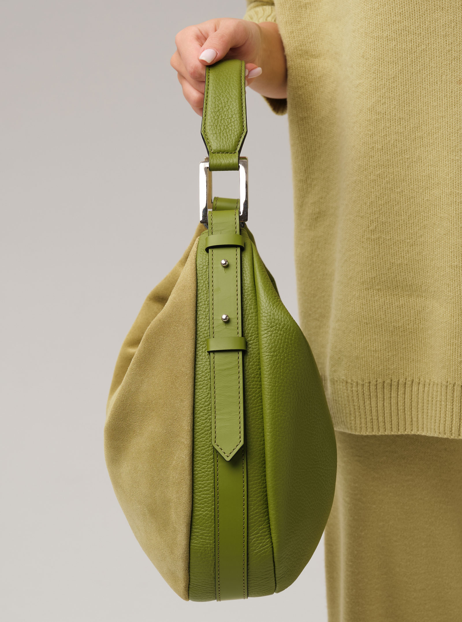 Женская сумка Deboro 30861 зеленый бамбук из натуральной замши на передней стенке и натуральной кожи на задней стенке.