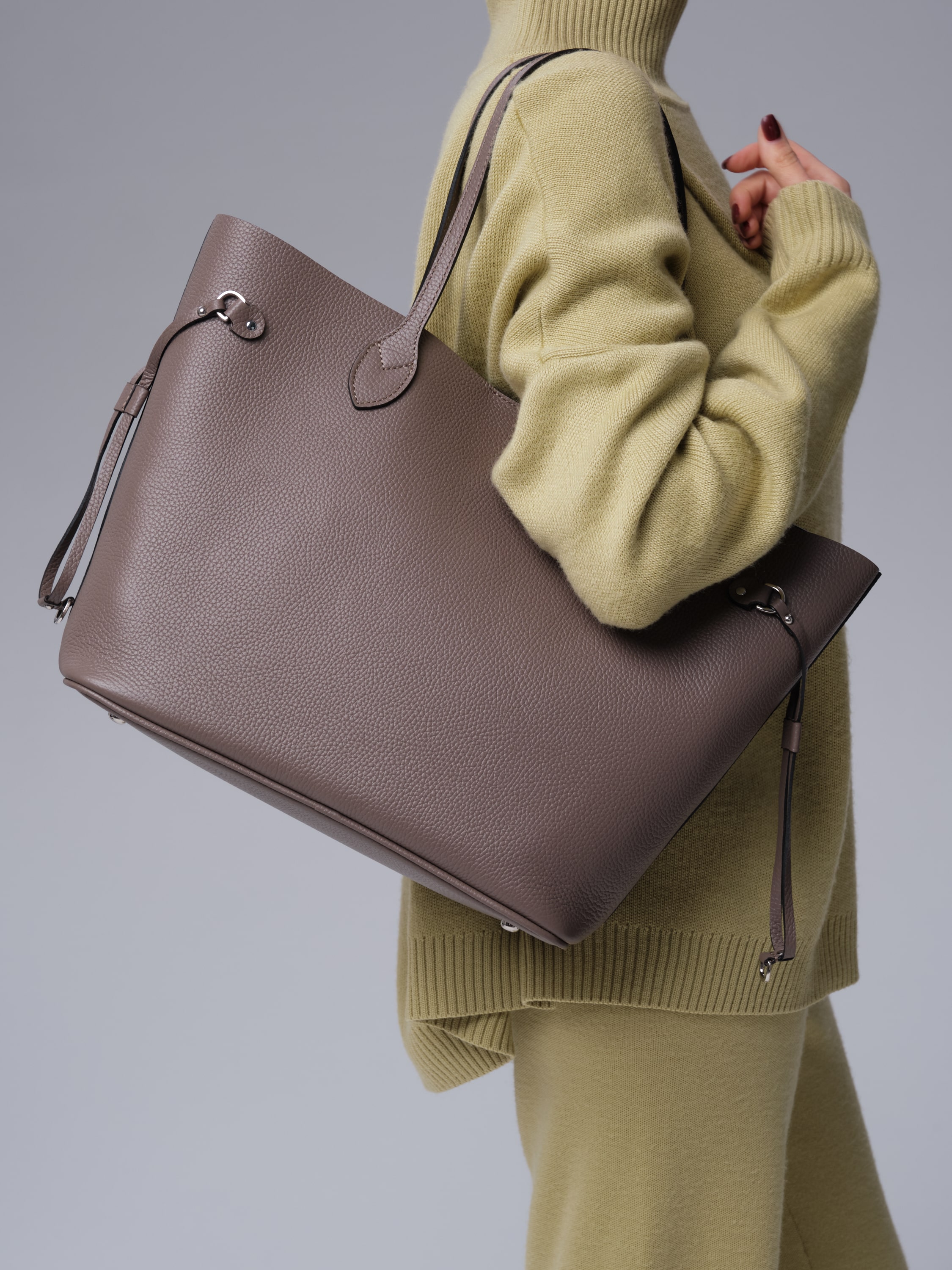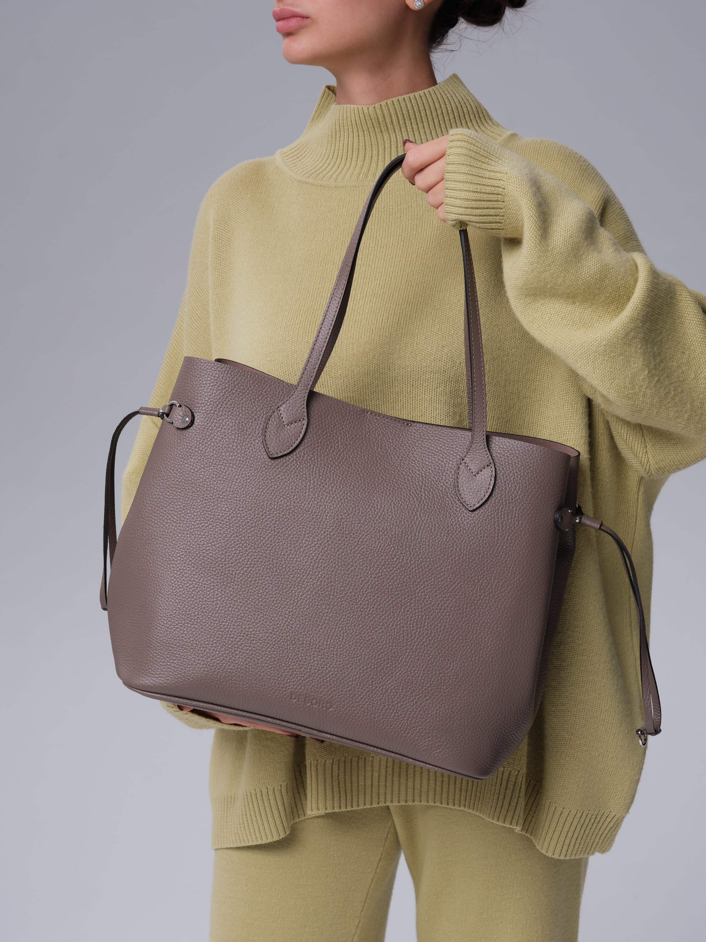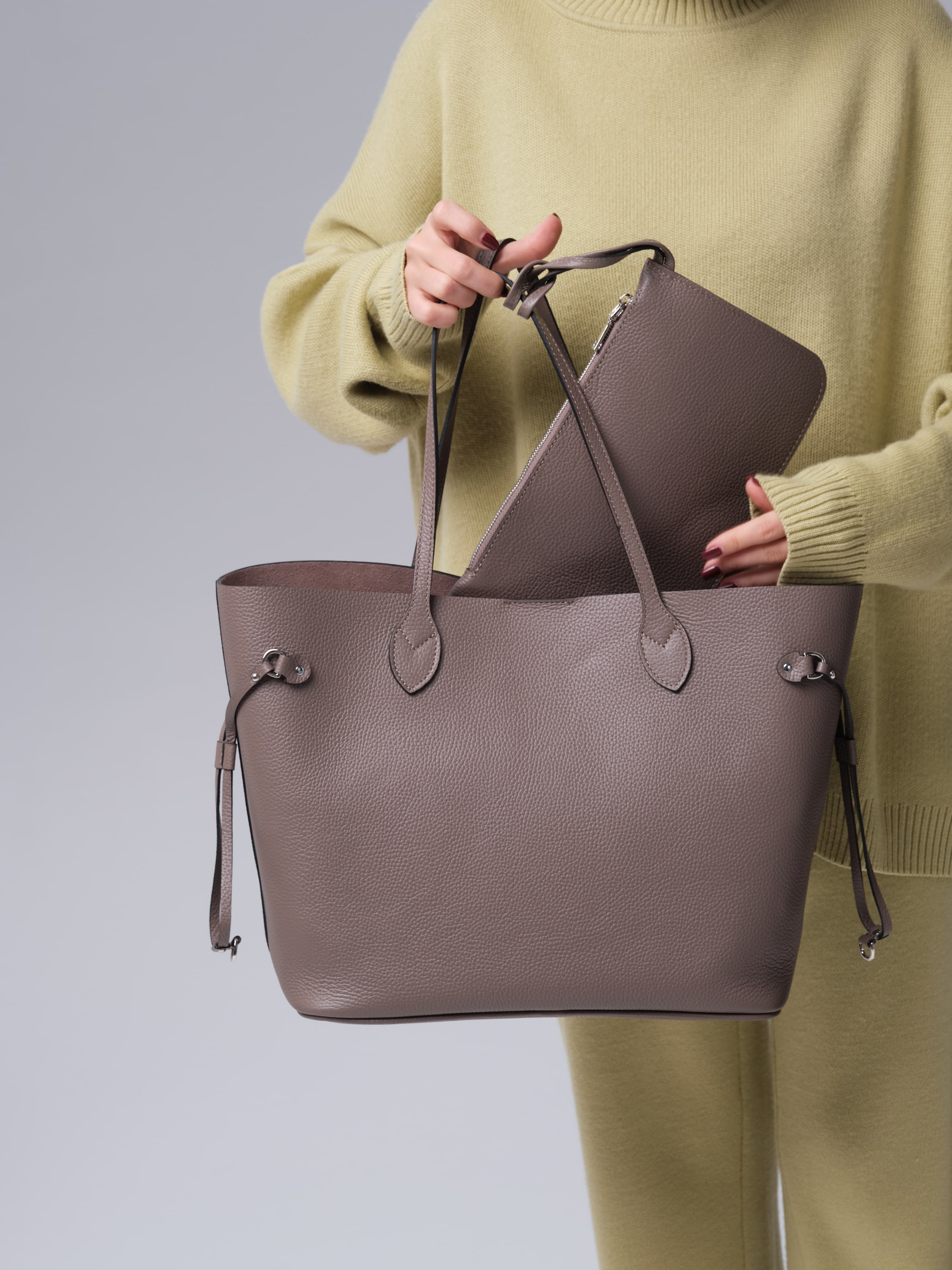Женская кожаная сумка шоппер на плечо Deboro 30890 тауп из натуральной кожи. Модель сочетает в себе стиль и практичность, что делает ее незаменимым элементом вашего гардероба. Сумка-тоут выполнена из натуральной кожи, обеспечивающей долгий срок службы и элегантный внешний вид. Ее классический дизайн подойдет как для повседневной носки, так и для более формальных мероприятий.