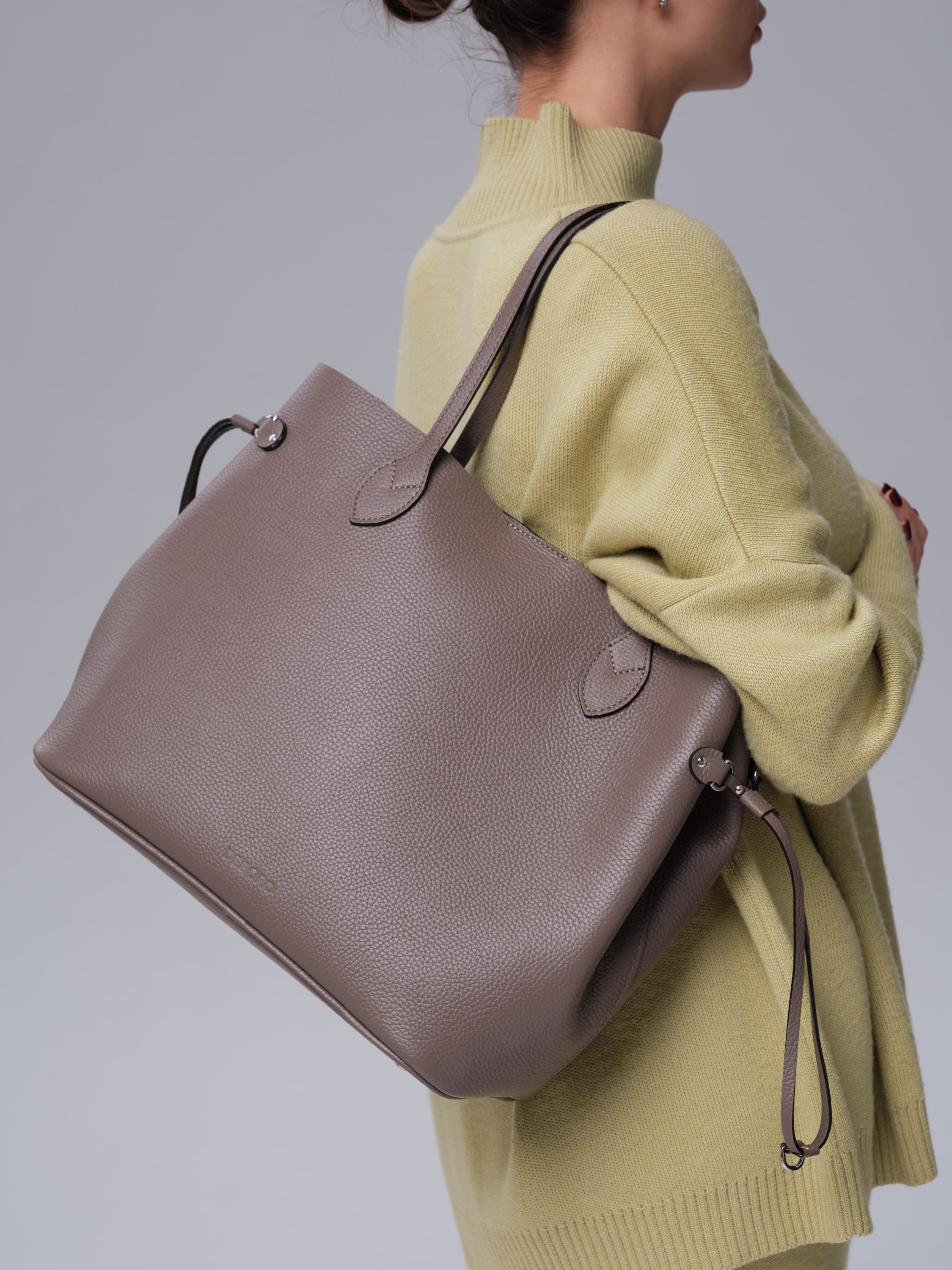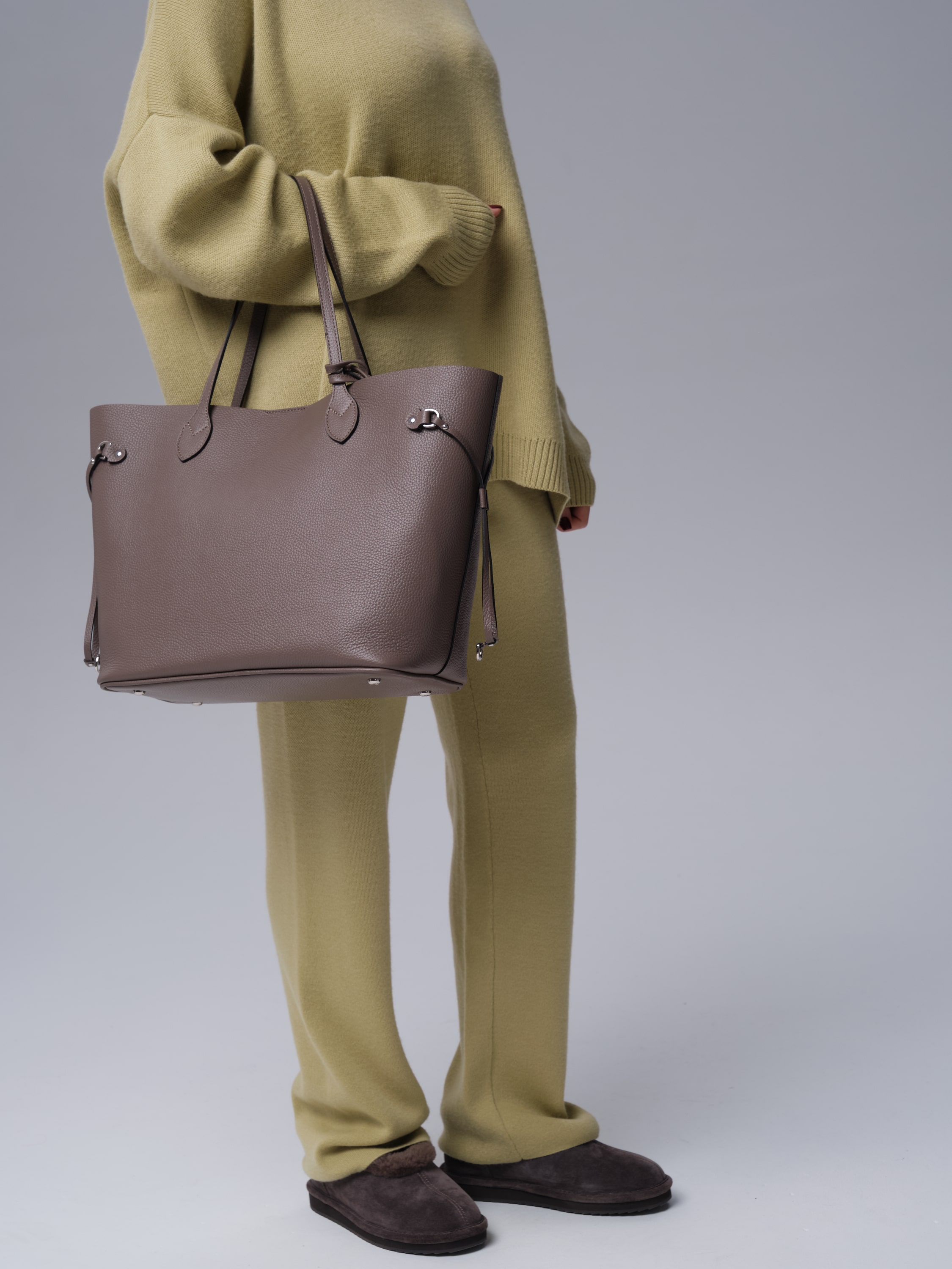 Сумка отличается своей вместительностью. Вы без труда сможете разместить в ней все необходимые вещи: от косметики до книг и планшета. Это большая сумка, в которую поместится все, что вам нужно в течение дня. Удобные ручки позволяют носить сумку на плече, а также в руке, обеспечивая разнообразные варианты использования.