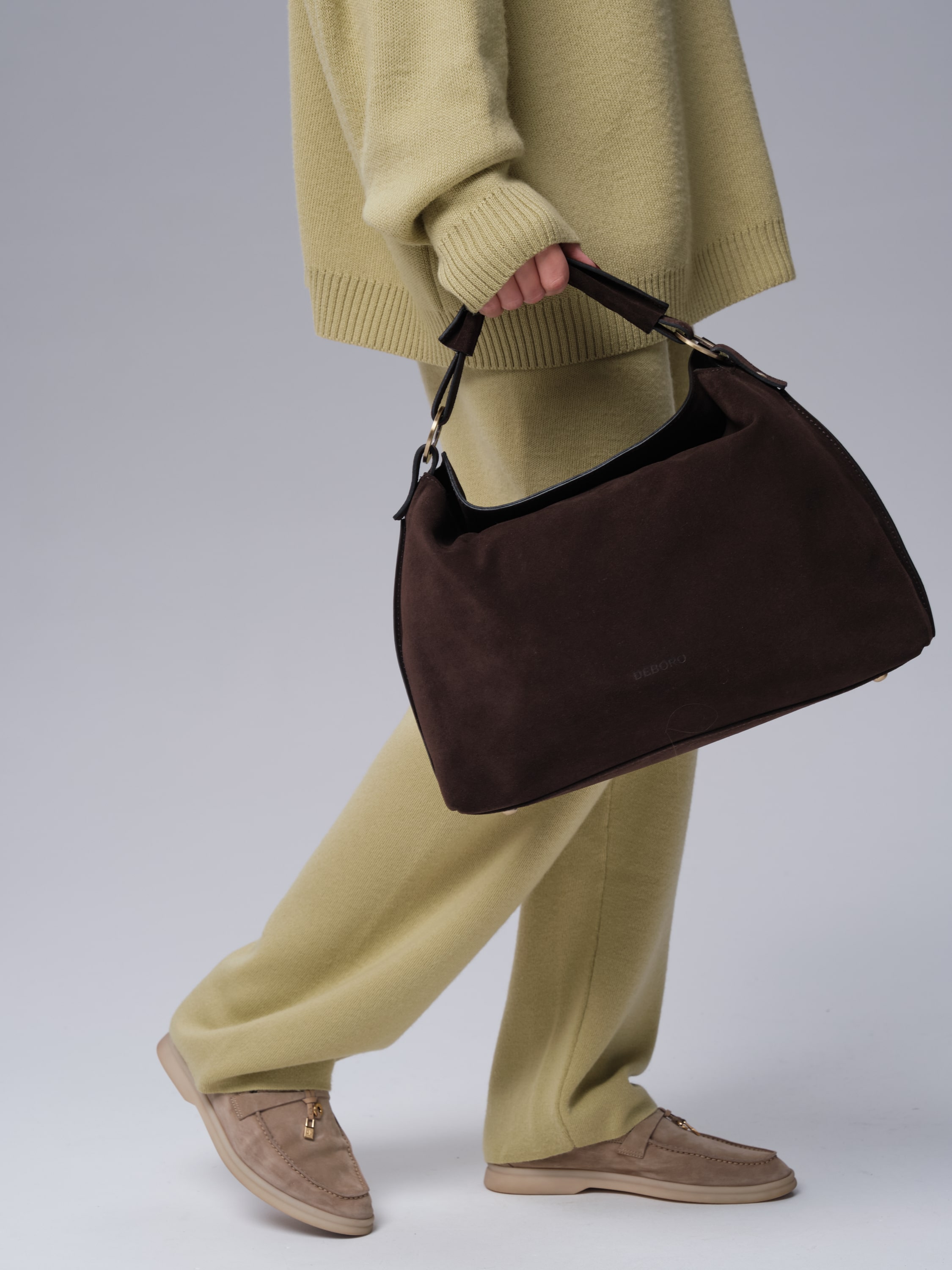 Изготовлена из высококачественной натуральной замши, она приятна на ощупь, прекрасно держит форму и со временем становится только красивее. Каждый шов, каждая линия продуманы до мелочей - это аксессуар, который не просто завершает образ, а делает его безупречным.