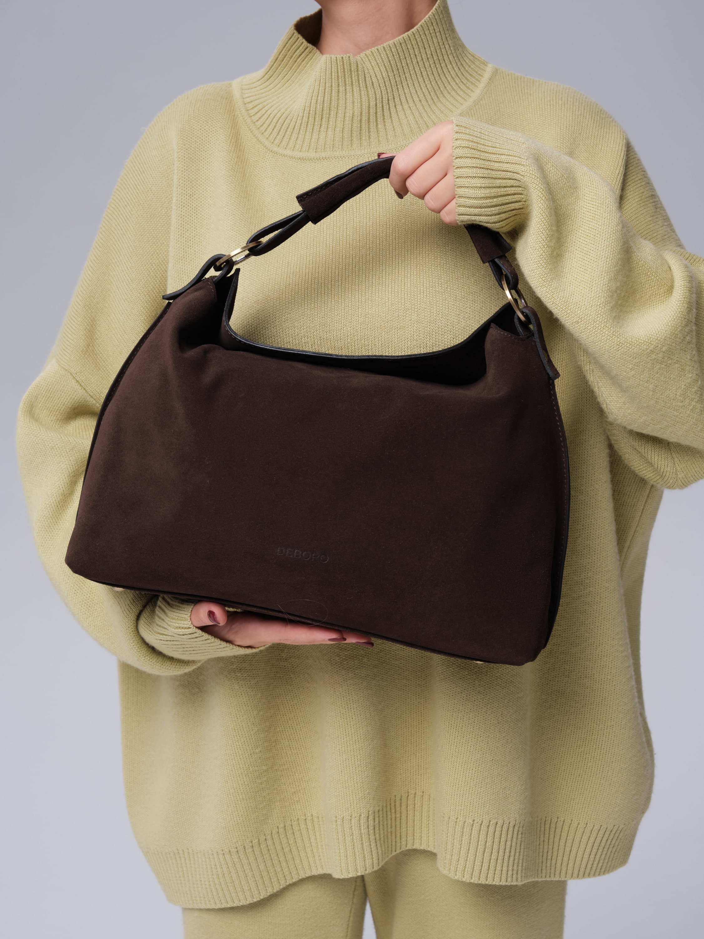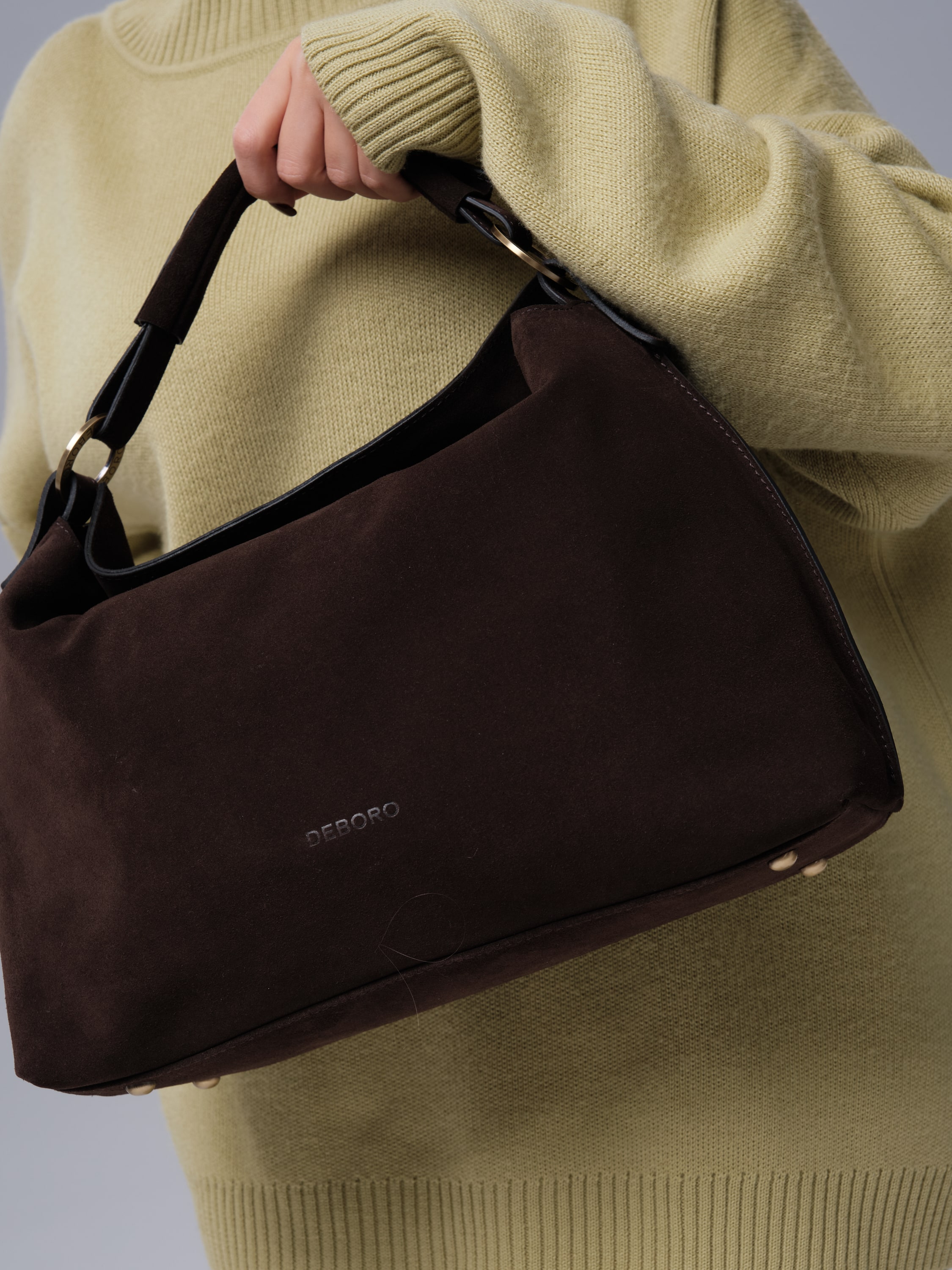 Замшевая женская сумка Deboro 30900 из натуральной замши в черном цвете. Эта замшевая сумка - воплощение современного стиля и утончённой элегантности. Мягкая, плавная форма хобо придаёт ей модный, расслабленный силуэт, который идеально сочетается как с повседневными, так и с более нарядными образами.