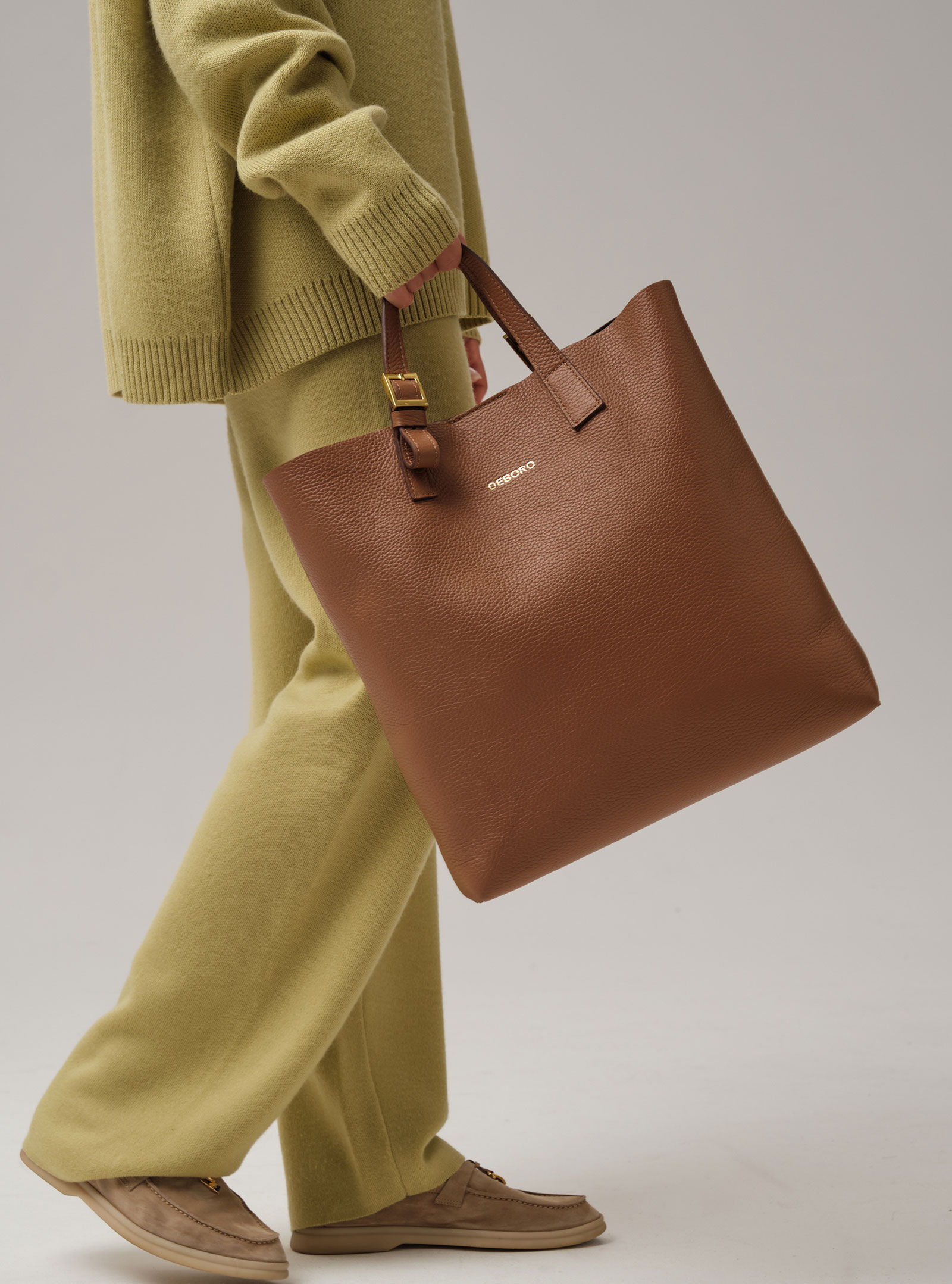 Женская кожаная сумка шоппер Deboro 30954 орех из натуральной кожи.
