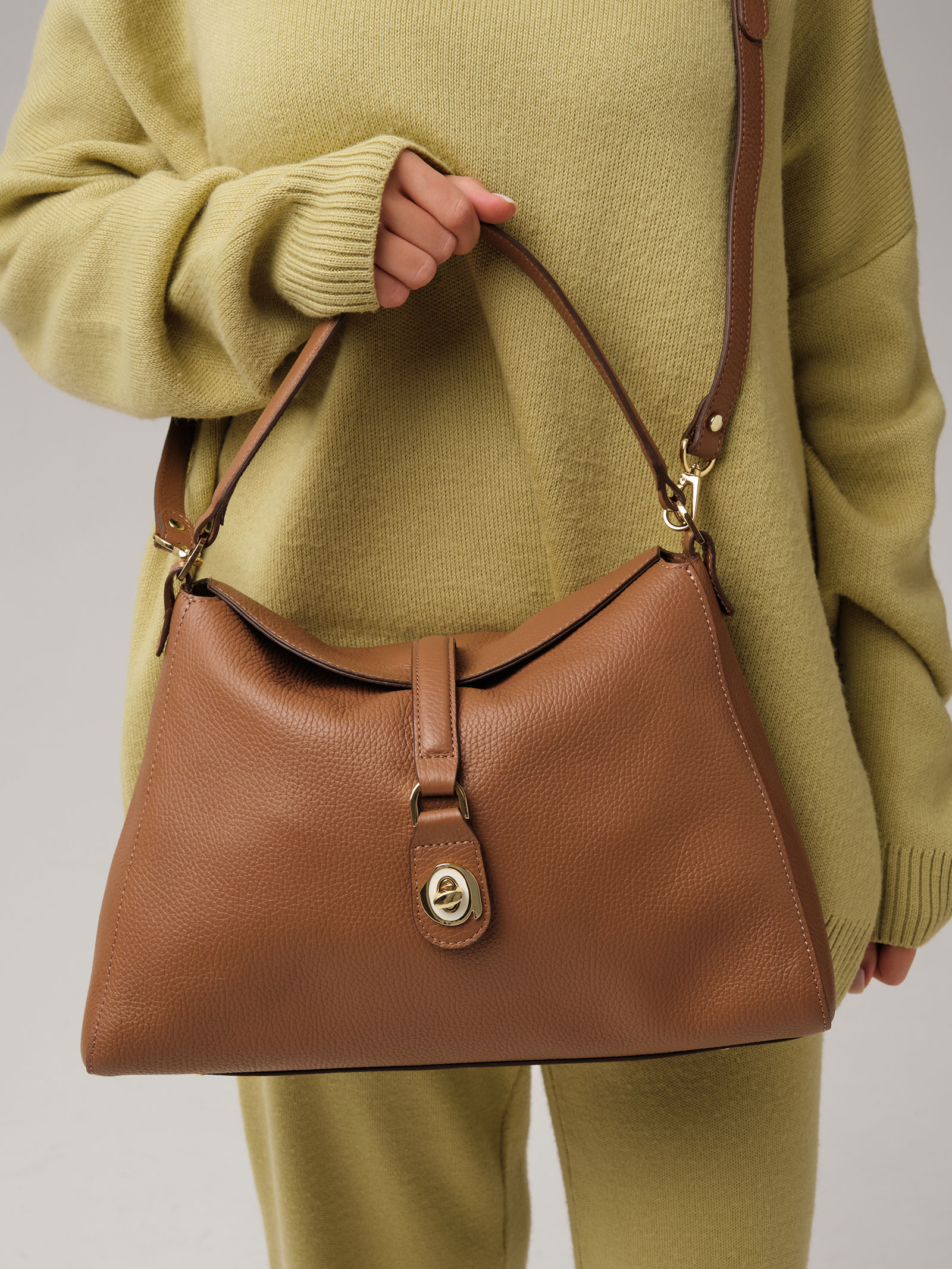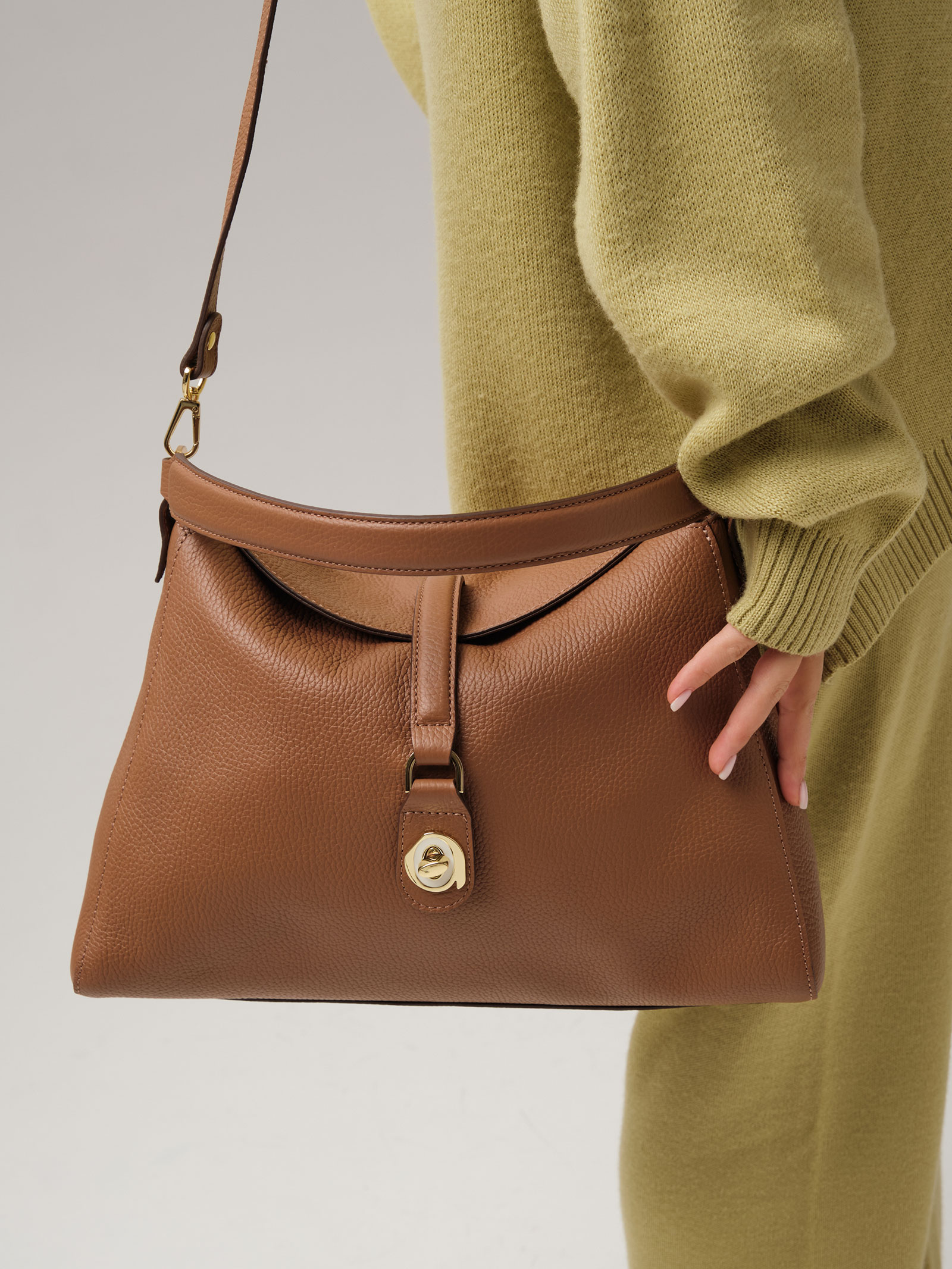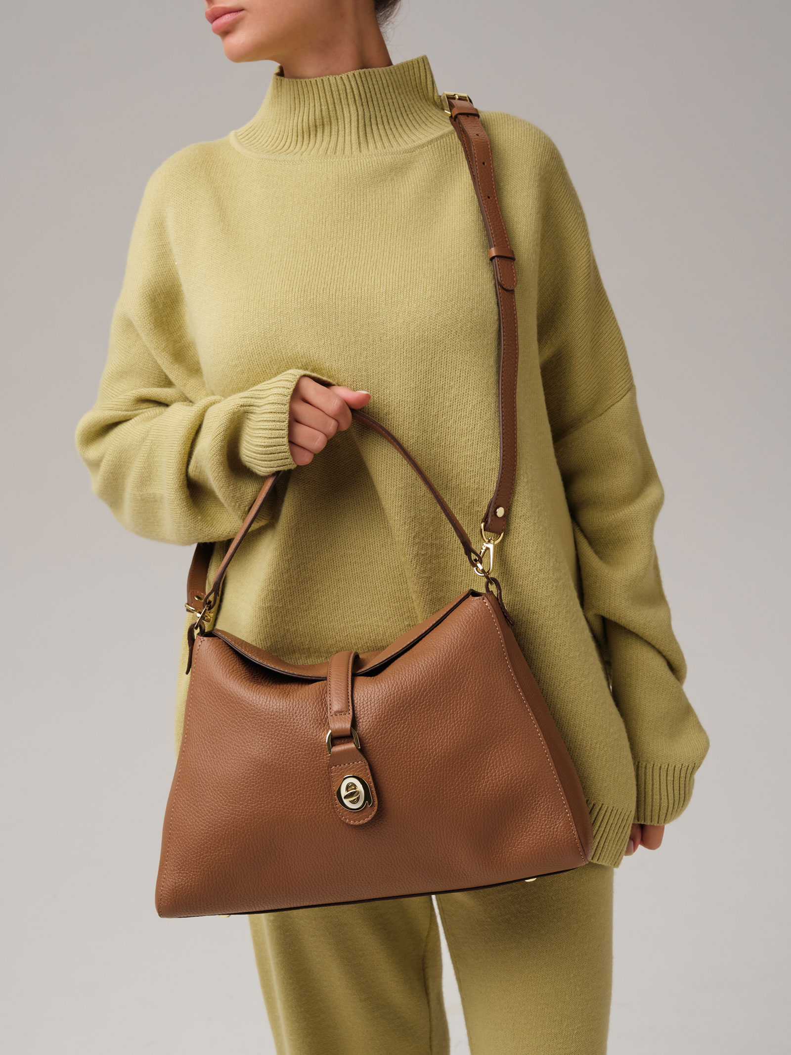 Женская кожаная сумка на плечо кросс-боди Azaro 30956 орех из натуральной кожи.