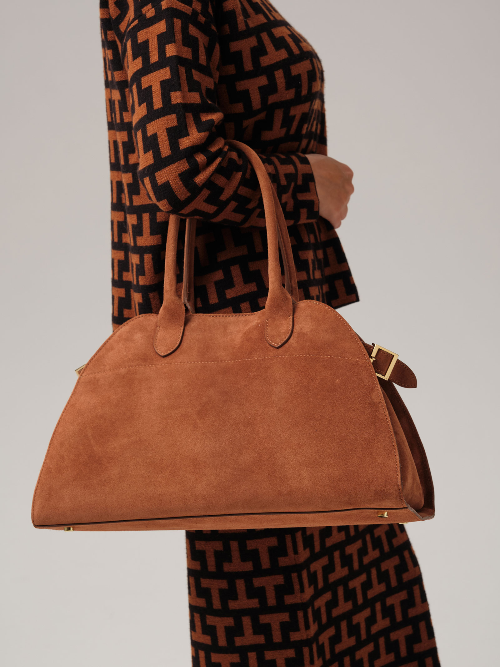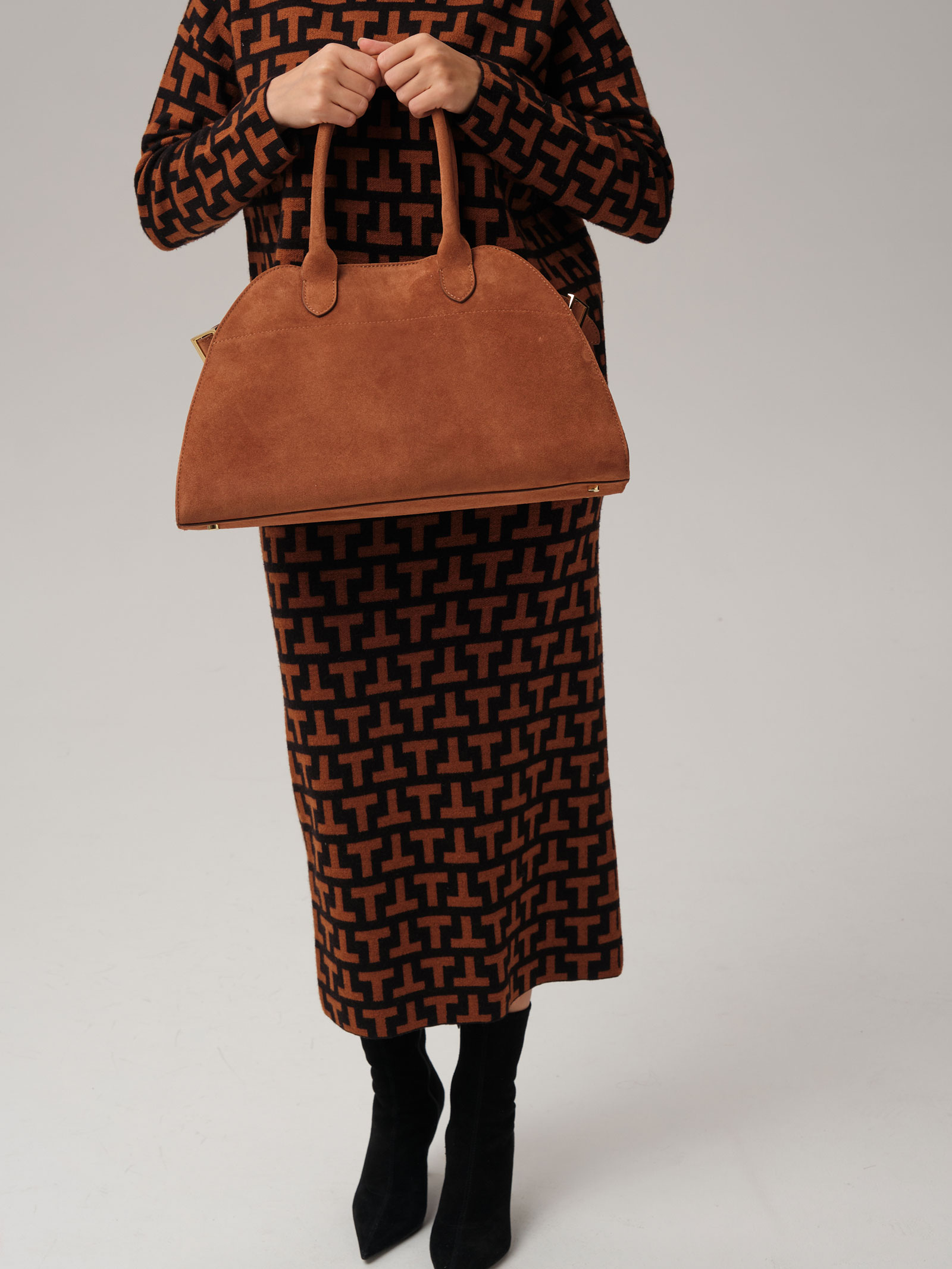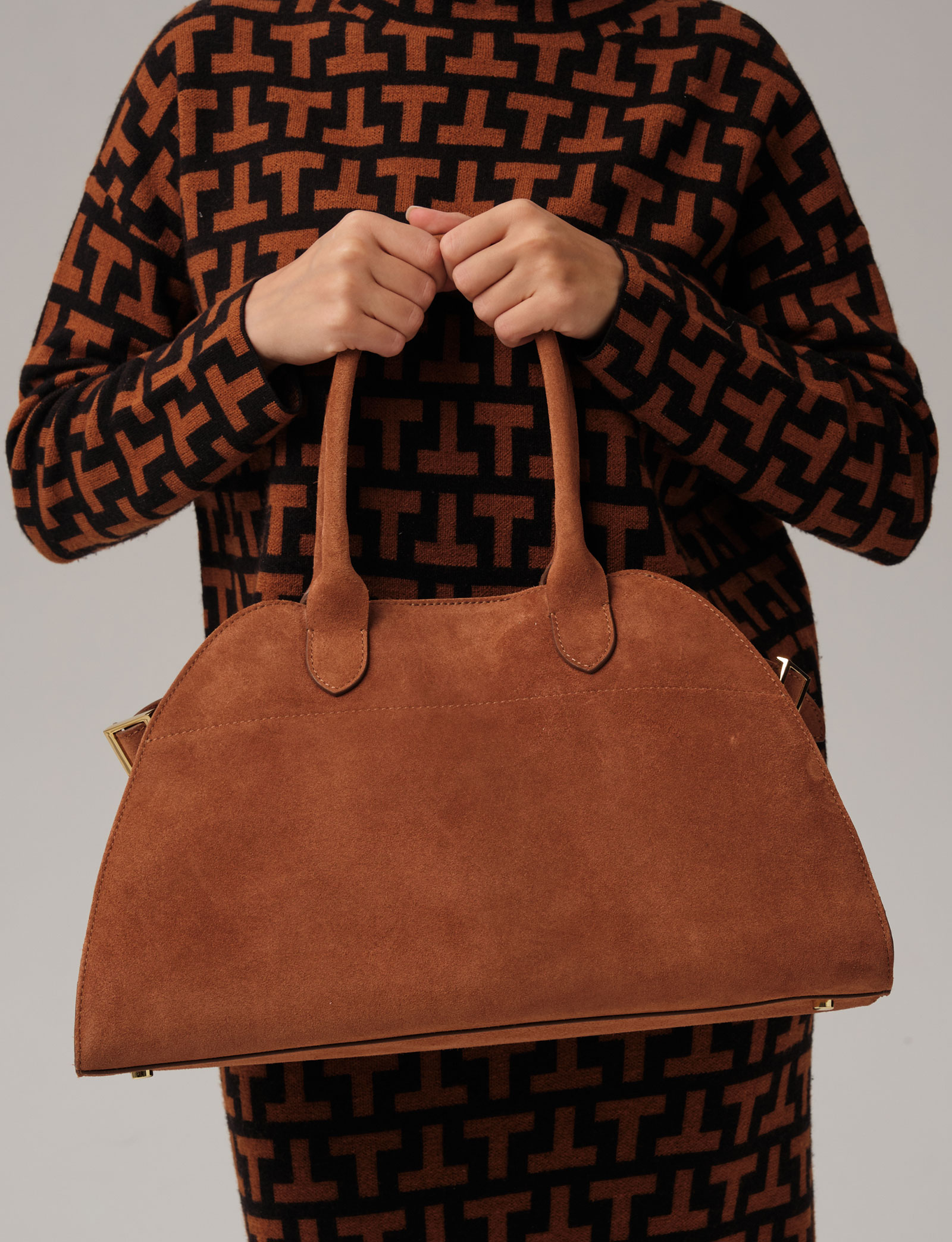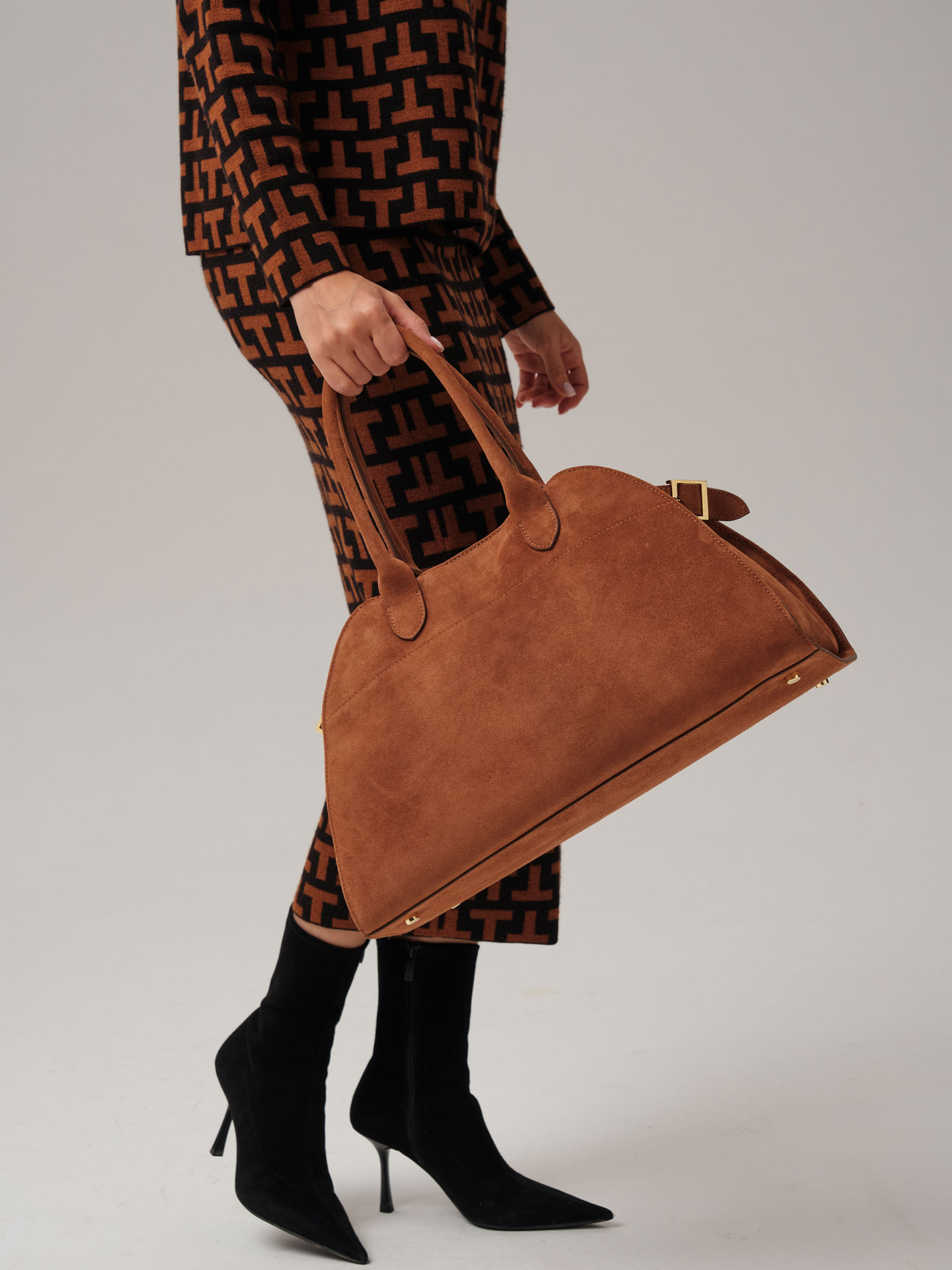 Женская замшевая сумка Deboro 30979 коричневый камыш из натуральной замши.
