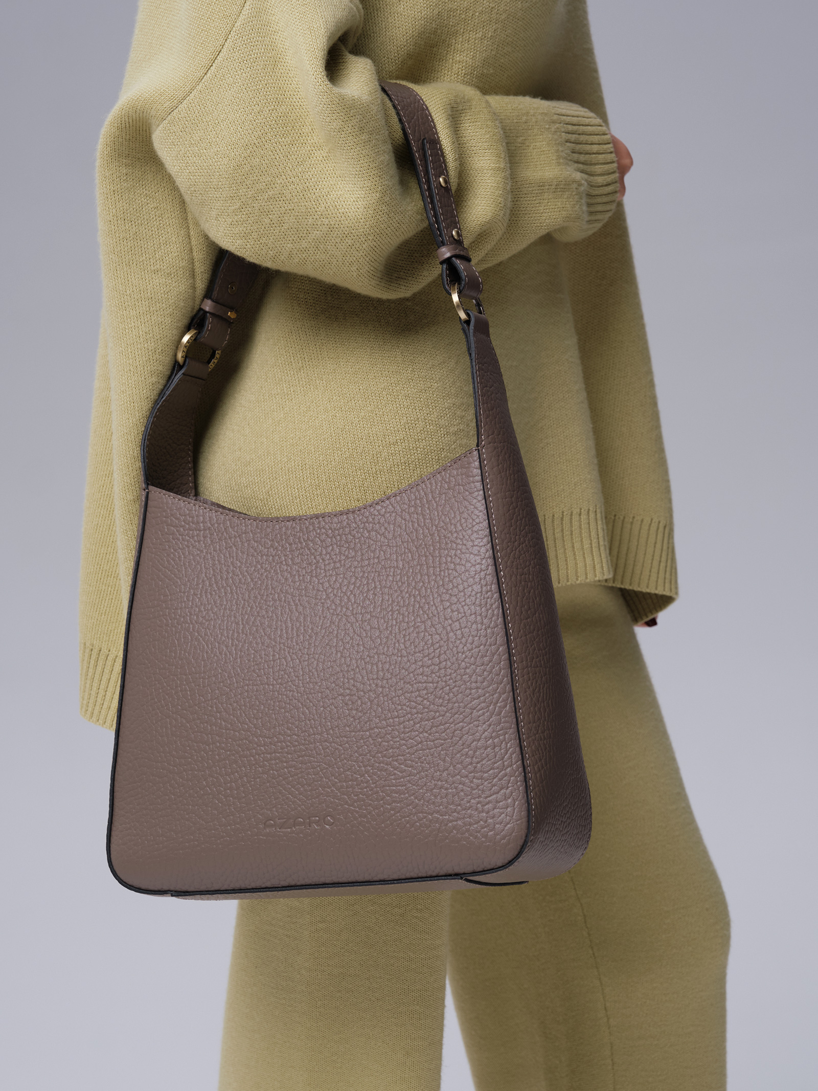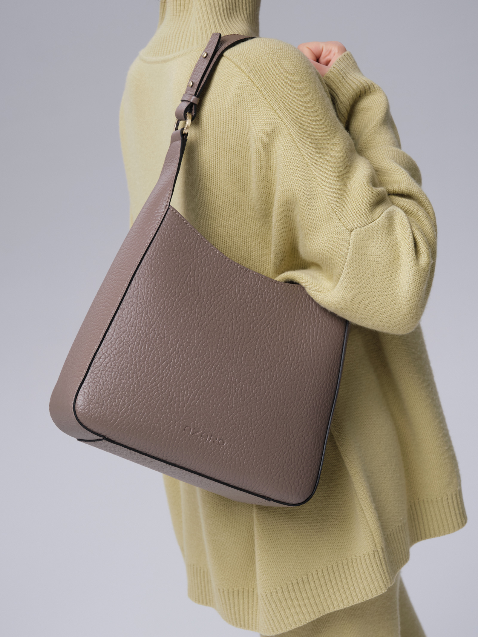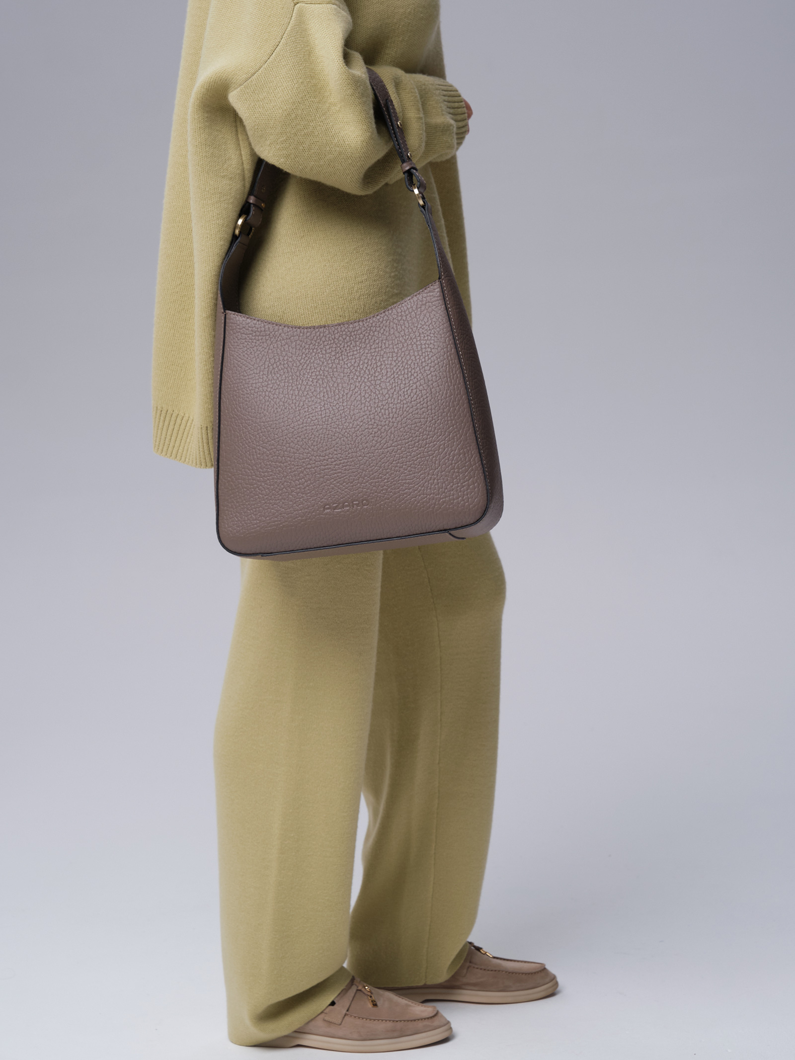 Женская кожаная сумка Azaro 31027 тауп/соло сочетает в себе лаконичность, вместительность и безупречное качество. Минималистичный, без лишних деталей дизайн с акцентом на качество материала и чистоту линий. Изготовлена из натуральной кожи с фактурной поверхностью - долговечного и благородного материала, который со временем становится только лучше. На нижнюю часть сумки нанесен логотип бренда.