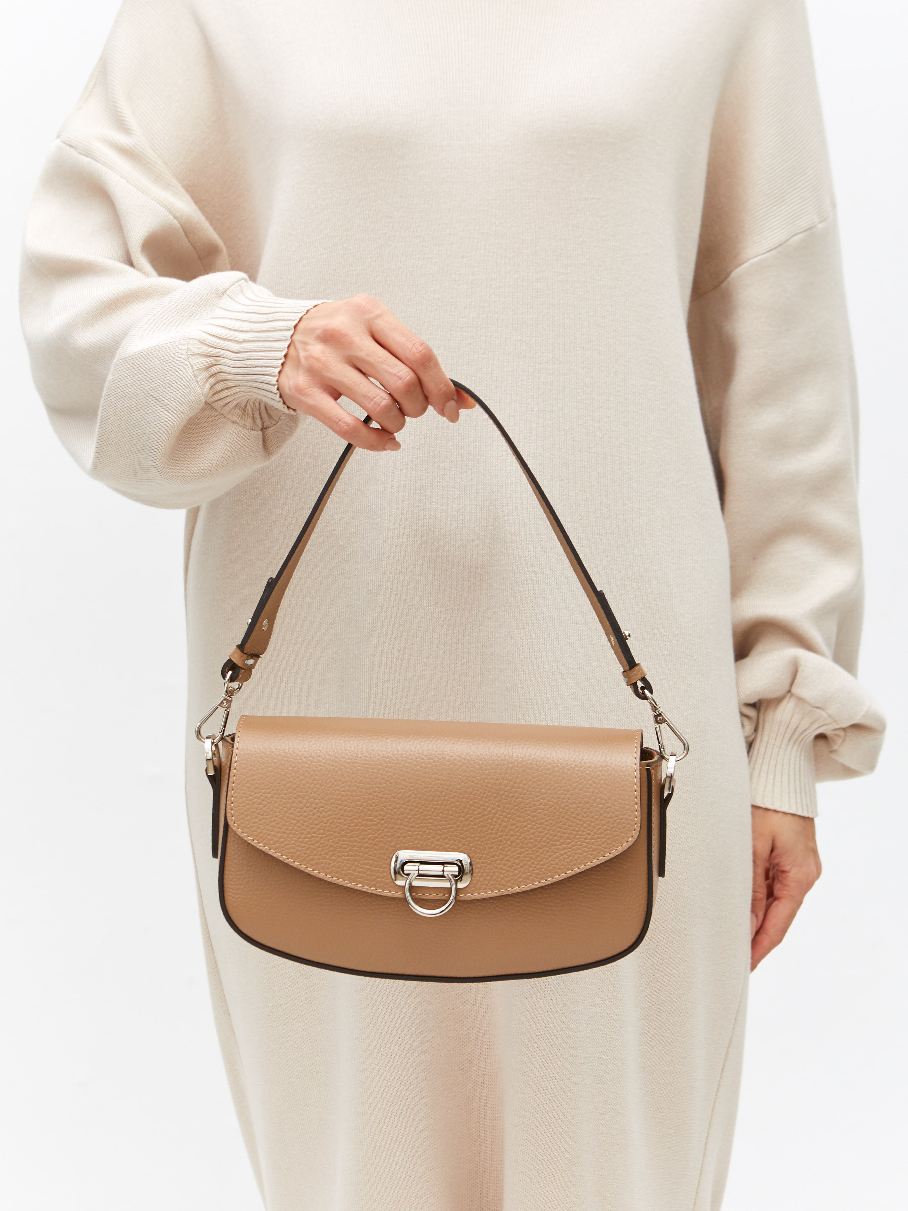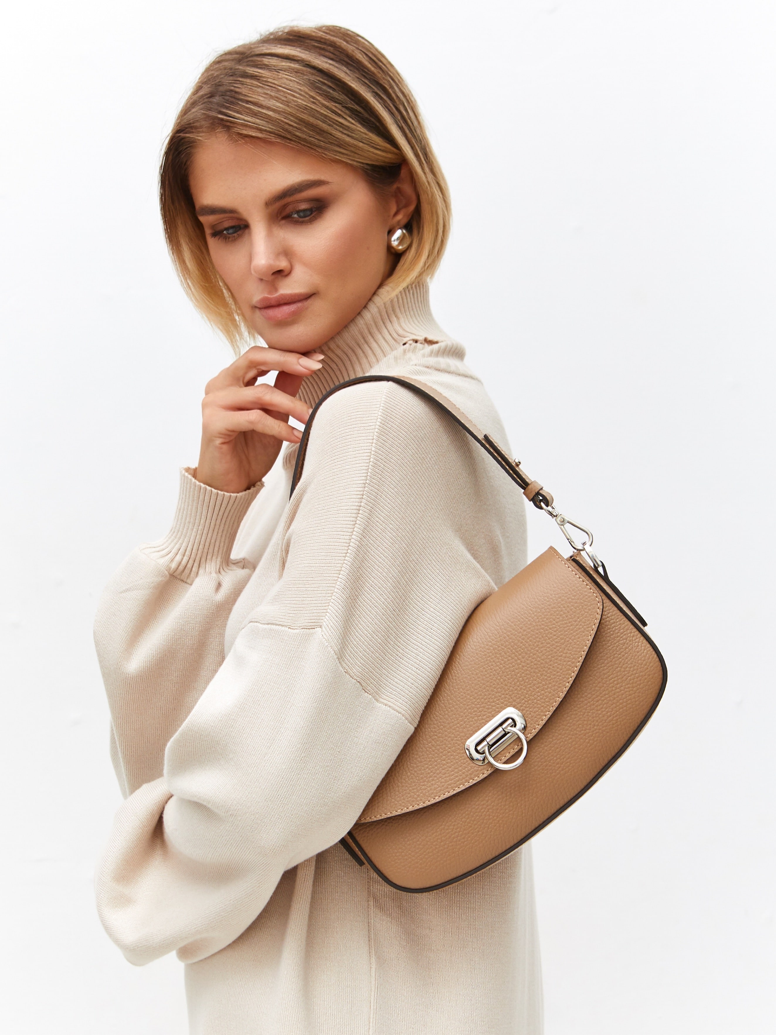Эта женская сумка выглядит очень актуально: лаконичный дизайн, плавные линии, аккуратный клапан с декоративной пряжкой - всё это делает ее универсальной. Универсальный коричневый цвет легко вписывается в любой гардероб и сочетается как с теплыми, так и с холодными тонами.