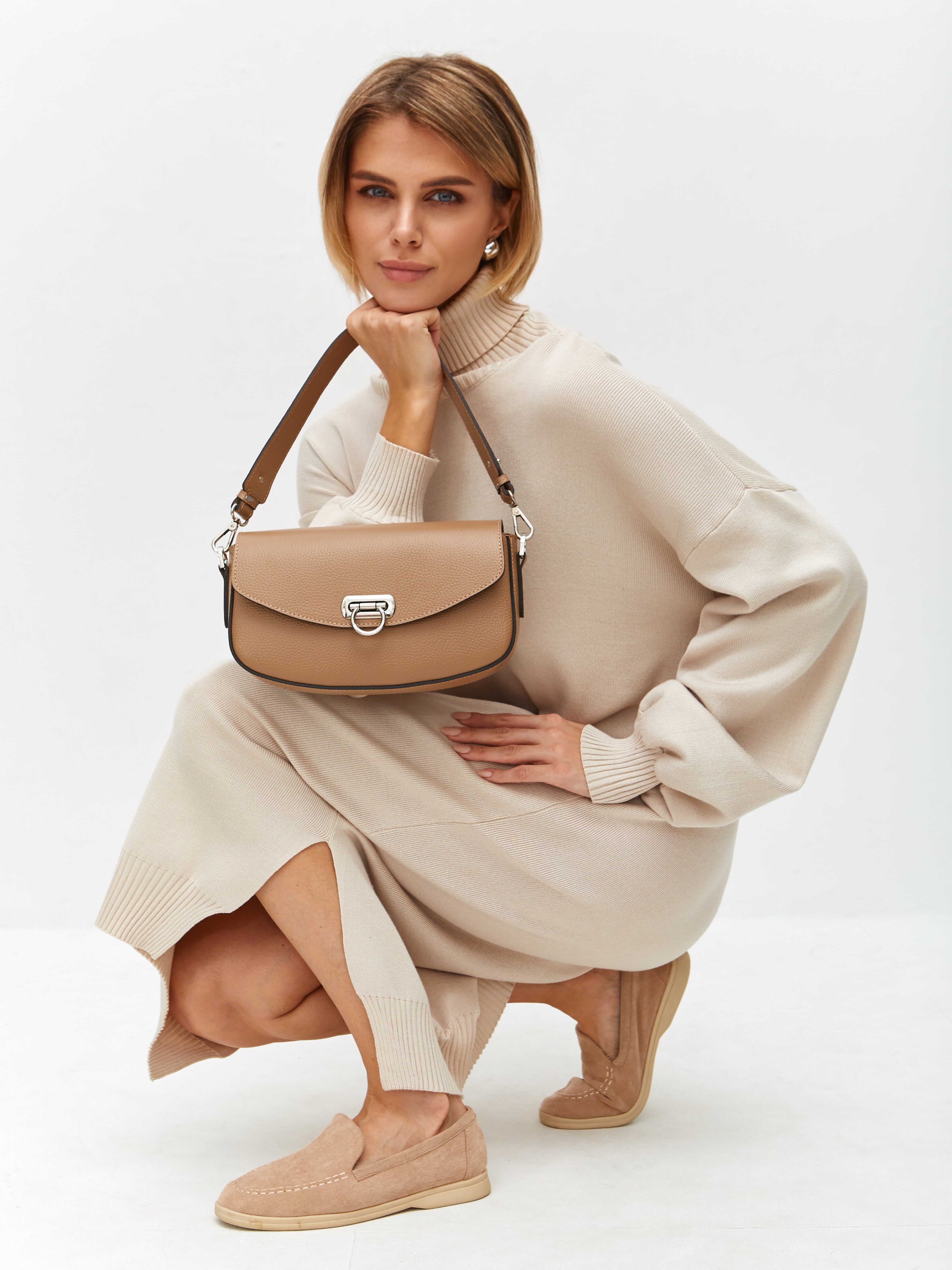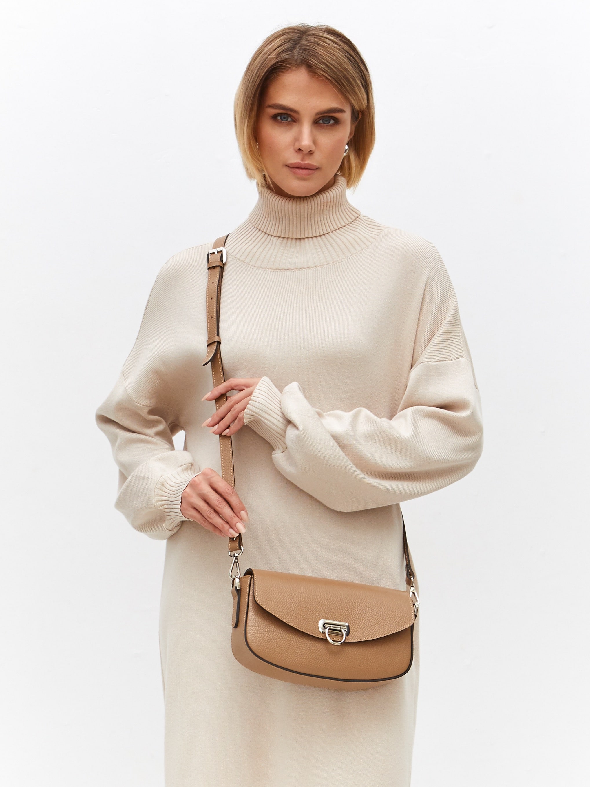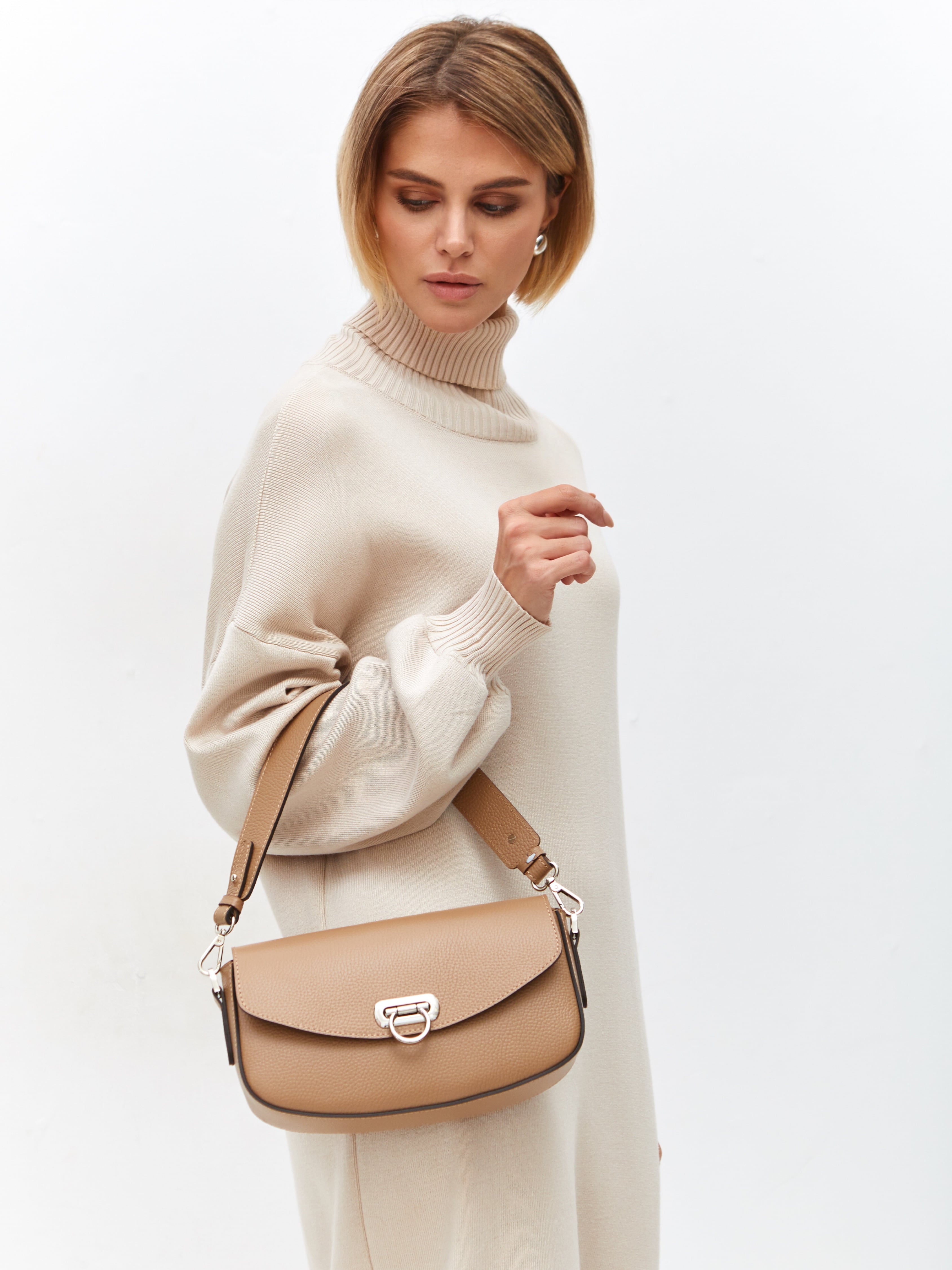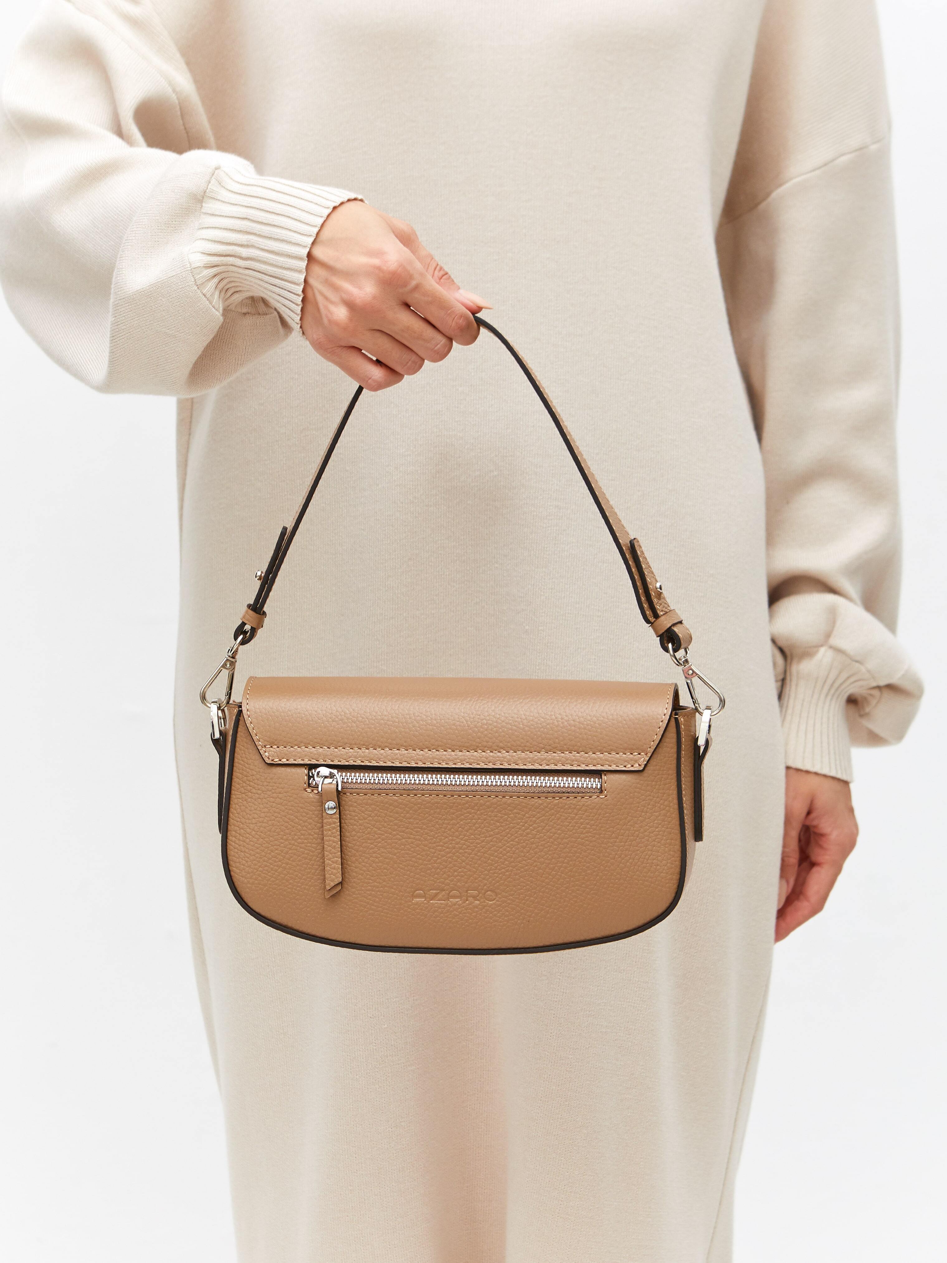 Женская кожаная сумка Azaro 31049 капучино - стильная и продуманная до мелочей модель из натуральной кожи. Два ремня в комплекте – длинный регулируемый, чтобы носить как кросс-боди через плечо, и более короткий, чтобы носить в руках, на плече или локте.