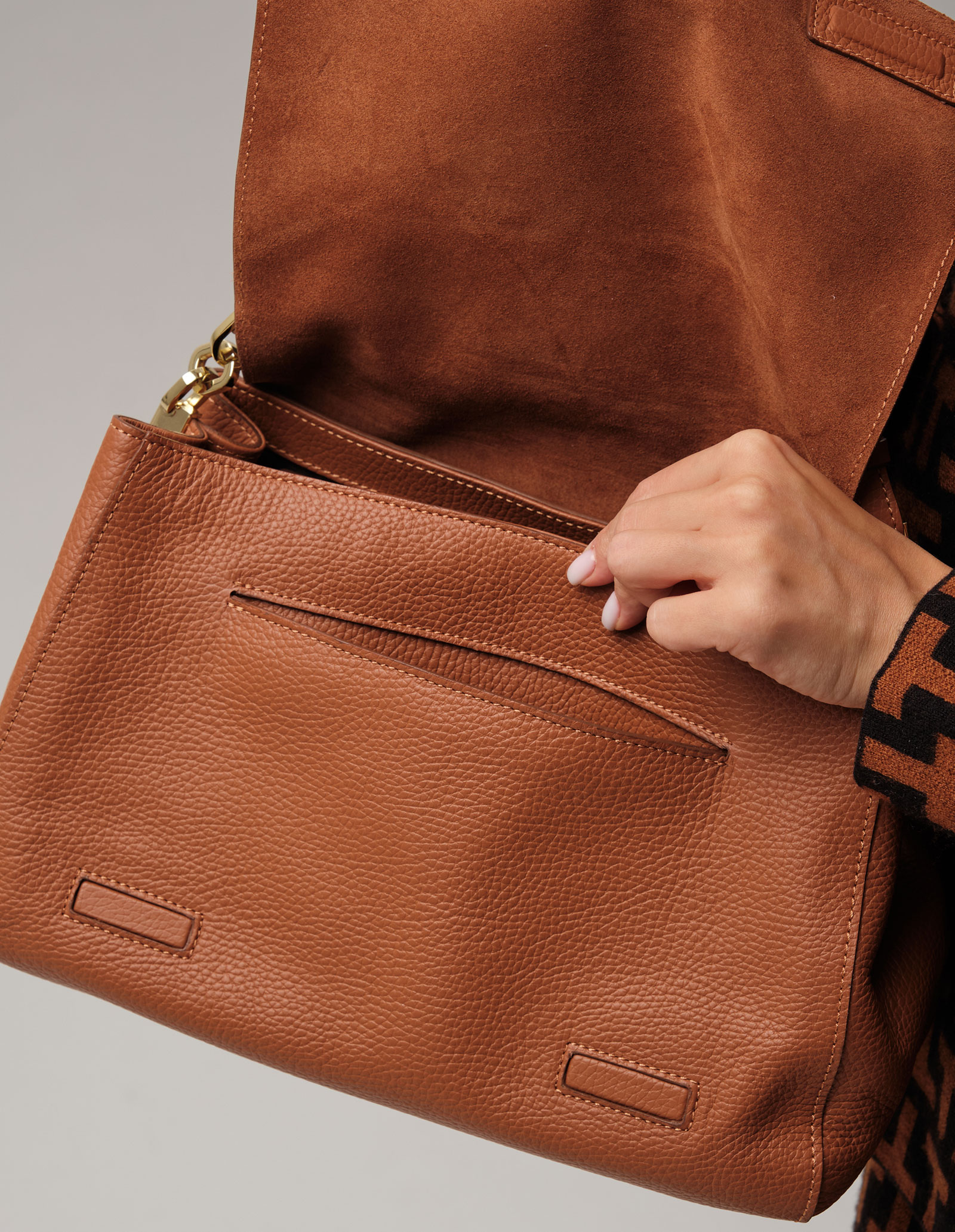 Детали: натуральная кожа, несъемная ручка, клапан на магните из натуральной замши, 2 внутренних отделения, хлопковая водонепроницаемая подкладка, 1 внутренний закрытый карман на молнии, 1 внешний открытый карман, съемный регулируемый плечевой ремень.