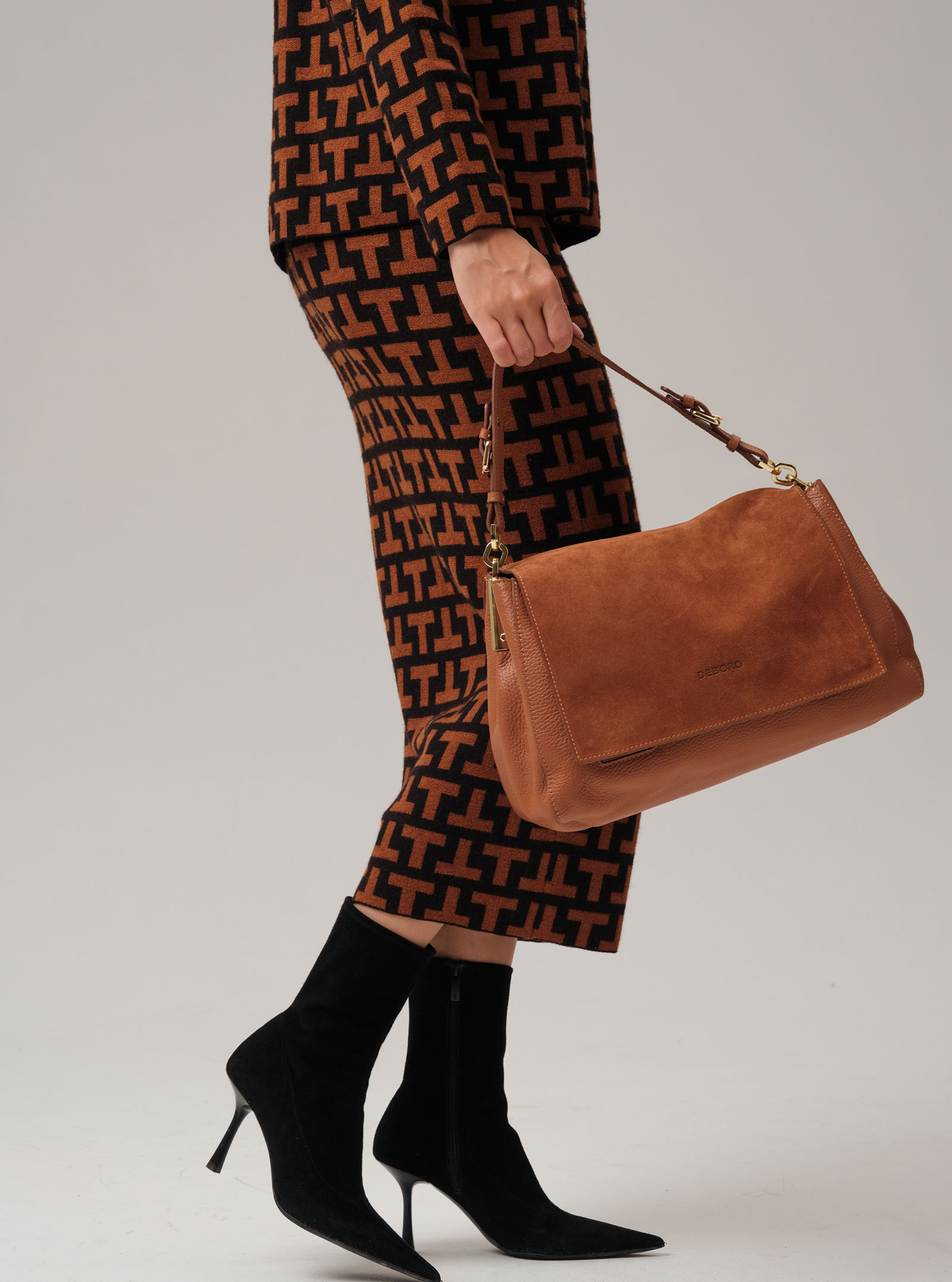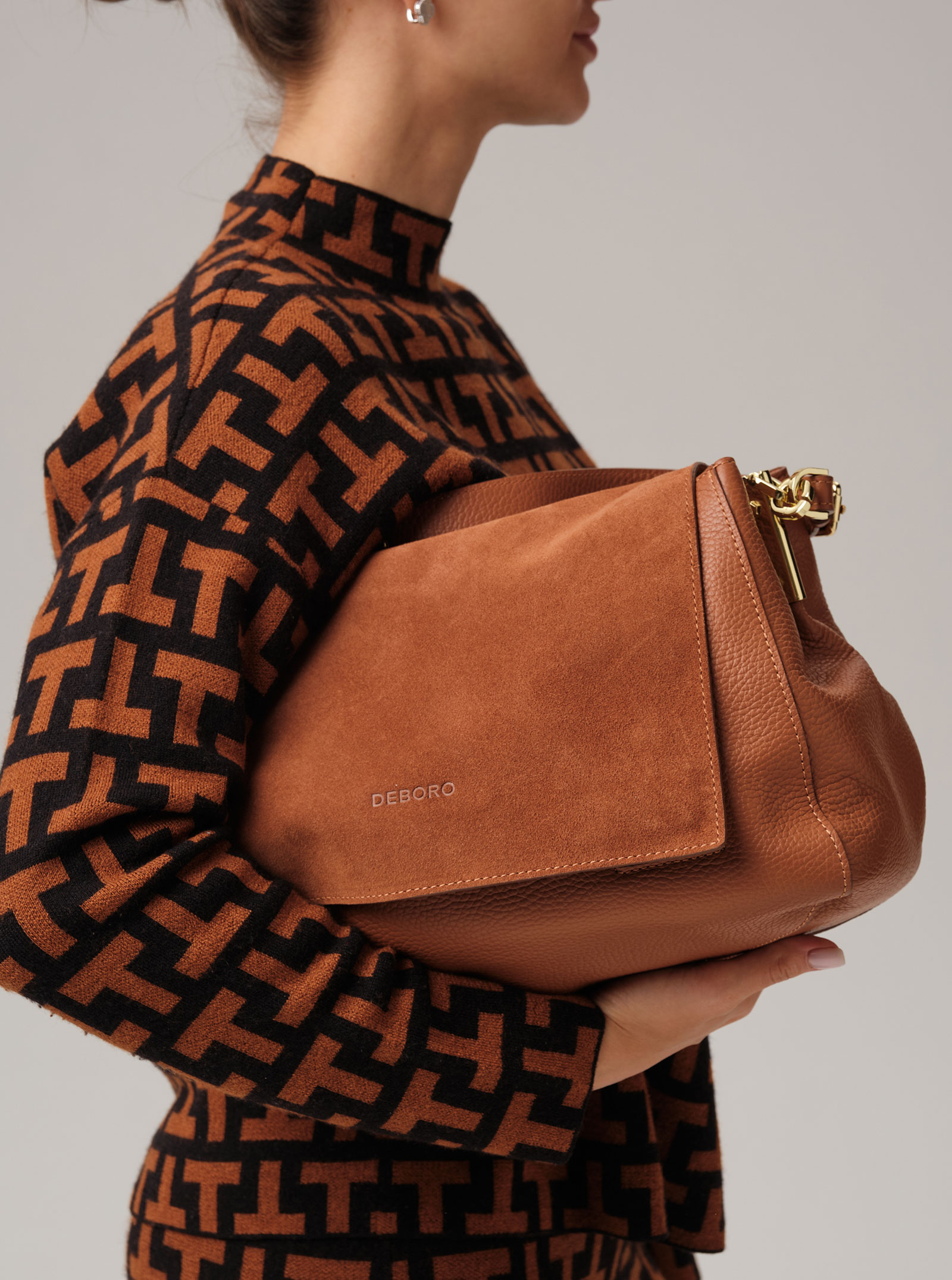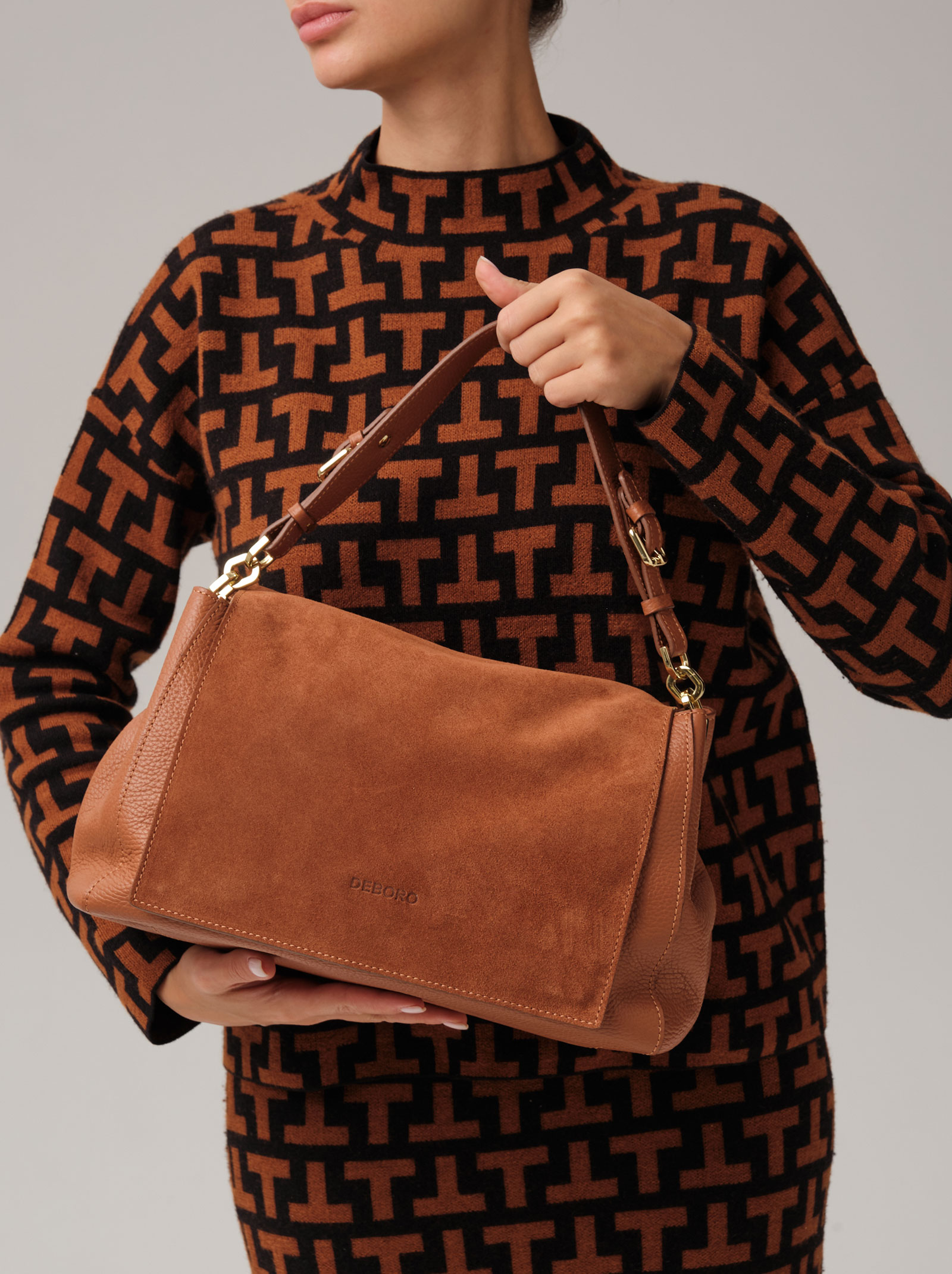 Женская сумка тоут Deboro 31066 коричневый камень из натуральной замши и кожи.