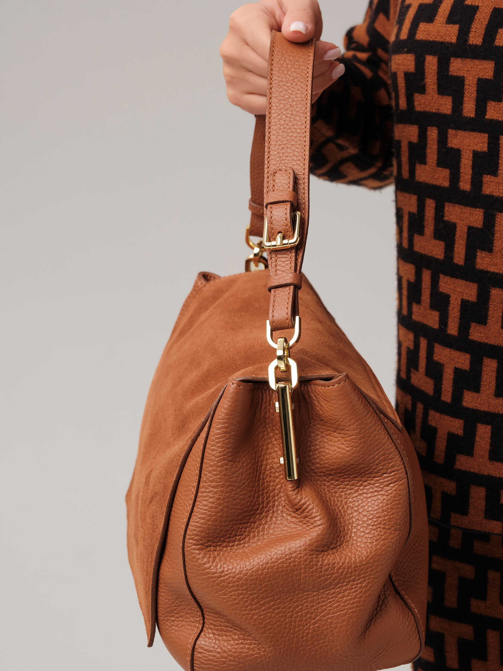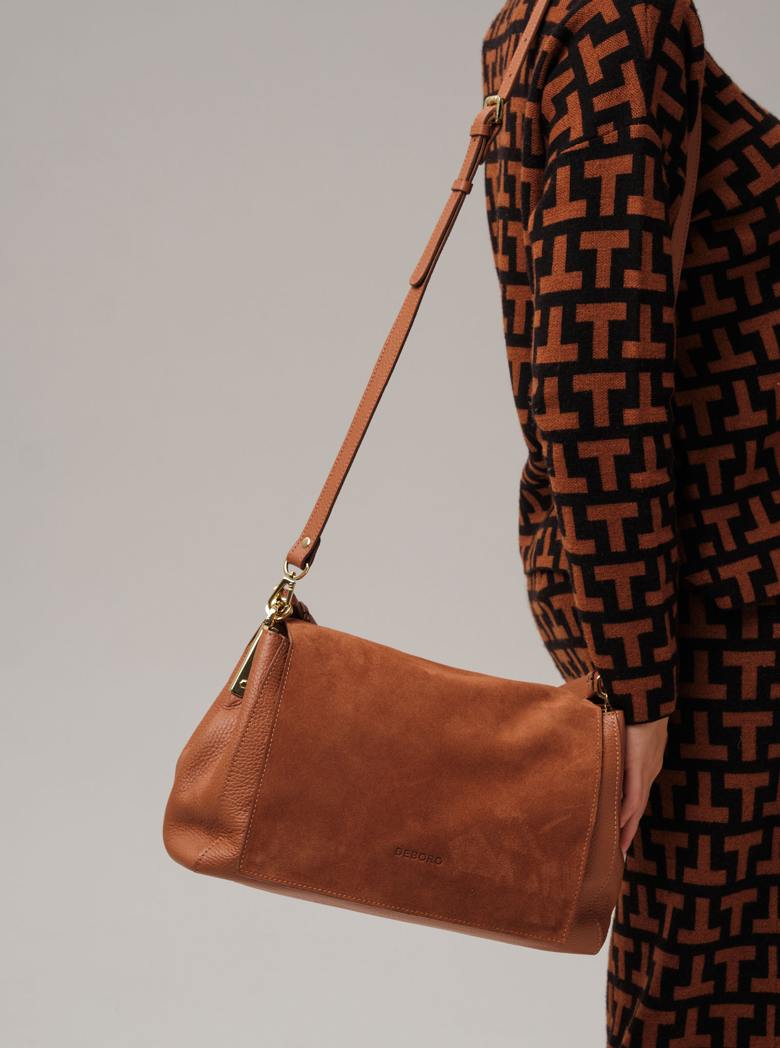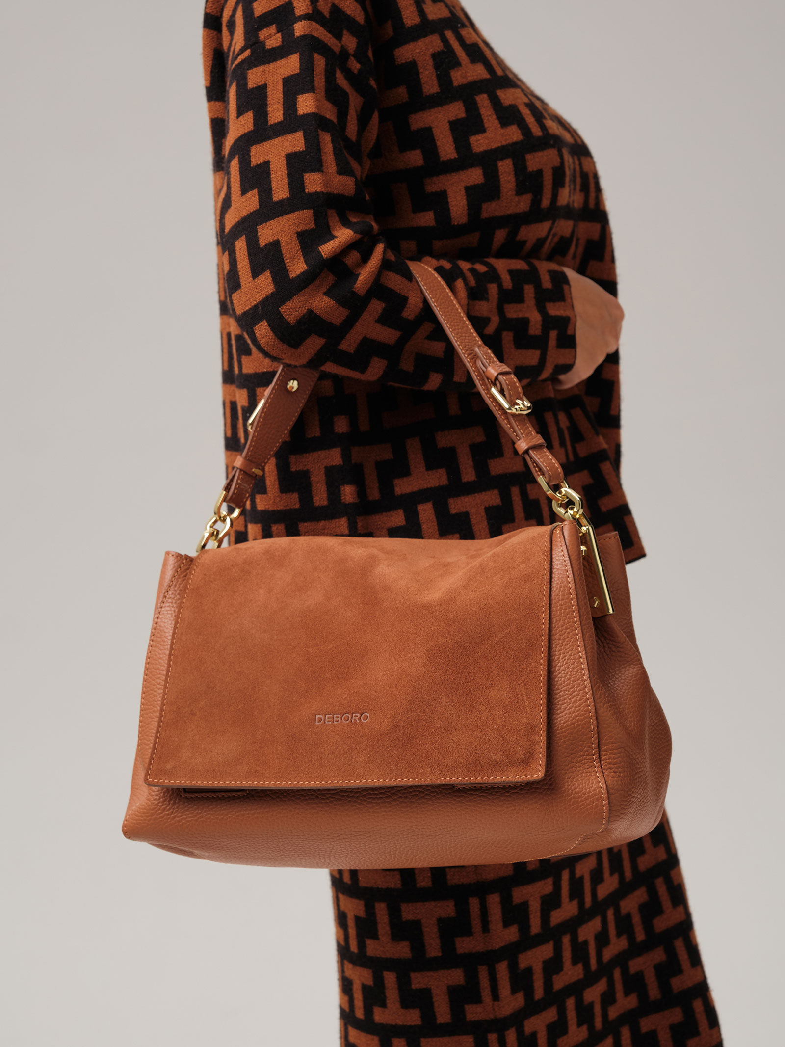Женская сумка тоут Deboro 31066 коричневый камень из натуральной замши и кожи.