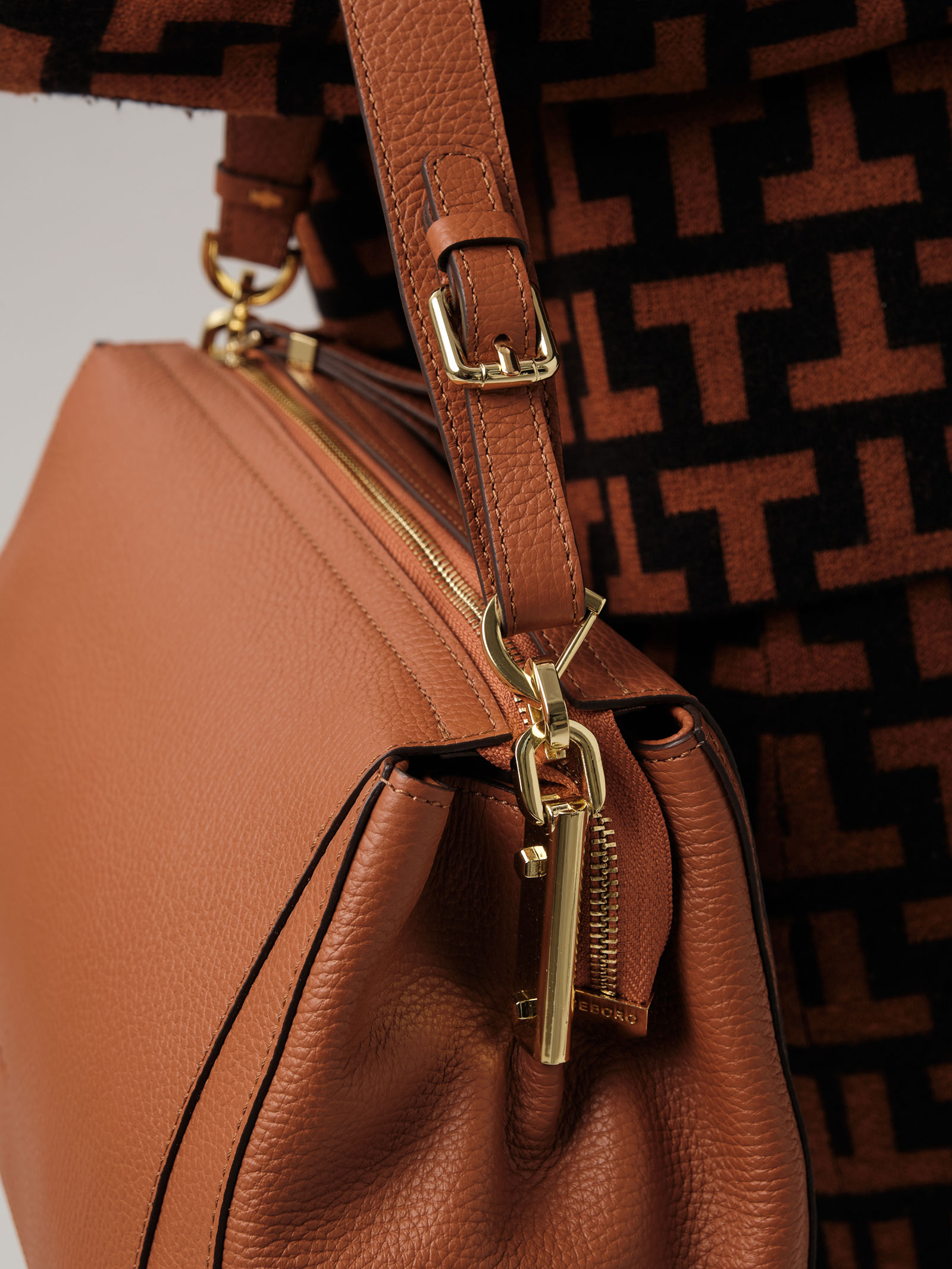 Детали: натуральная кожа, 2 внутренних отделения на хлопковой водонепроницаемой подкладке, застежка на металлическую молнию с кожаным пуллером, 1 внутренний закрытый карман на молнии, 2 внутренних боковых открытых кармана, несъемный нерегулируемый короткий ремень, съемный регулируемый плечевой ремень, .