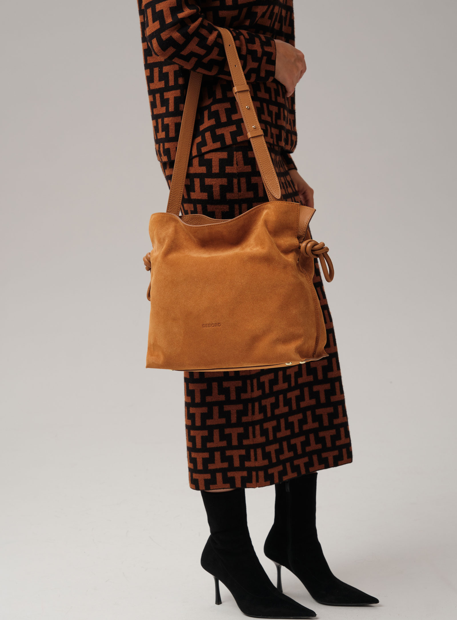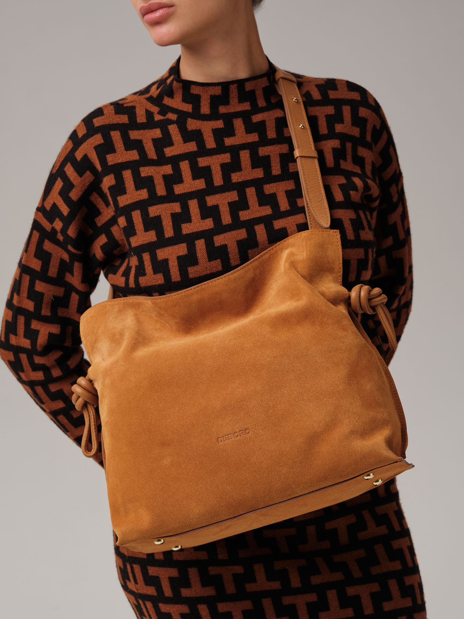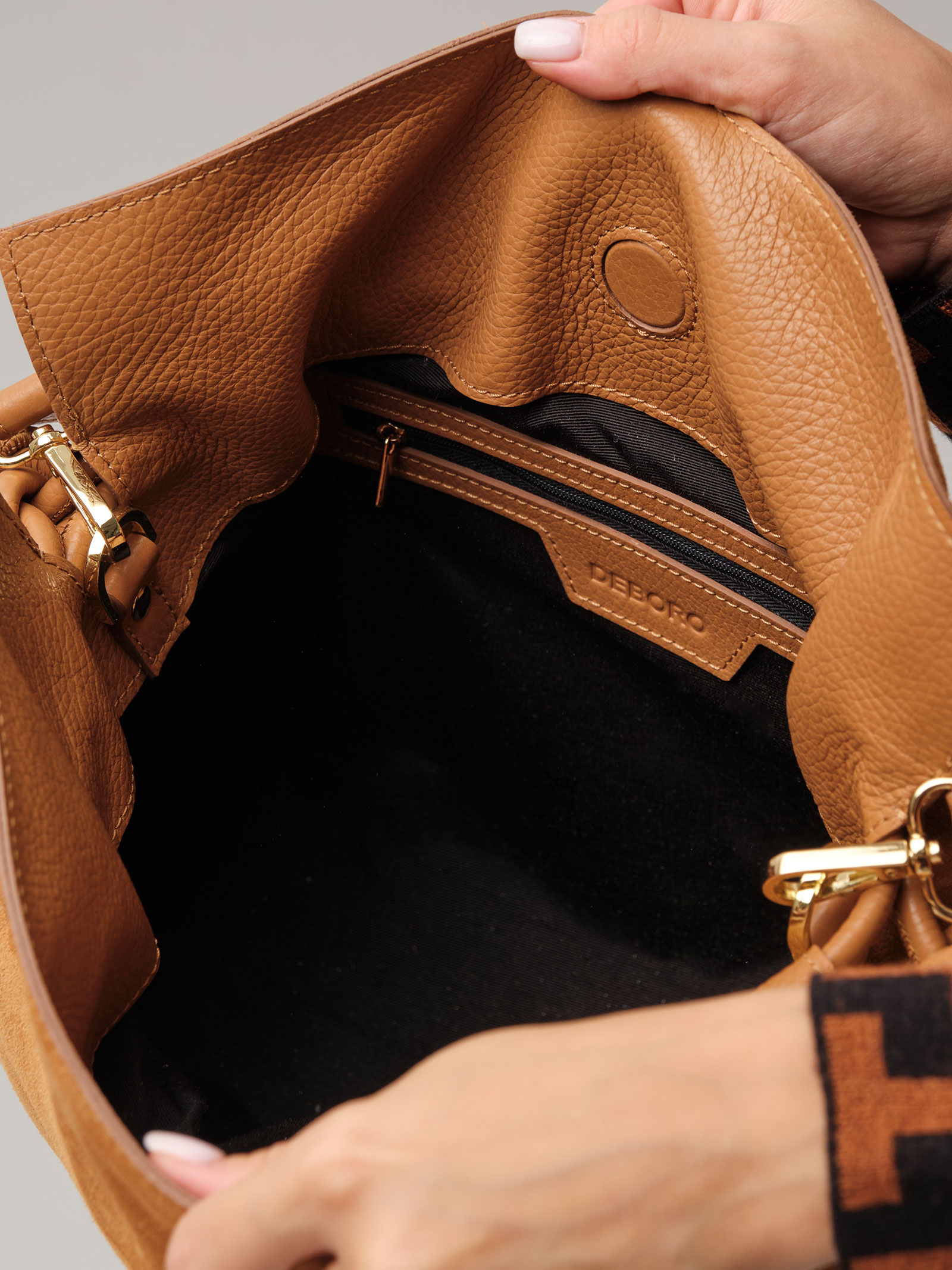 Детали: натуральная замша, натуральная кожа, 1 внутреннее отделение на хлопковой водонепроницаемой подкладке, 1 внутренний закрытый карман на молнии, застежка на магнит, обтянутый натуральной кожей, утяжка на кожаном ремешке, съемный регулируемый плечевой ремень, металлические ножки.