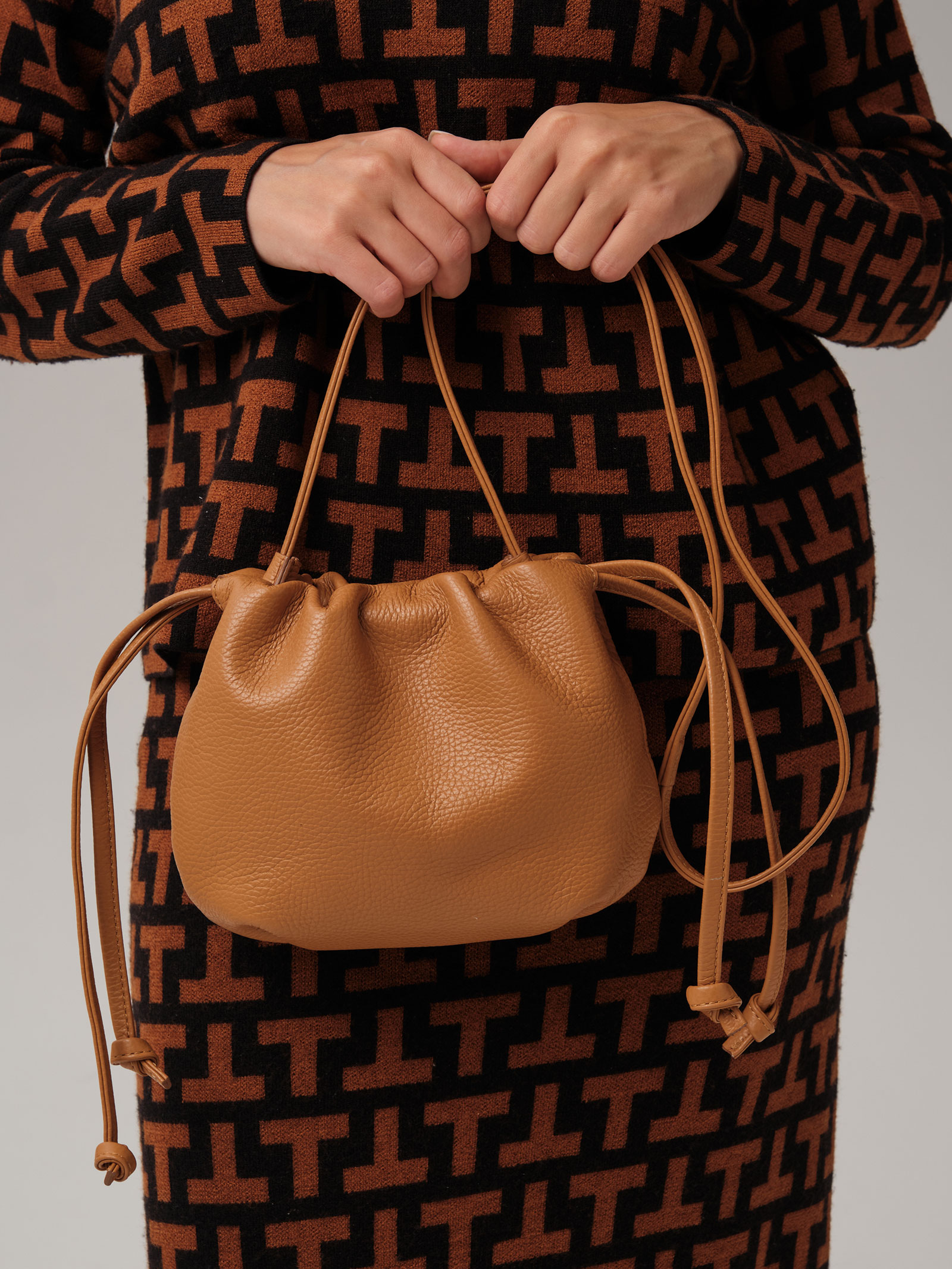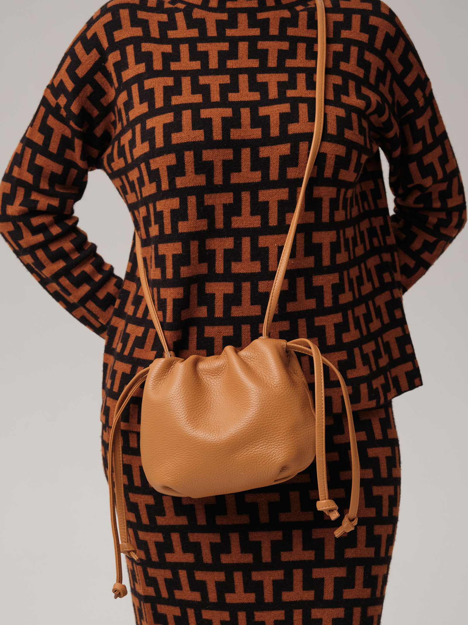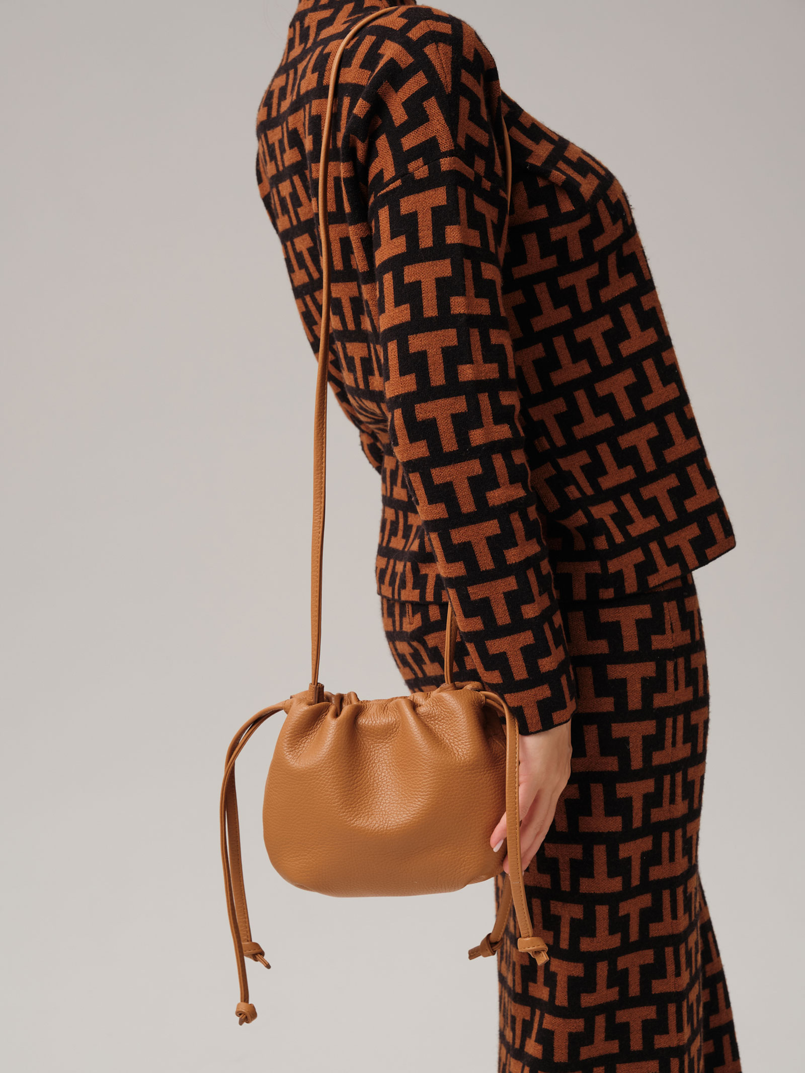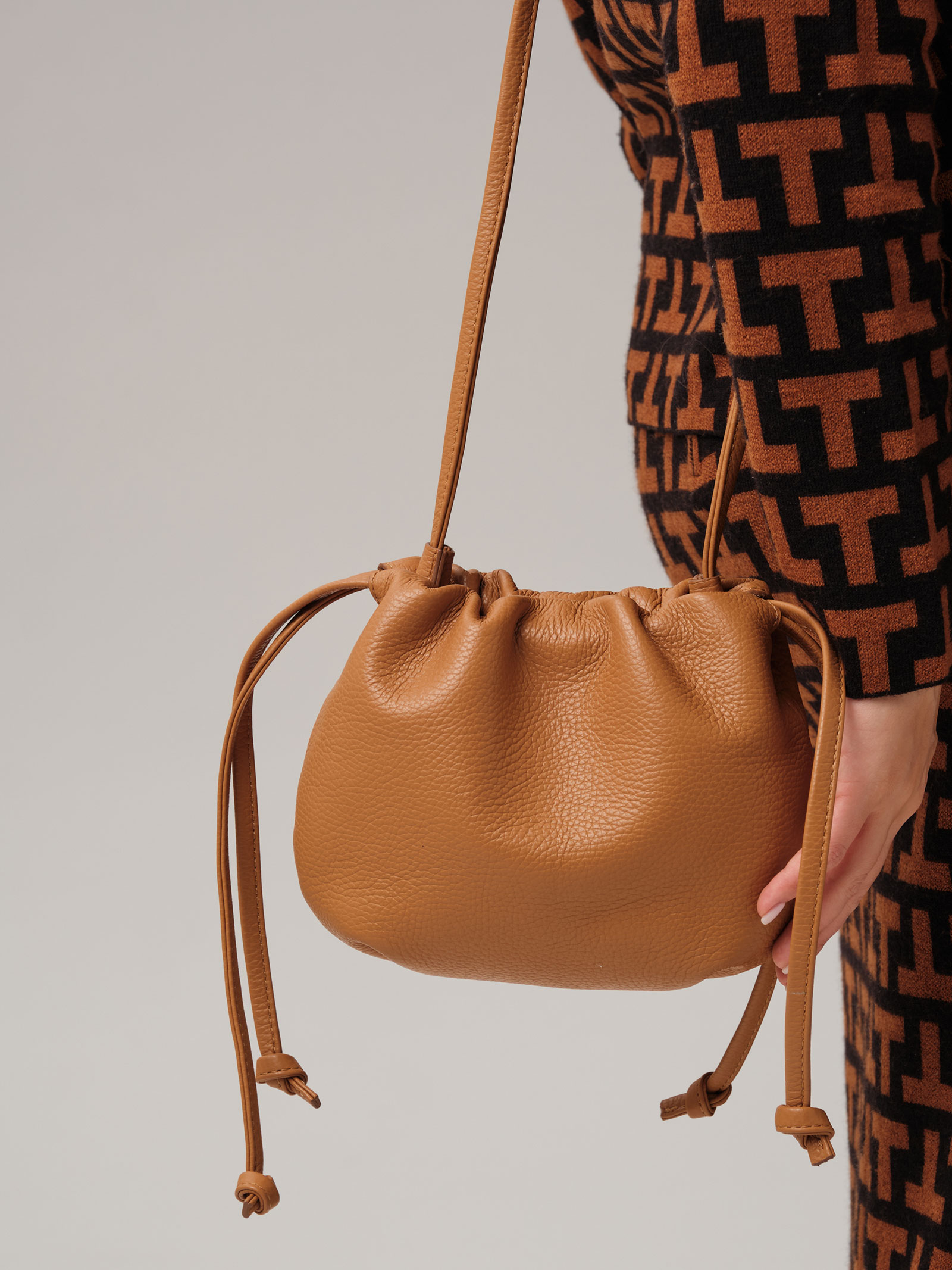 Детали: натуральная кожа, 1 внутреннее отделение на хлопковой водонепроницаемой подкладке, застежка на магнит, обтянутый натуральной кожей, утяжка на кожаном ремешке, несъемный нерегулируемый плечевой ремень.