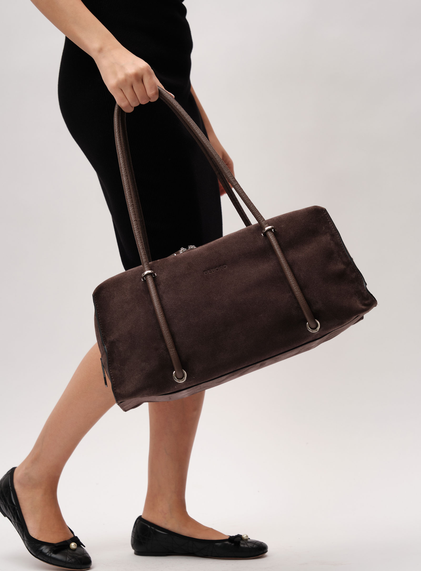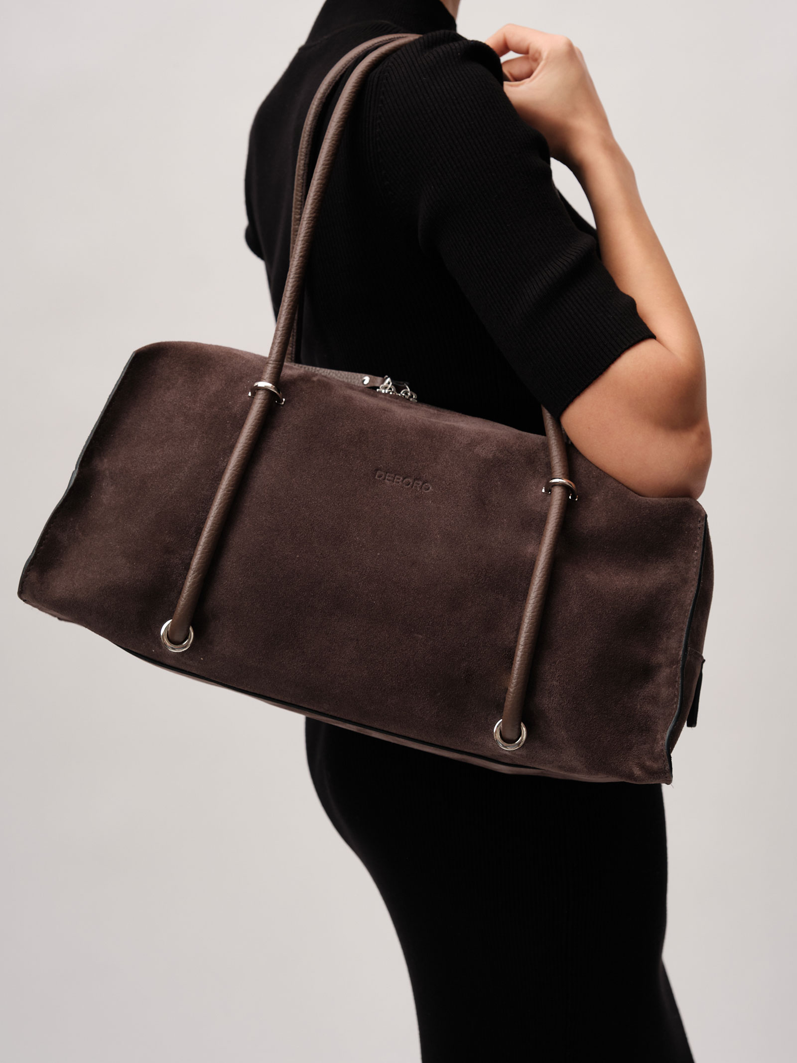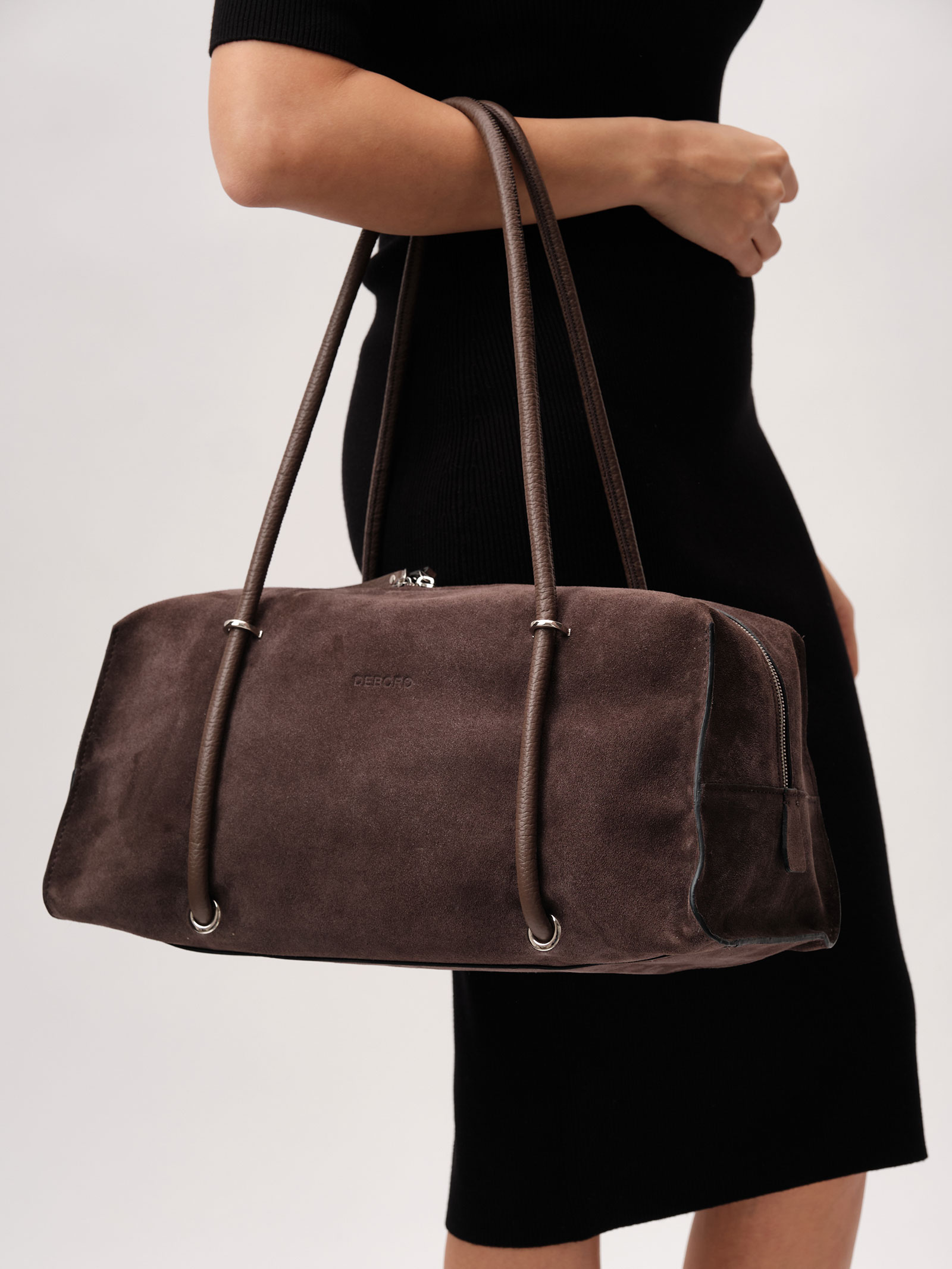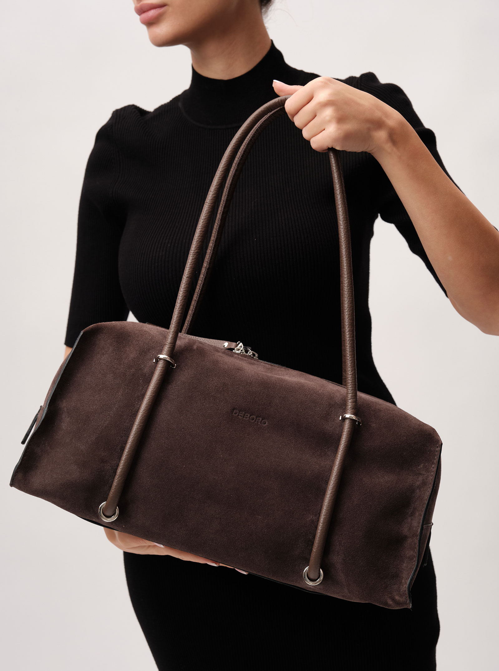Женская замшевая сумка тоут Deboro 31151 коричневый шоколад велюр из натуральной кожи и замши.