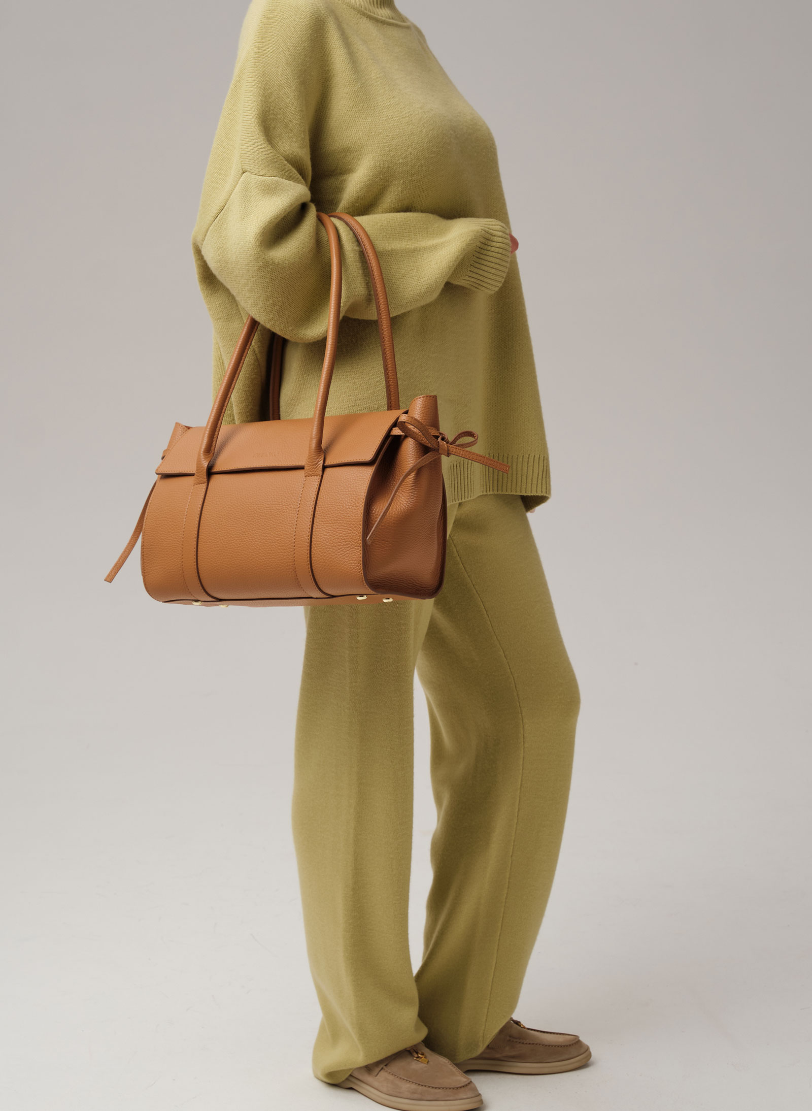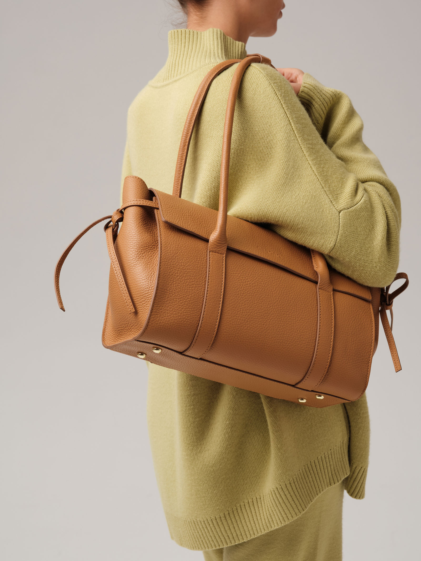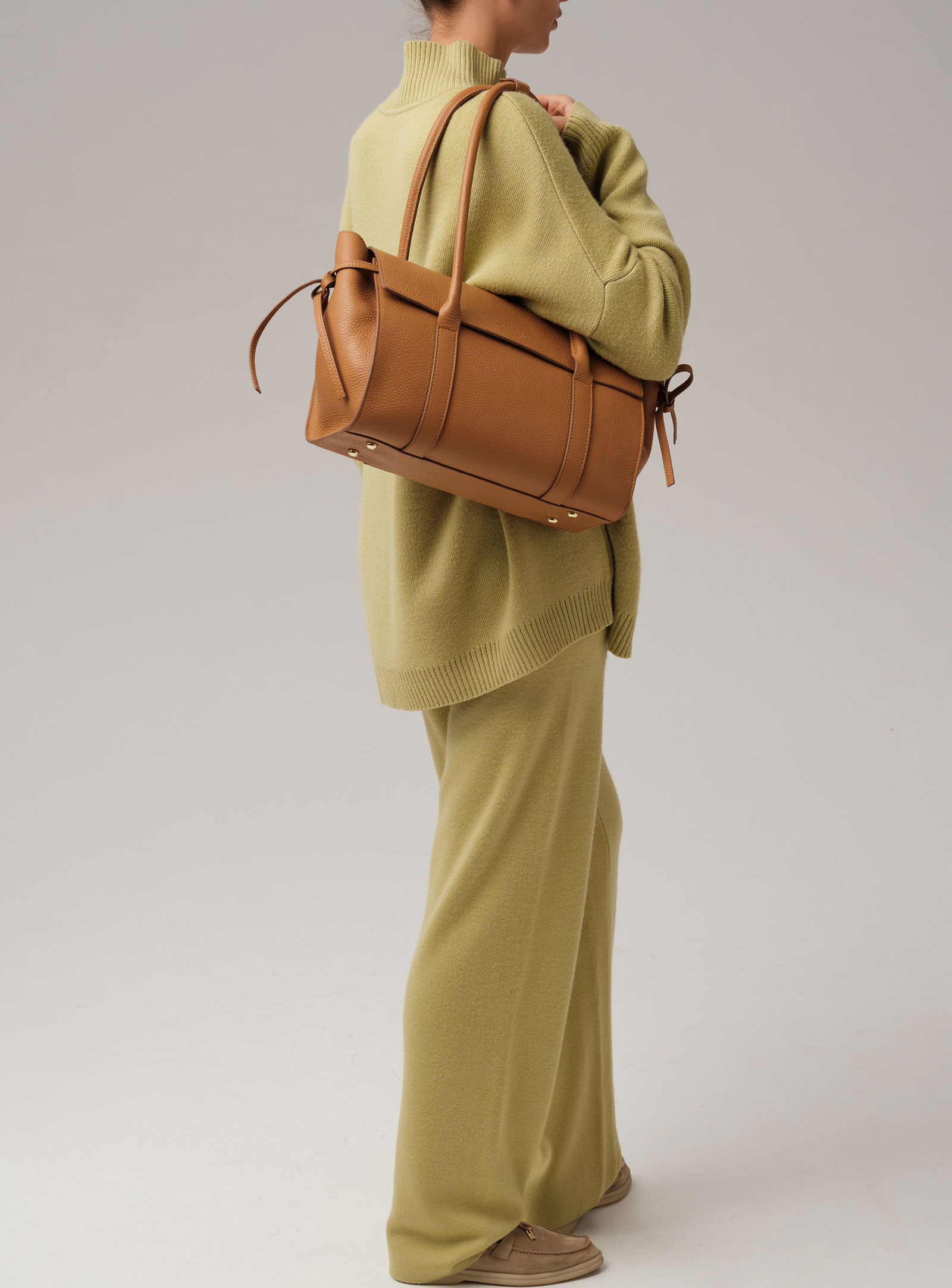 Детали: натуральная кожа, 1 внутреннее отделение на хлопковой водонепроницаемой подкладке, застежка на клапан с магнитом, обтянутым натуральной кожей, 1 внутренний закрытый карман на молнии, 2 открытых кармана, металлические ножки, боковая утяжка на кожаных ремешках, кожаный фиксатор для ручек на кнопке.