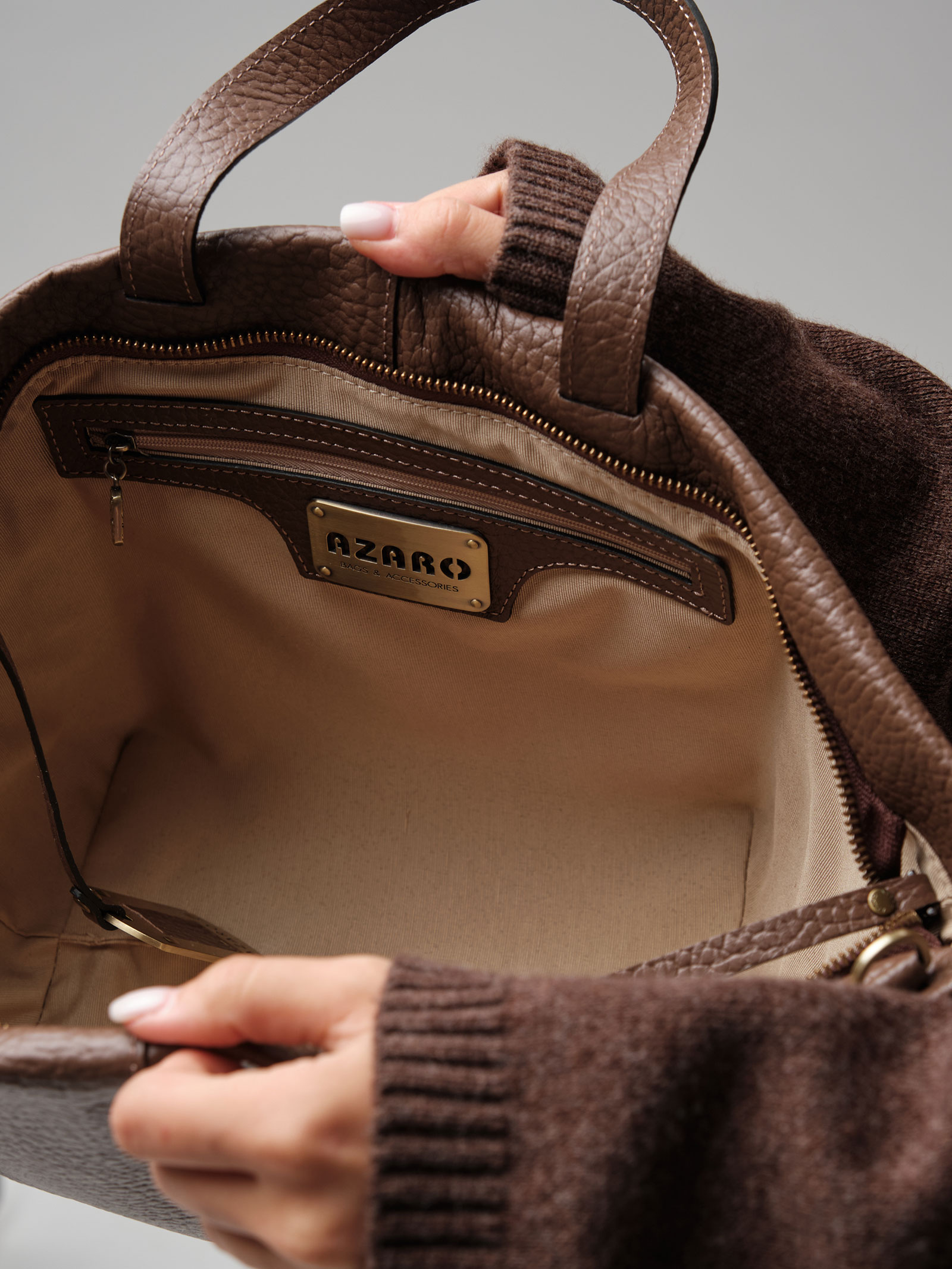 Элегантная сумка-тоут Azaro 31355 коричневый какао соло из высококачественной натуральной зернистой кожи теплого коричнево-шоколадного оттенка.