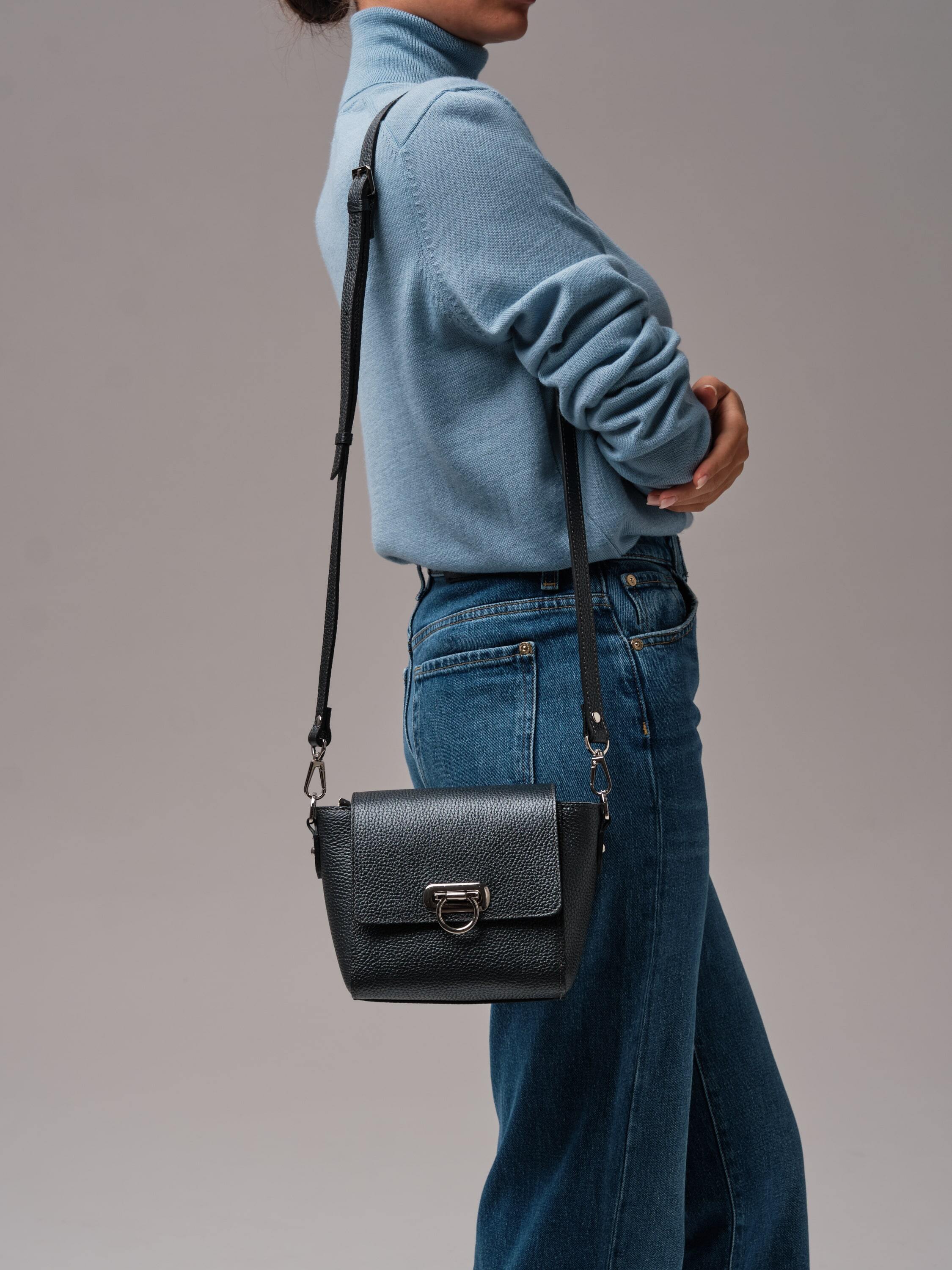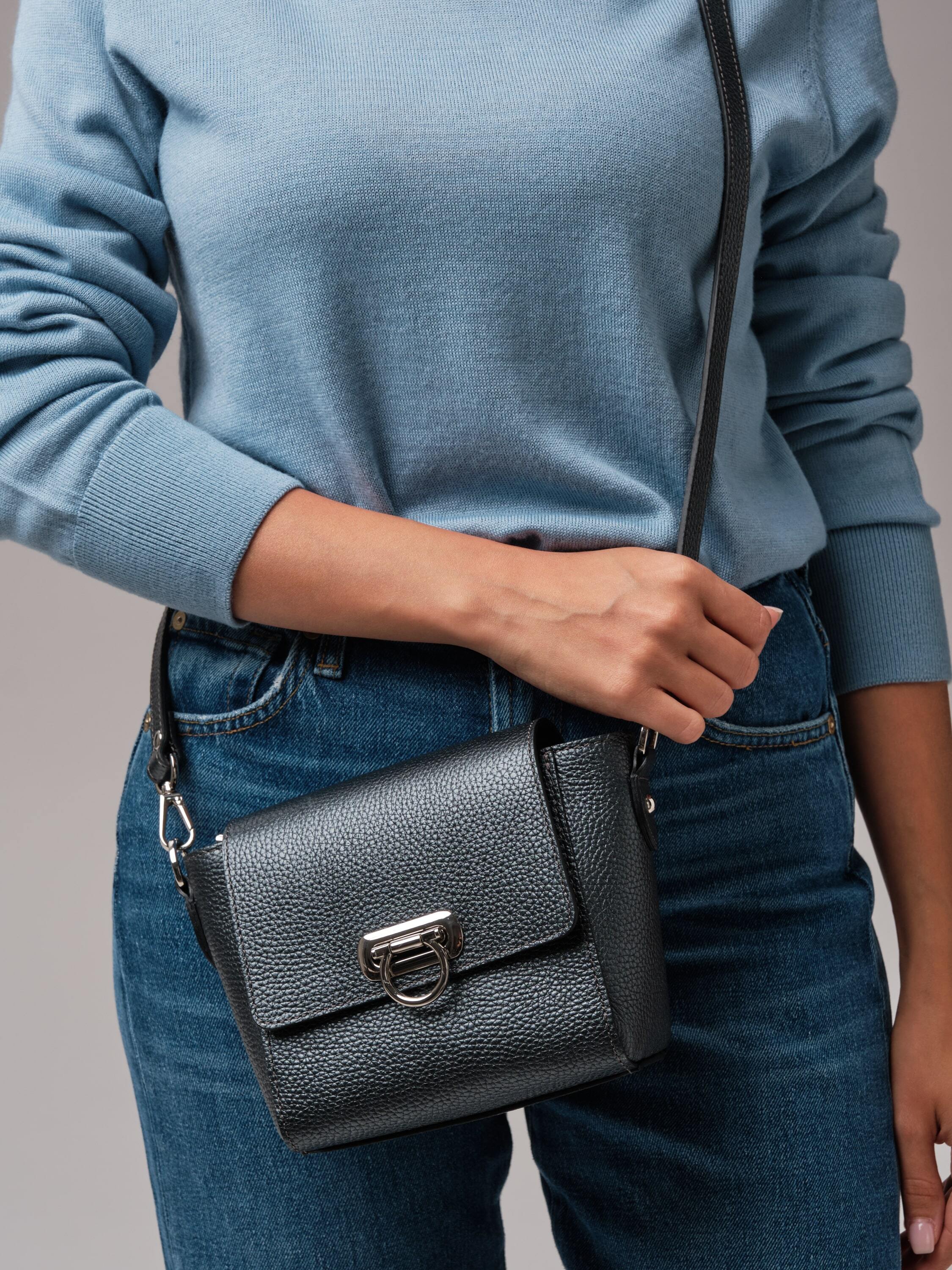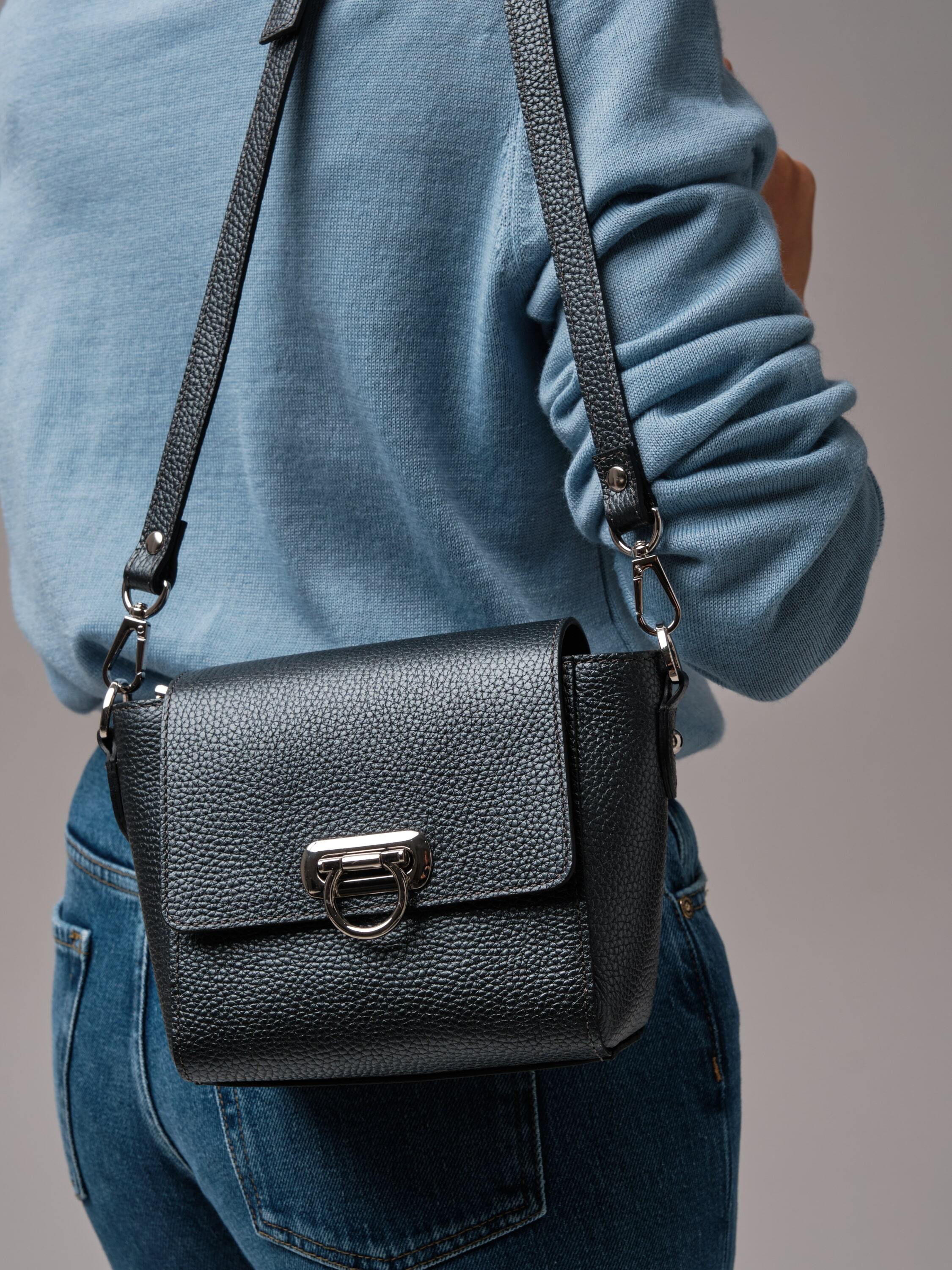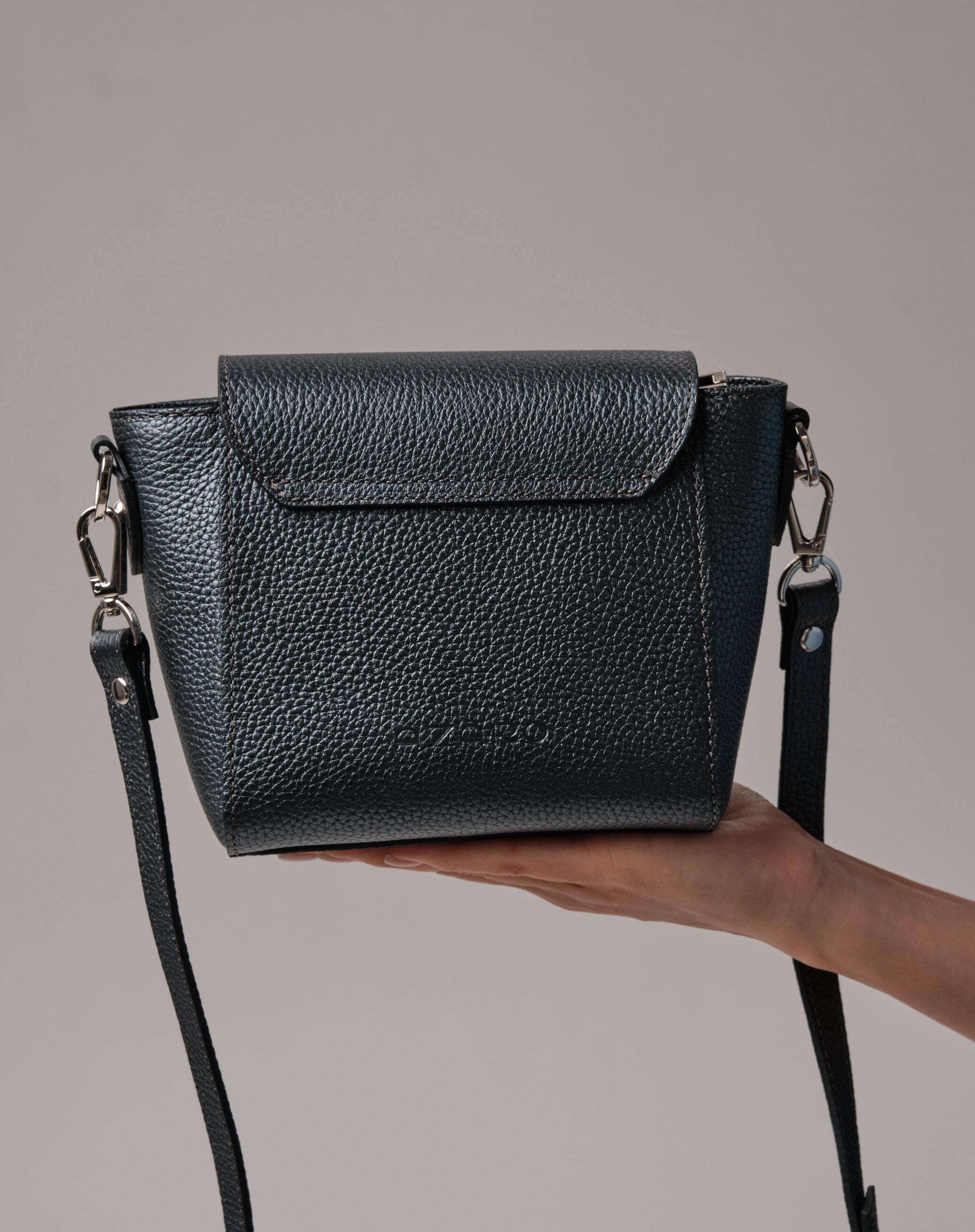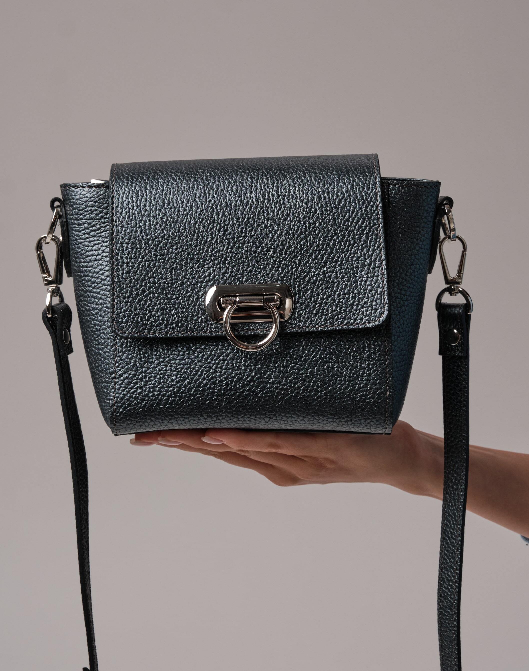 Женская кожаная сумка кросс-боди Azaro черный металлик - стильный акцент для тех, кто ценит лаконичность и качество. Выполненная из натуральной кожи, она обладает выразительной текстурой и безупречным исполнением.
