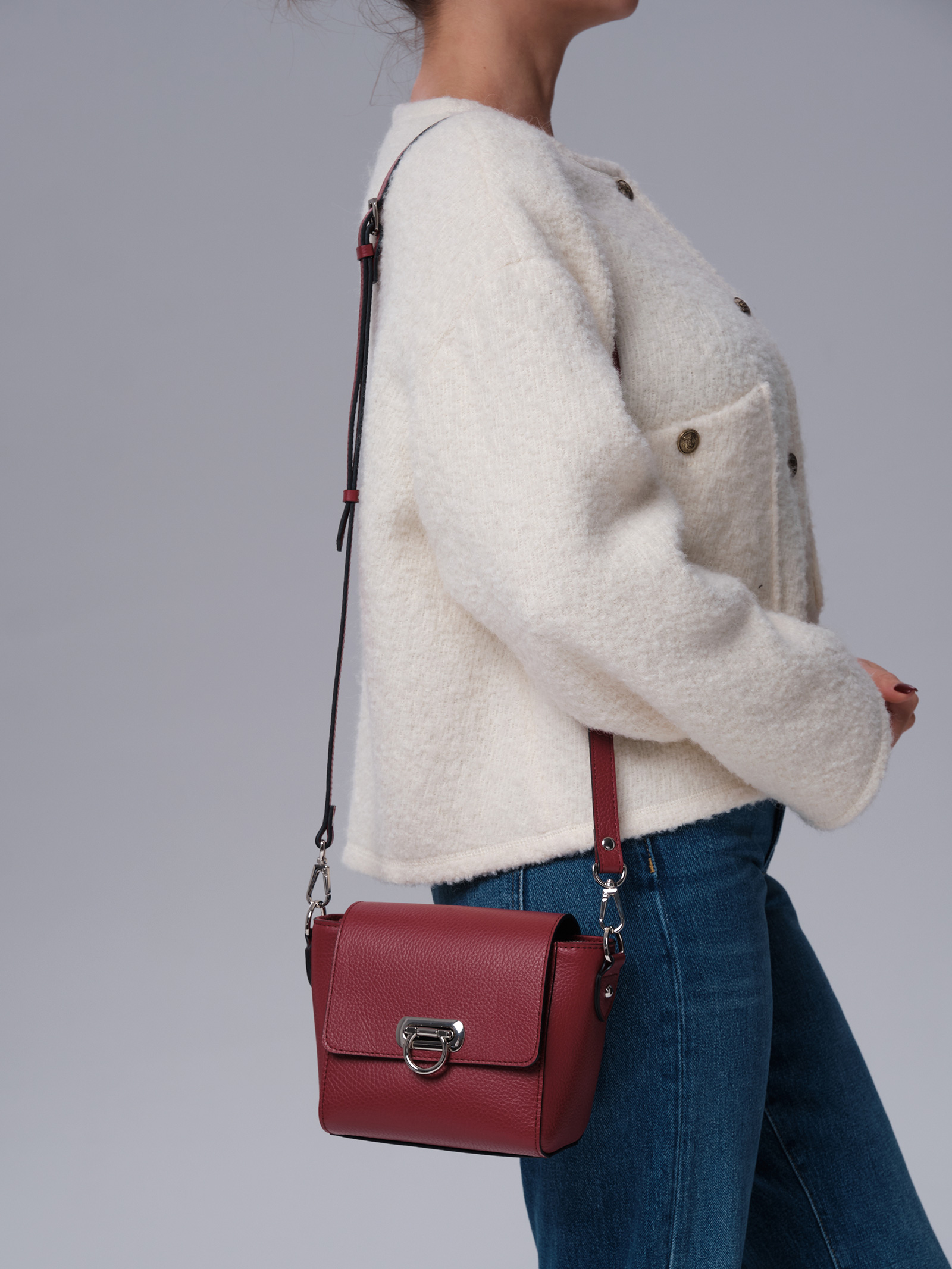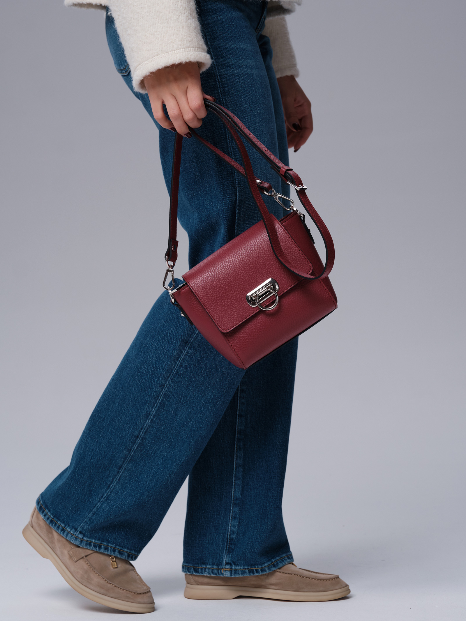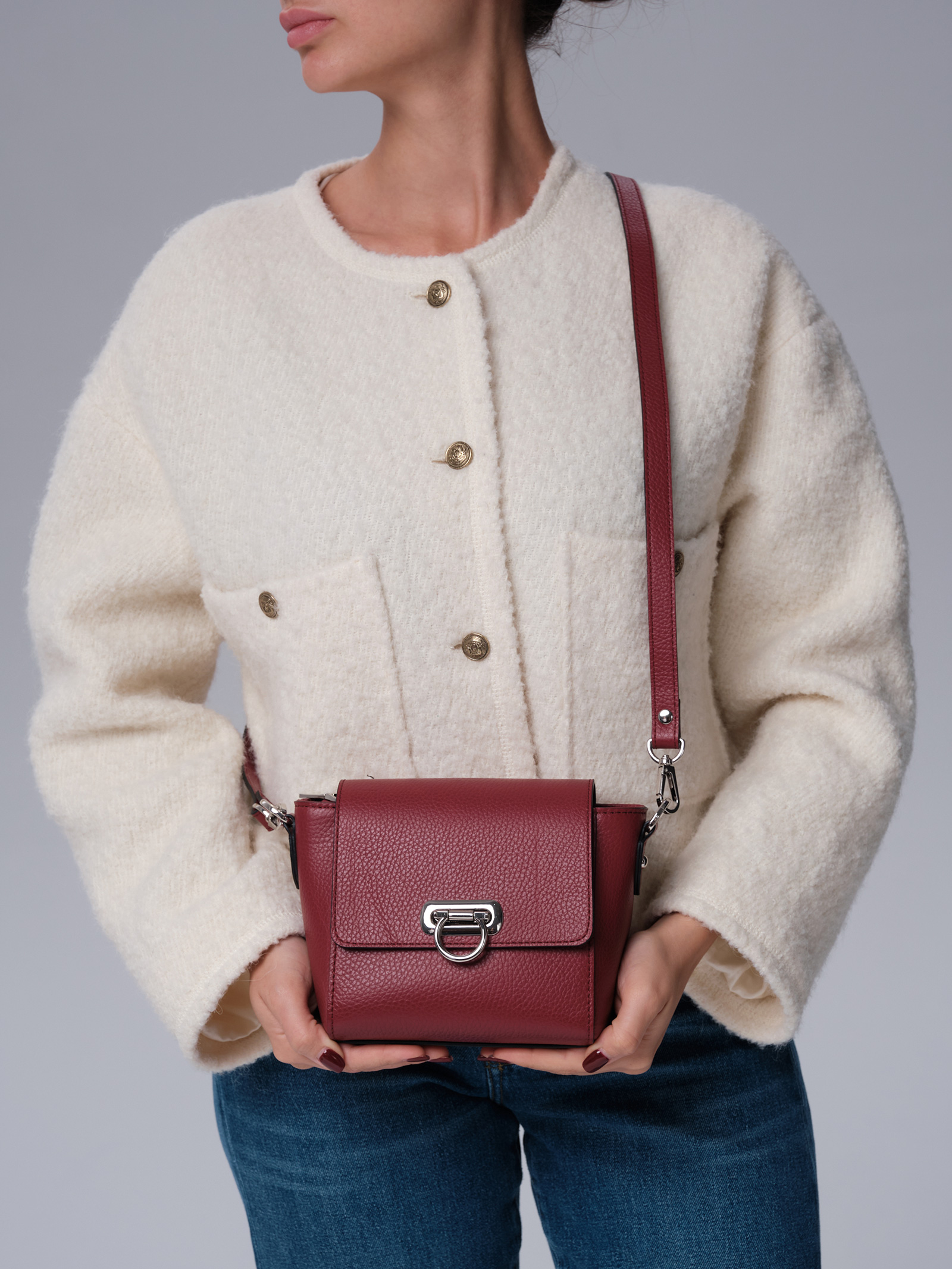 Насыщенный вишневый оттенок придаёт образу утончённость и элегантность. Этот цвет хорошо сочетается с разными образами, делая сумку универсальной деталью гардероба.