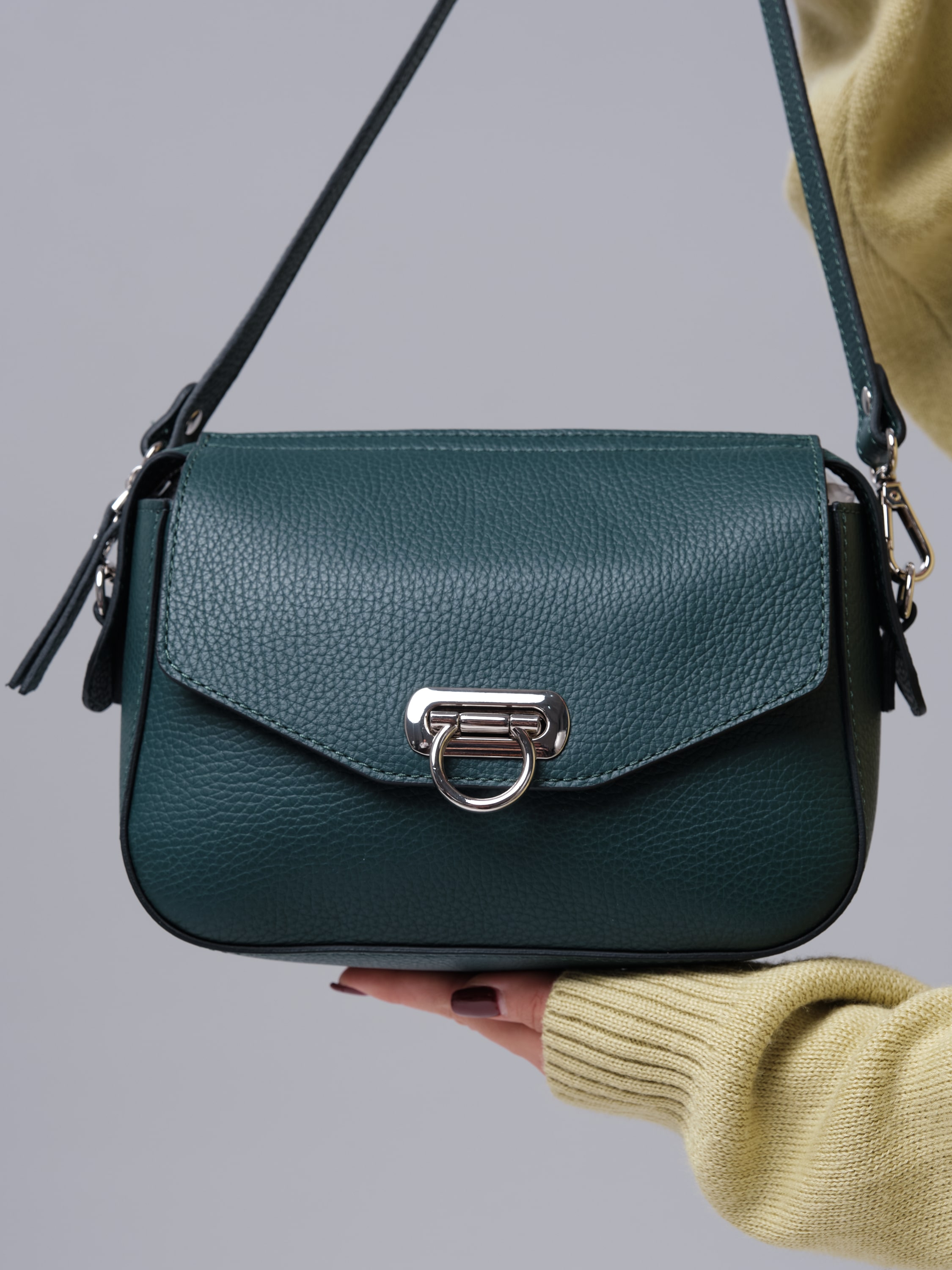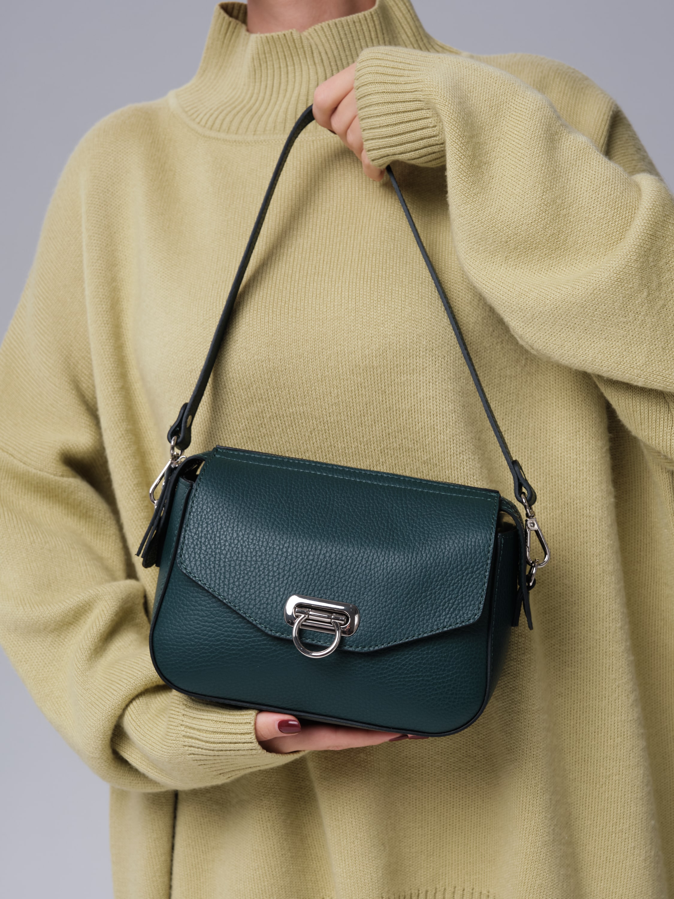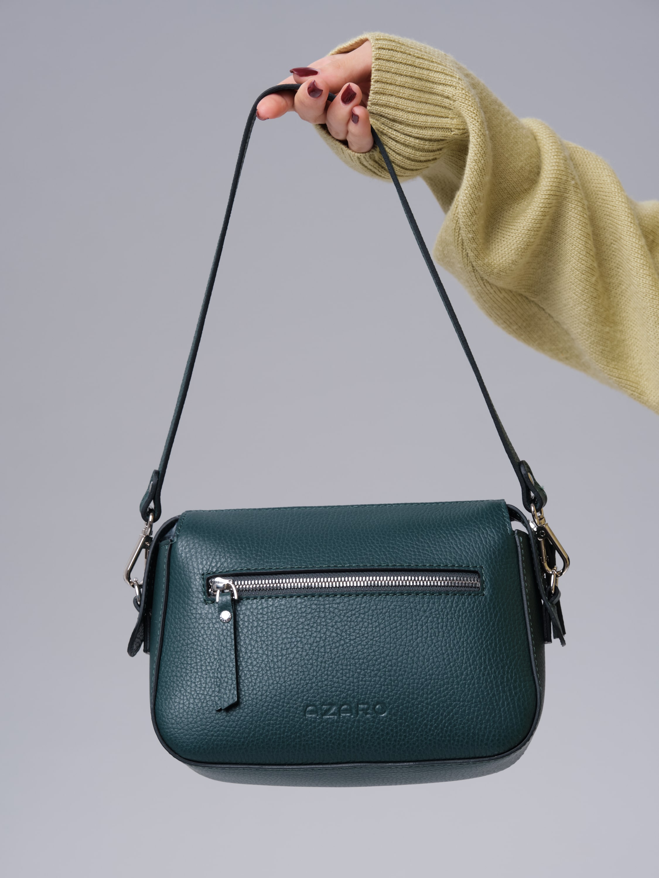 Женская сумка Azaro 3684 форест продается в комплекте с 2 ремнями - удобным коротким для ношения в руке или на плече, а также длинным, который позволяет носить ее через плечо как кросс-боди. Это делает модель практичной и адаптируемой под разные ситуации.