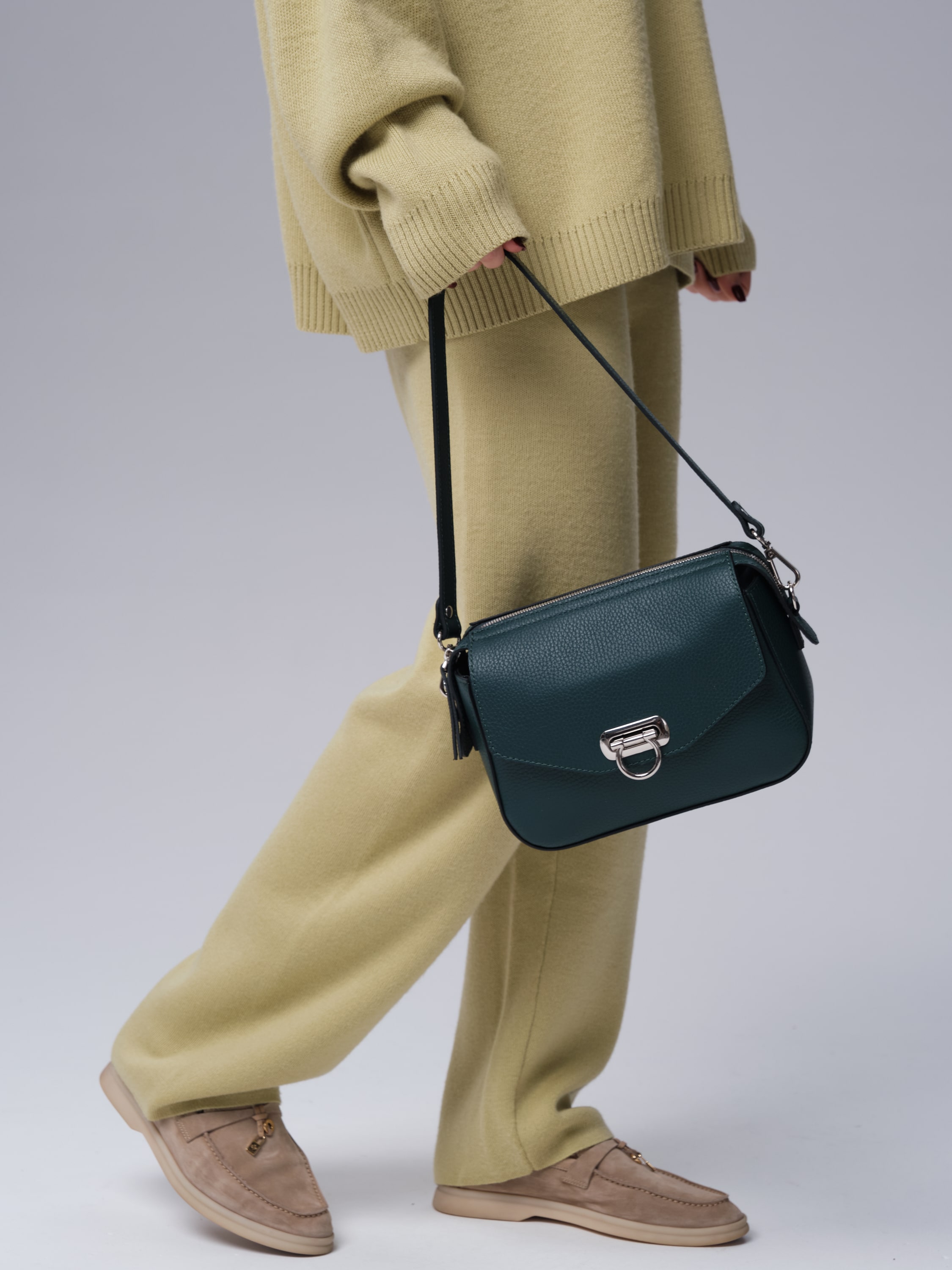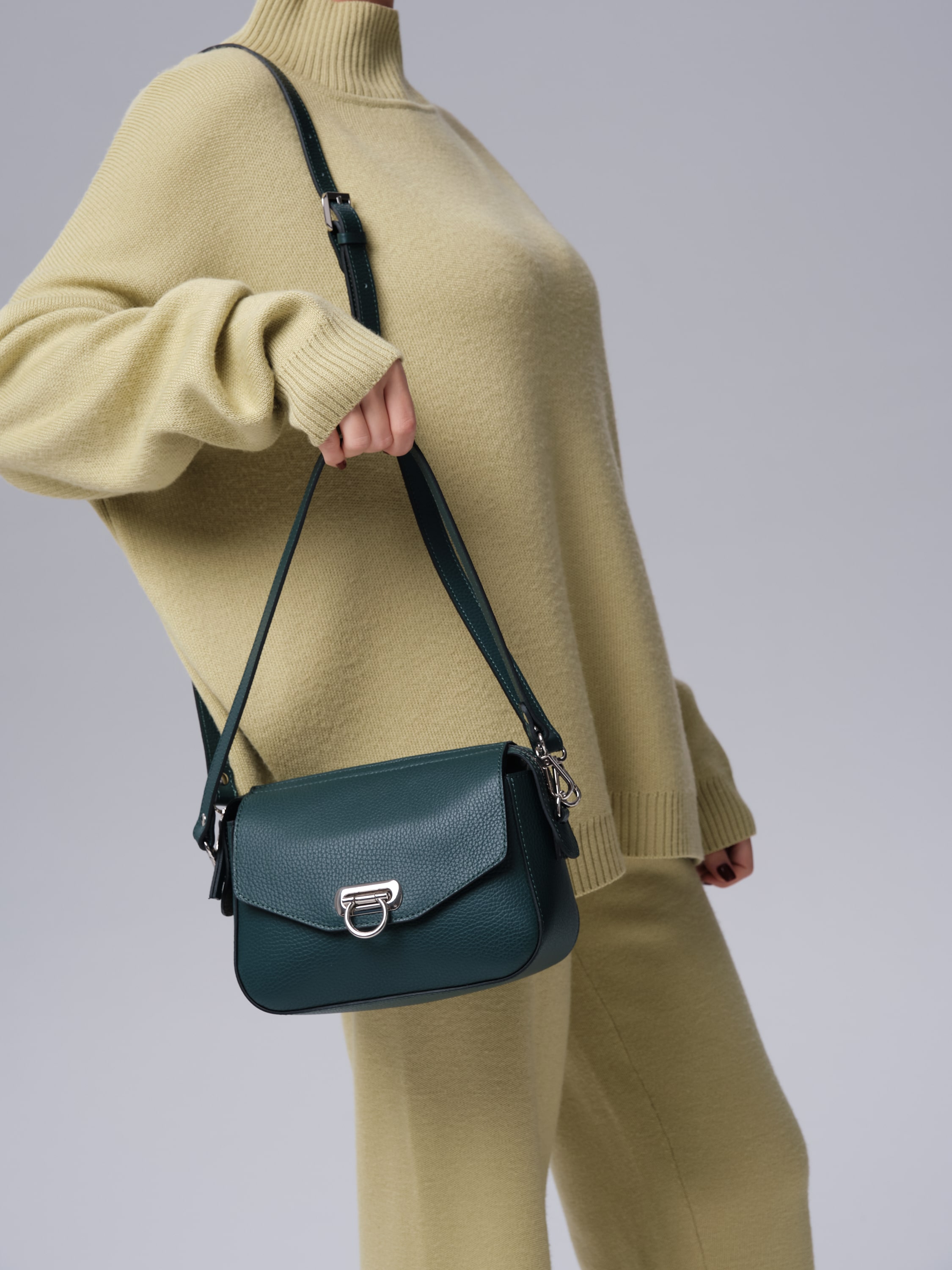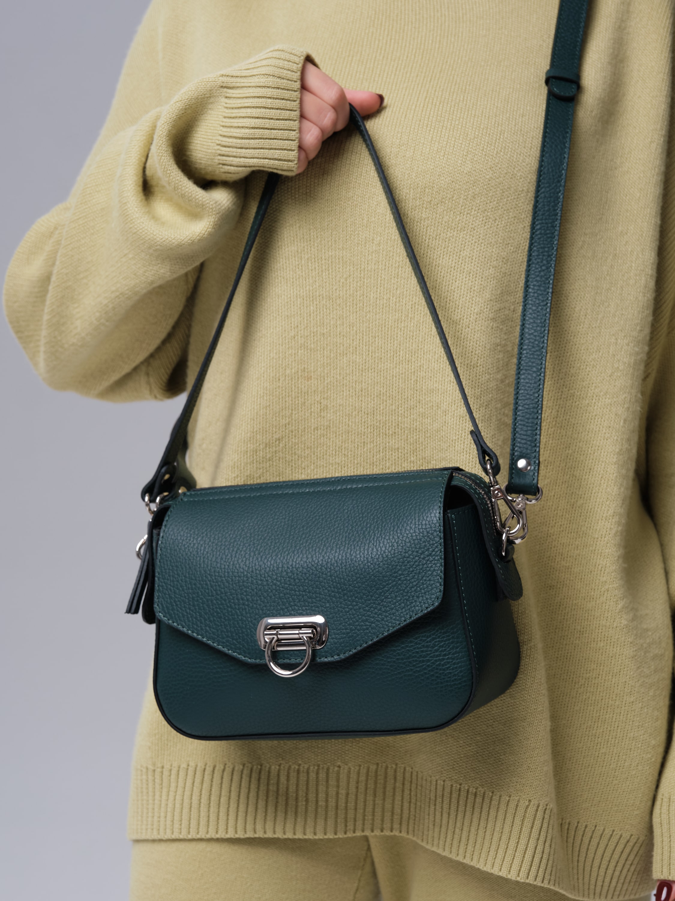 Женская сумка Azaro 3684 форест продается в комплекте с 2 ремнями - удобным коротким для ношения в руке или на плече, а также длинным, который позволяет носить ее через плечо как кросс-боди. Это делает модель практичной и адаптируемой под разные ситуации.