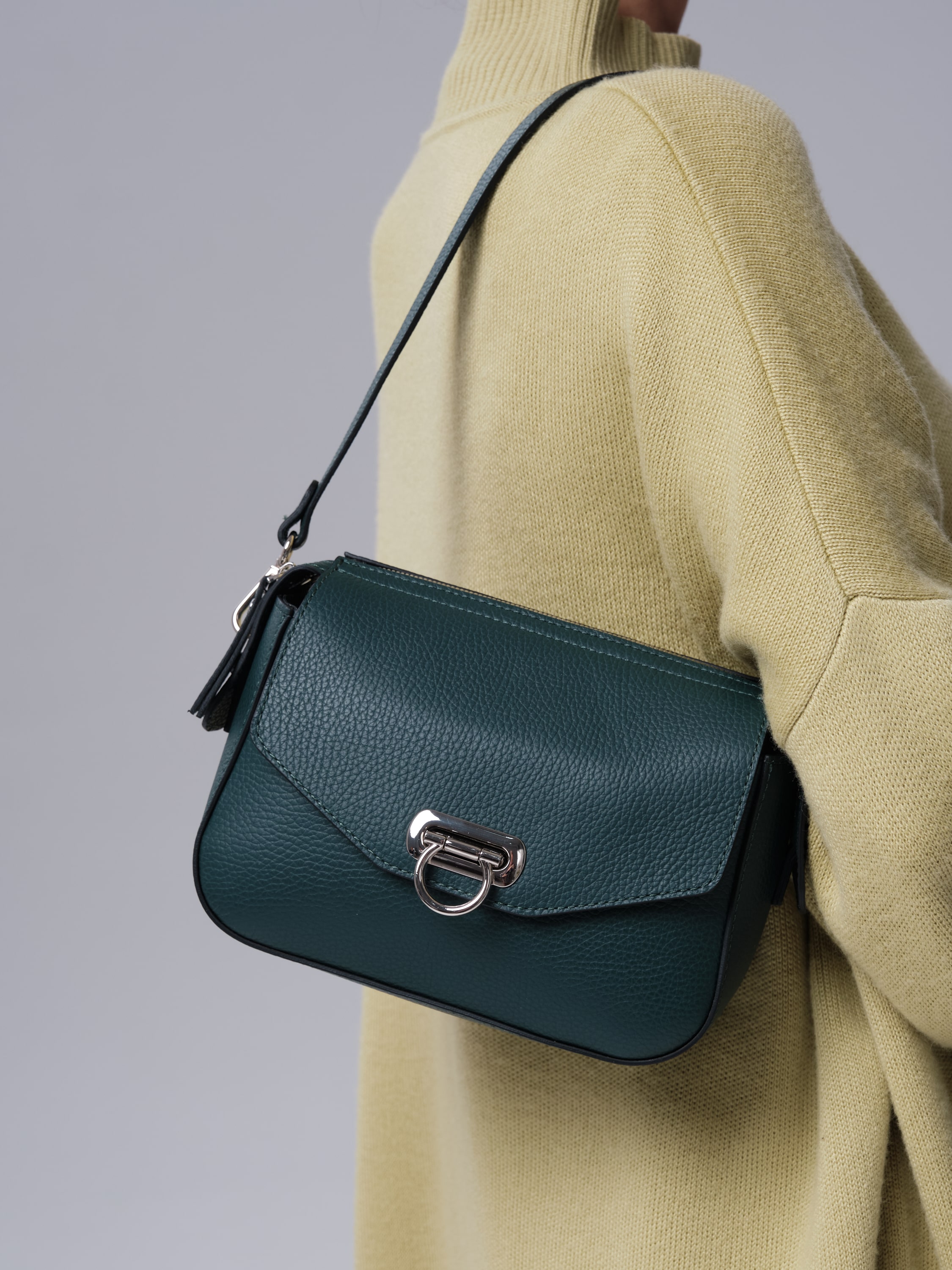 Кожаная женская сумка Azaro 3684 форест - стильная и современная модель, выполненная из плотной, фактурной натуральной кожи с выразительным зернением. Материал выглядит дорого, отлично держит форму и устойчив к носке.