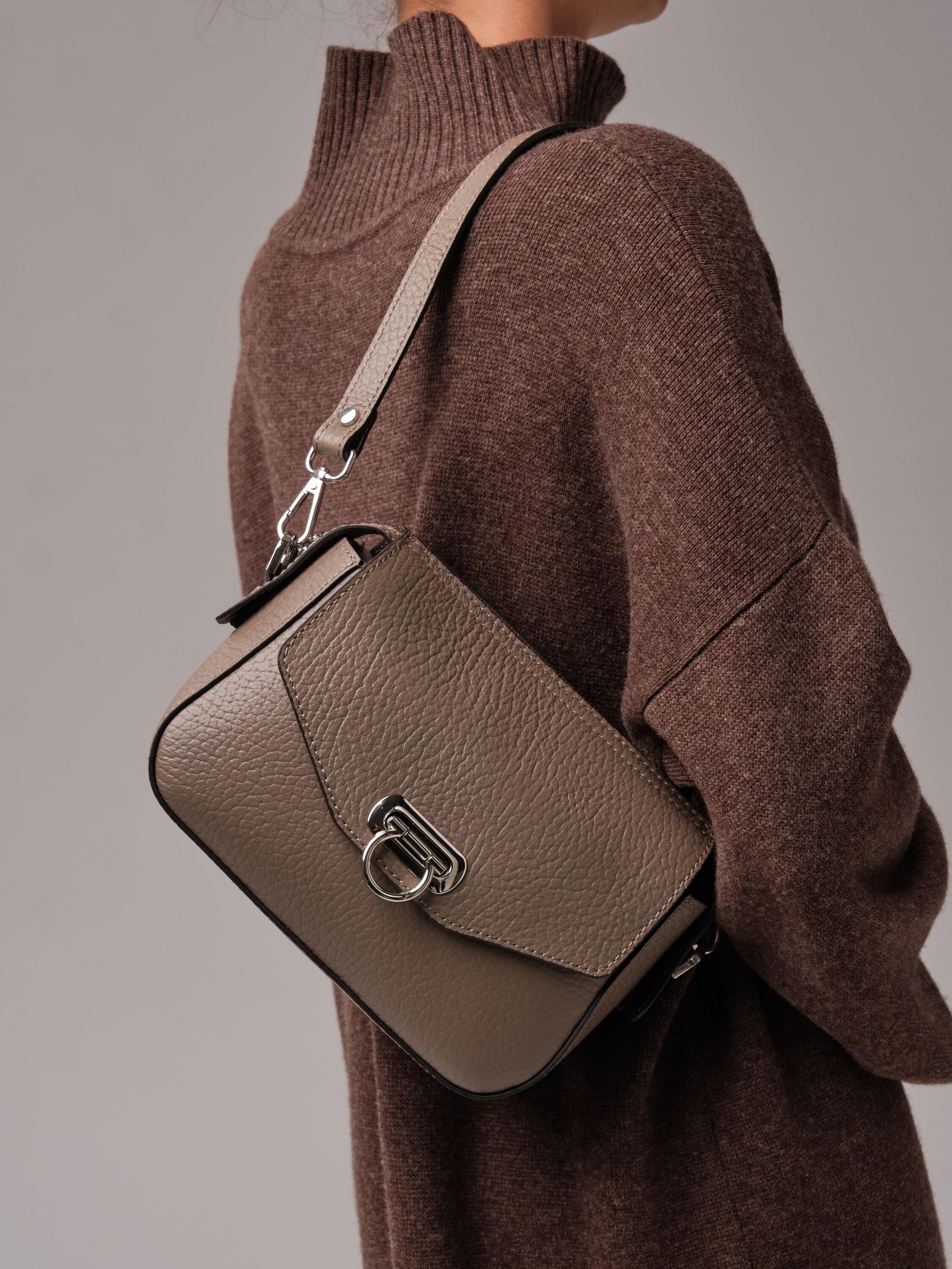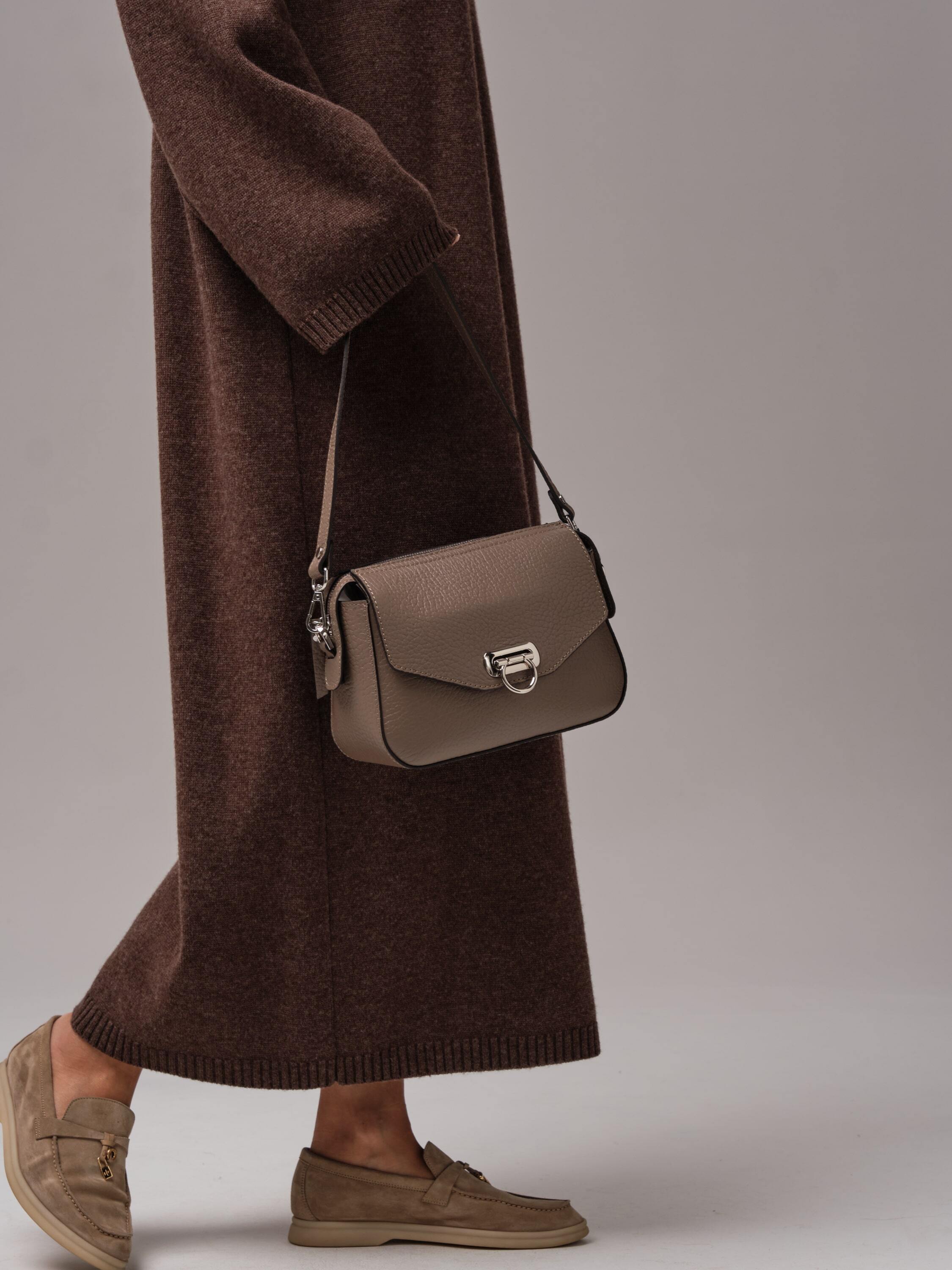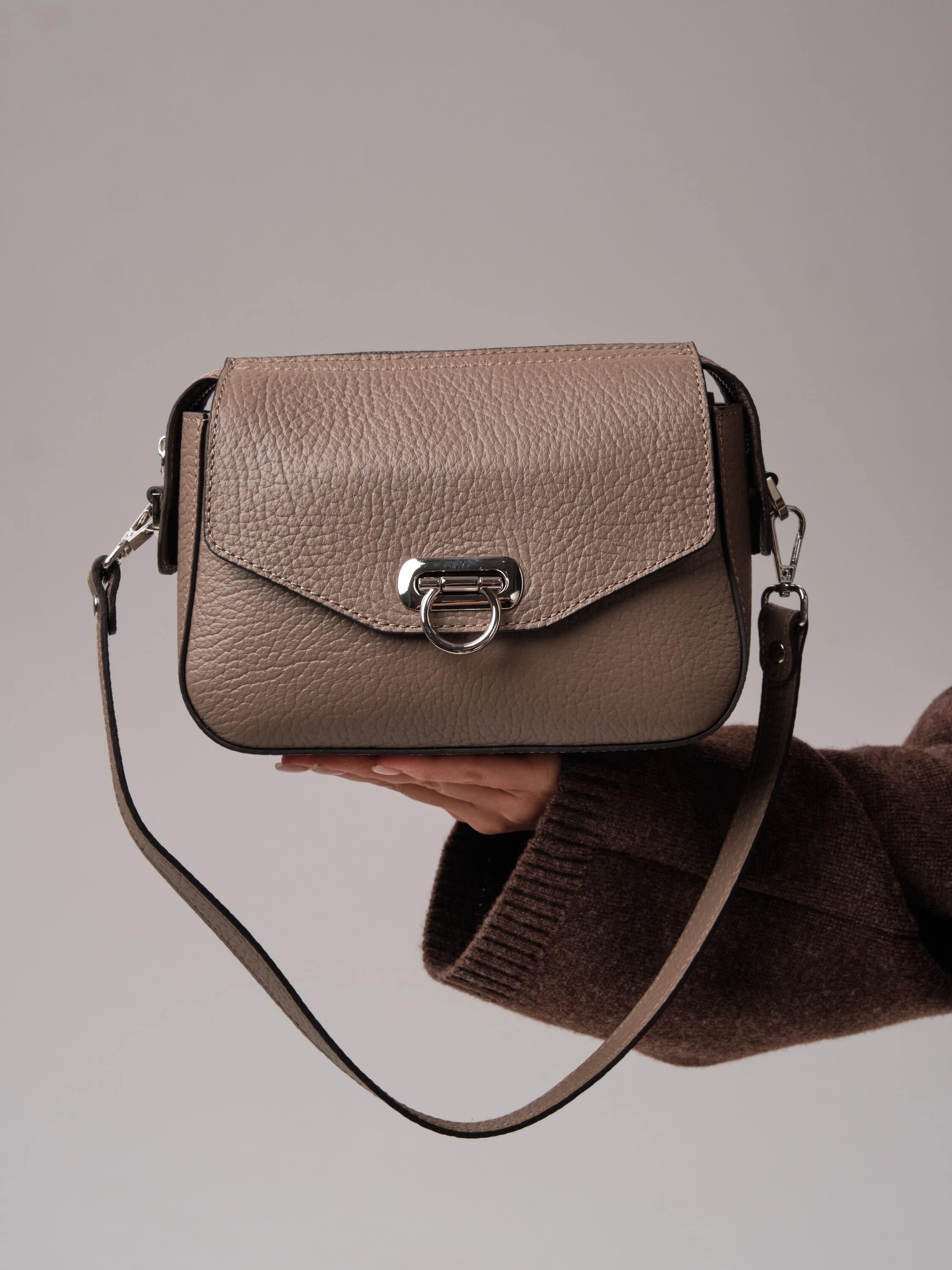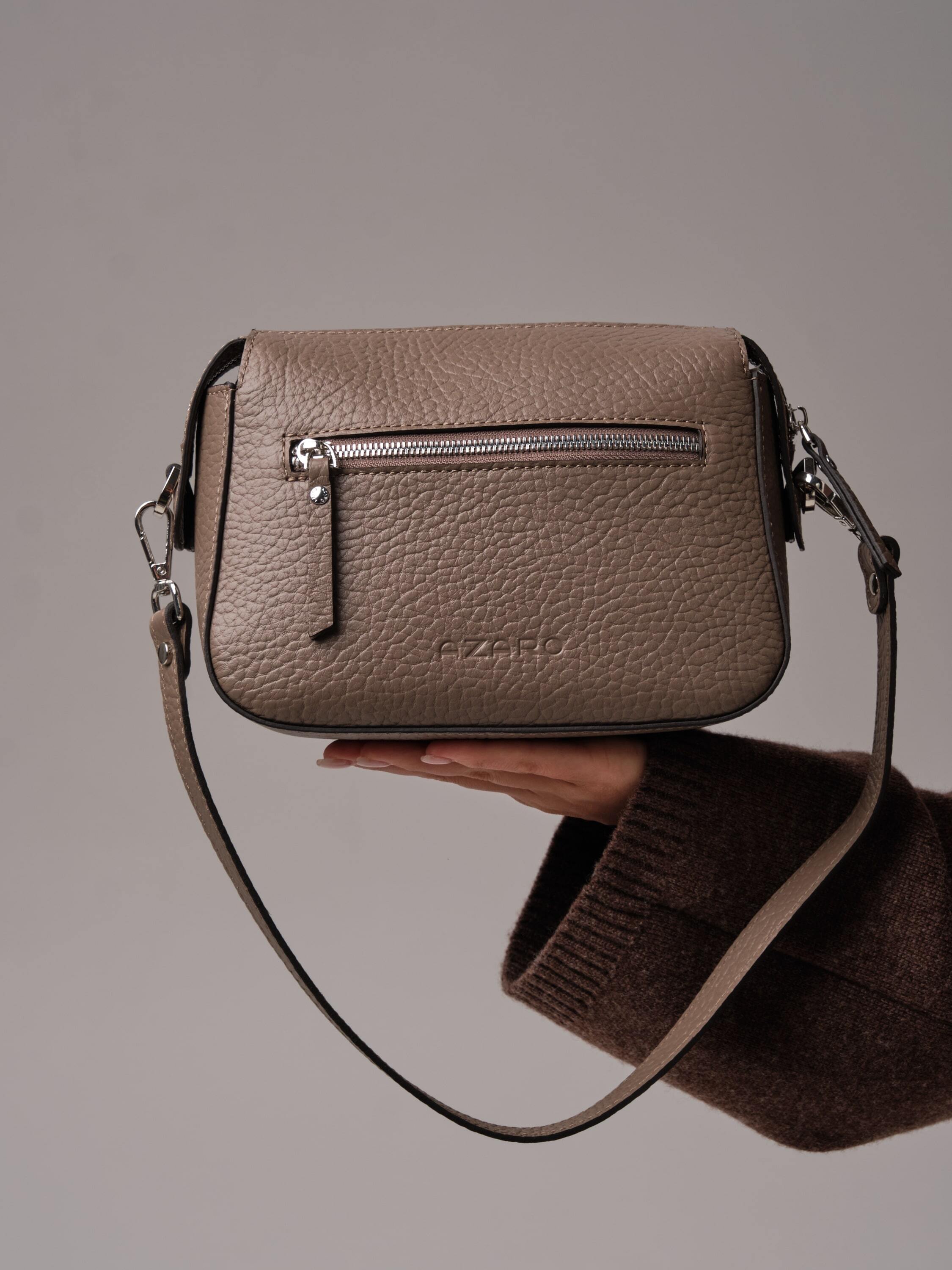 Кожаная женская сумка Azaro 3684 тауп соло - стильная и современная модель, выполненная из плотной, фактурной натуральной кожи с выразительным зернением. Материал выглядит дорого, отлично держит форму и устойчив к носке.