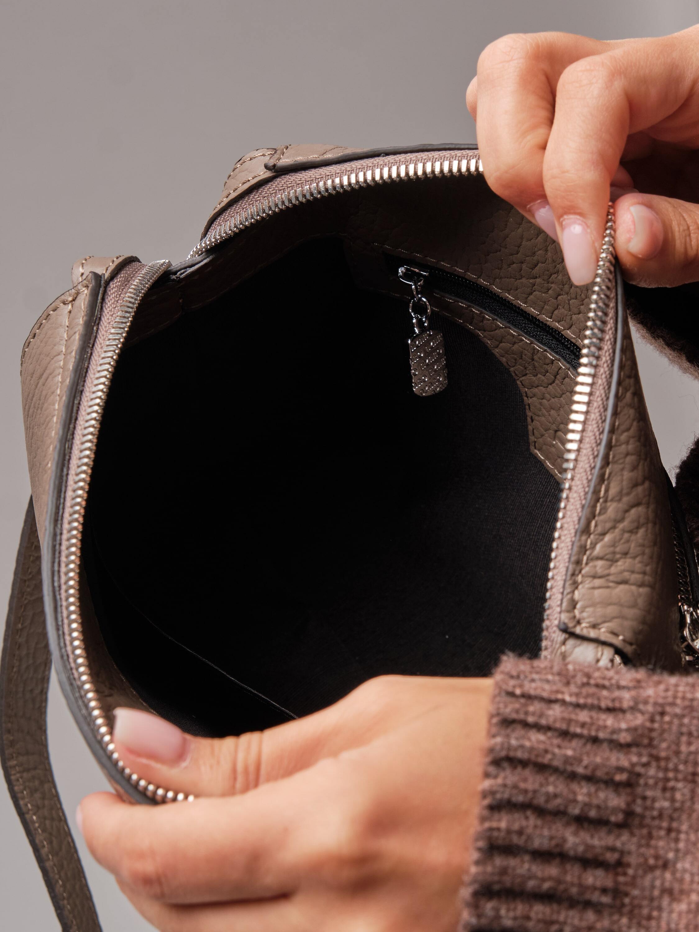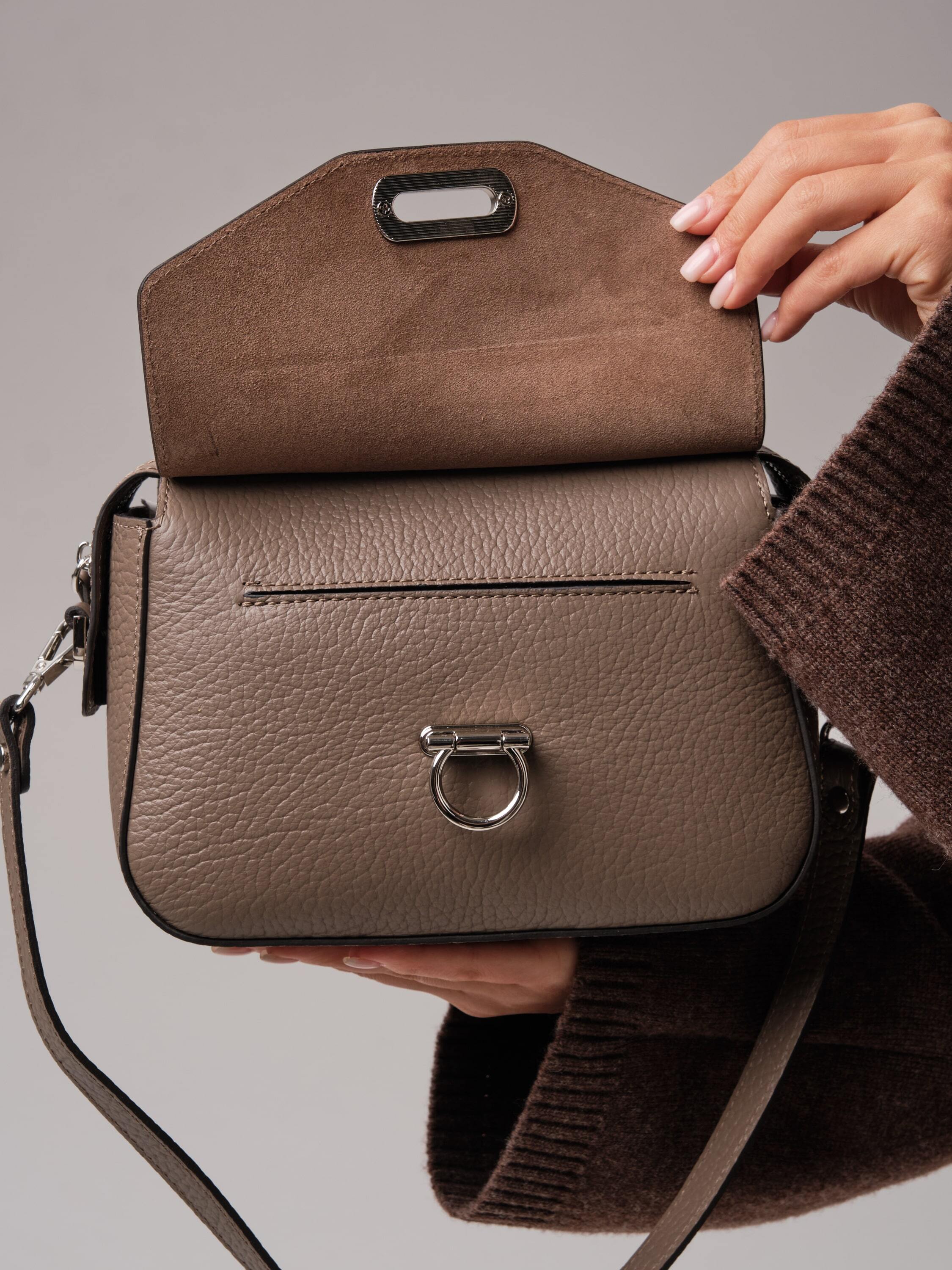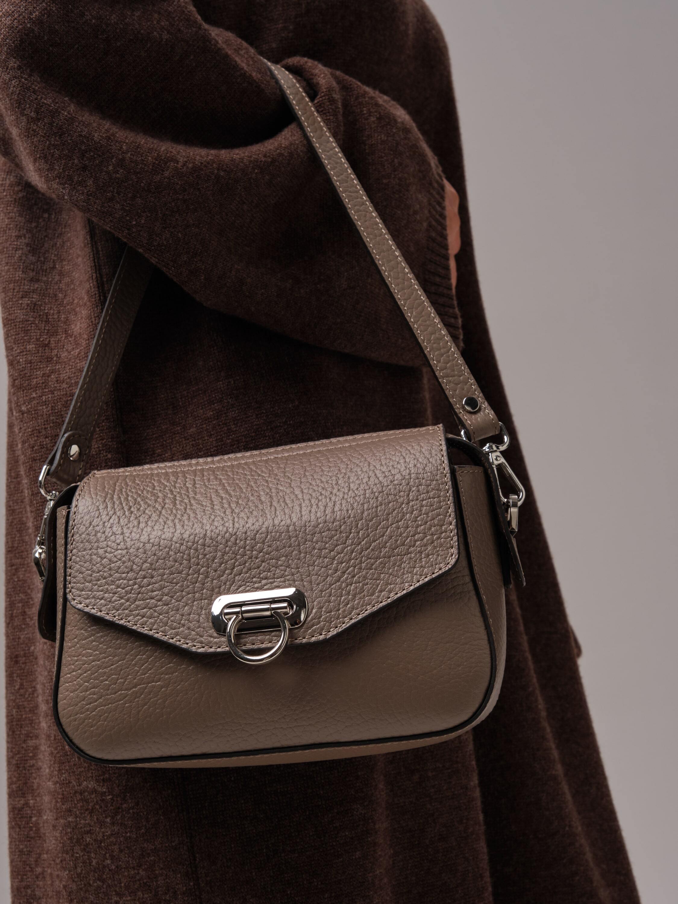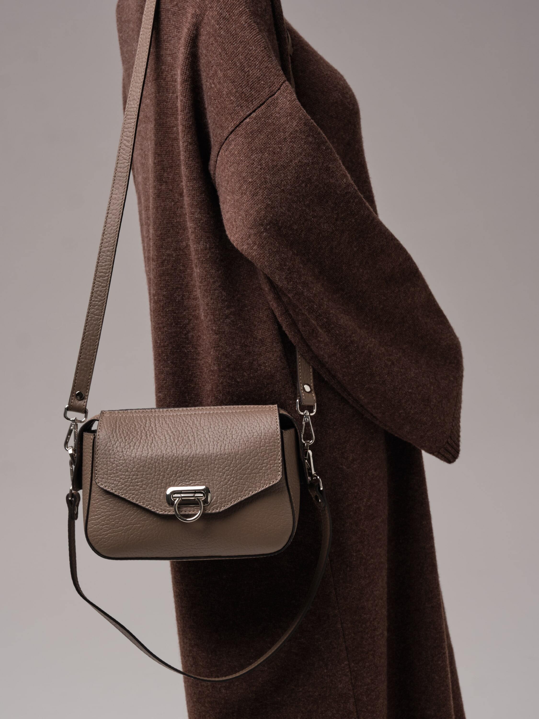 Кожаная женская сумка Azaro 3684 тауп соло - стильная и современная модель, выполненная из плотной, фактурной натуральной кожи с выразительным зернением. Материал выглядит дорого, отлично держит форму и устойчив к носке.